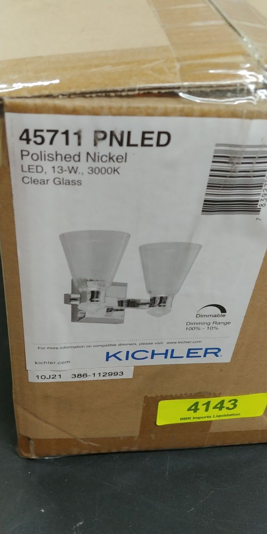 •New In Box Kichler Polished Nickel LED Clear Glass Light Fixture