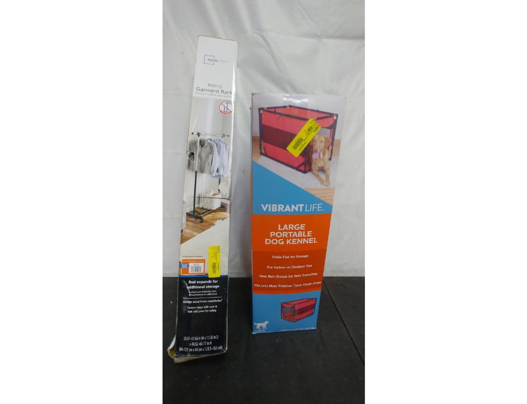 •Portable Large dog kennel and Rolling Garmet Rack
