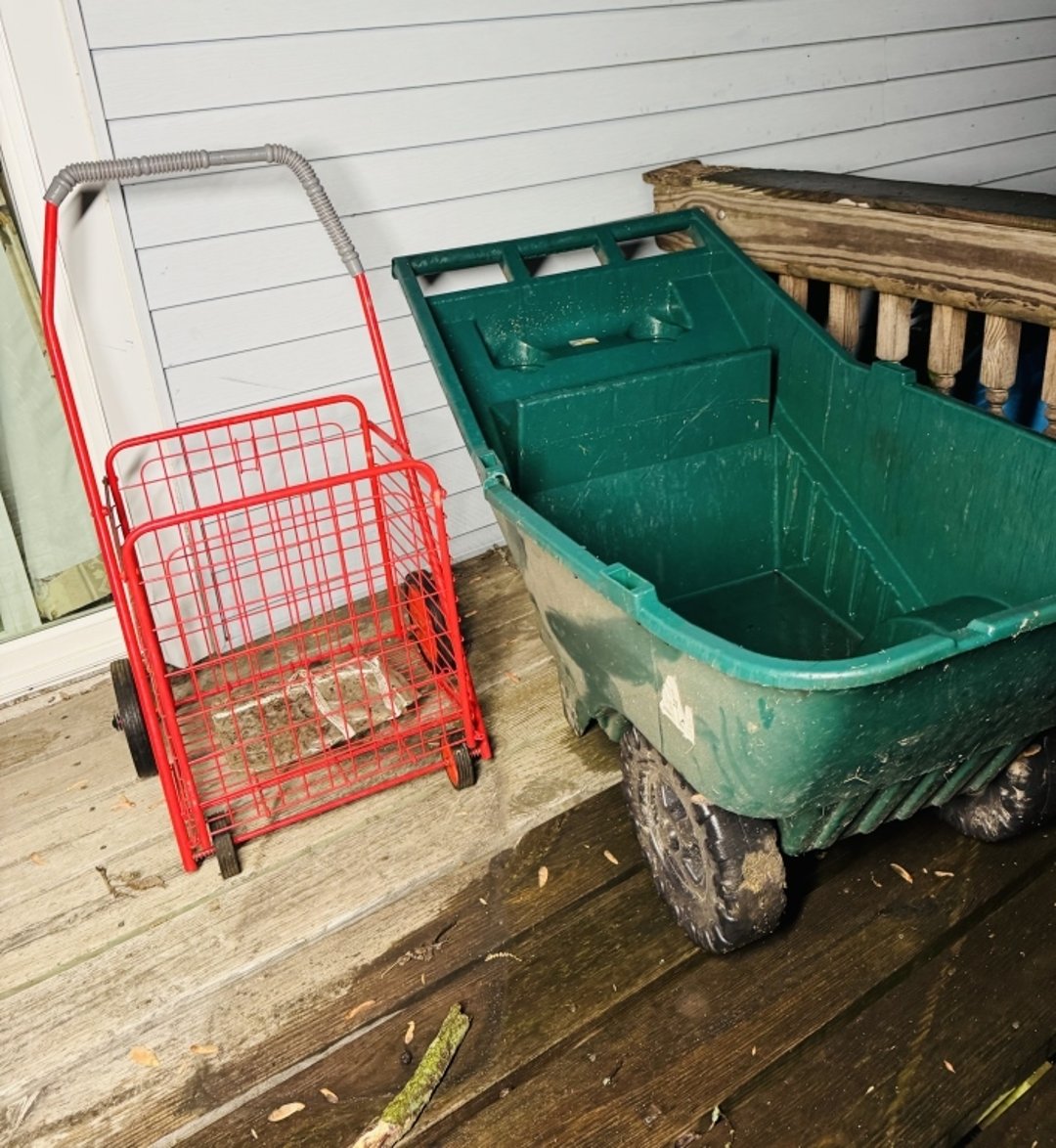 •Folding cart & Rubbermaid Roughneck Lawn Cart