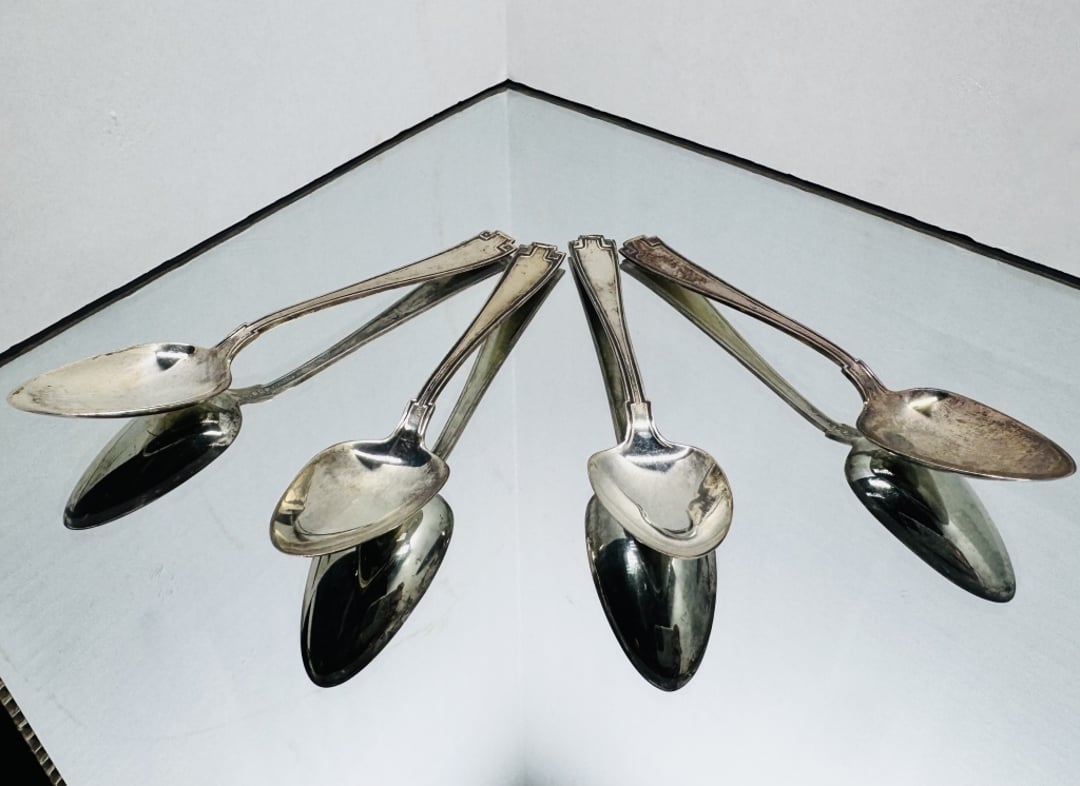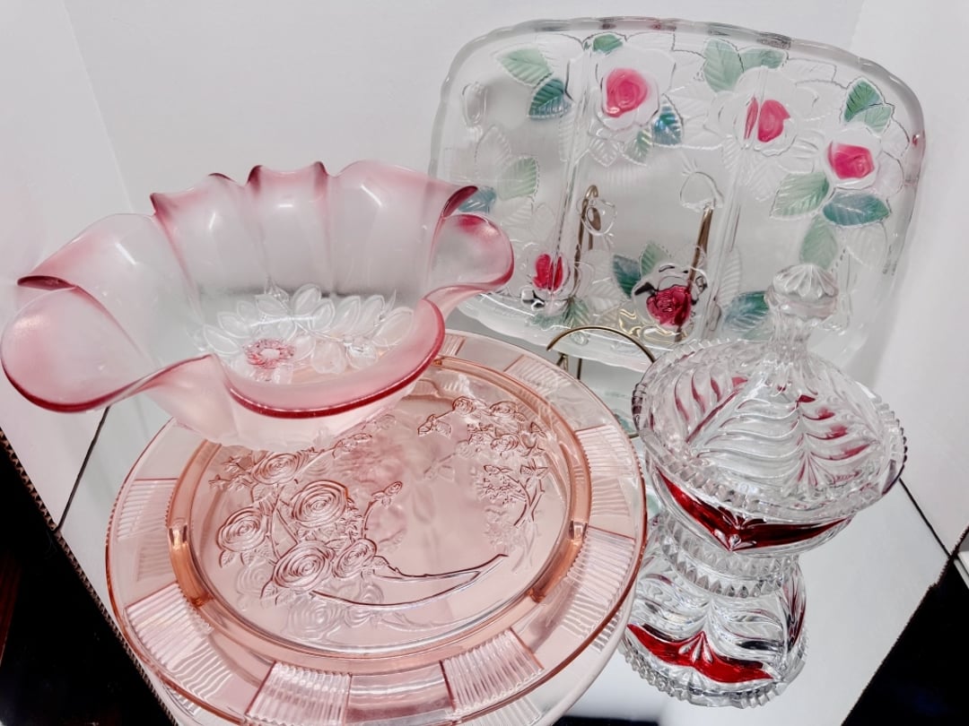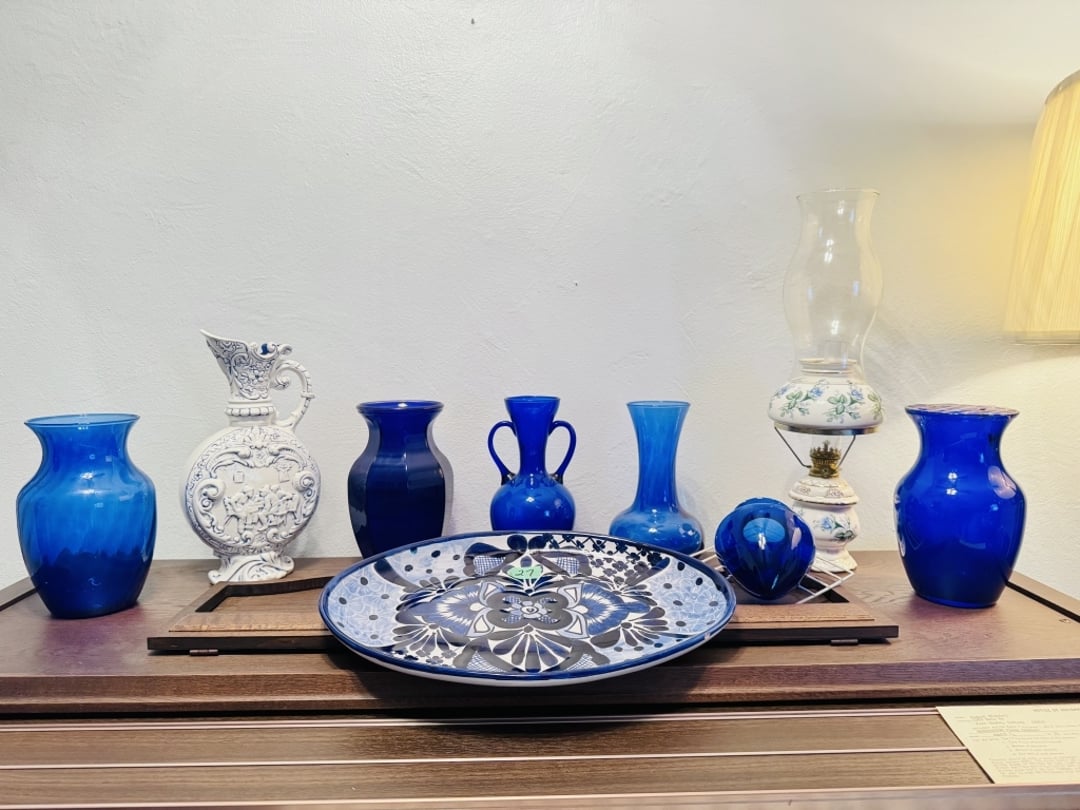 •(4) Fenton Powder Blue glass plates -A Portrait