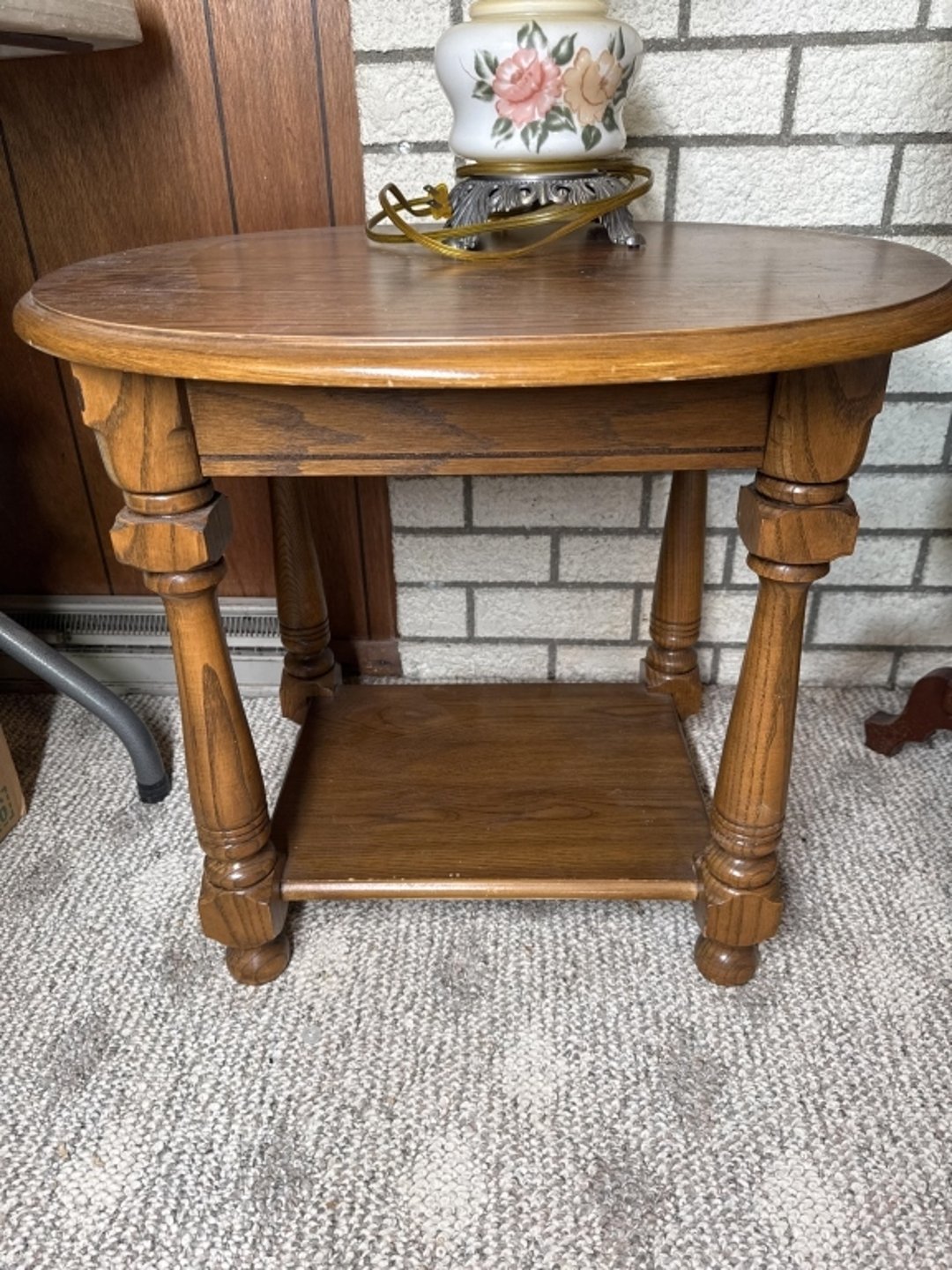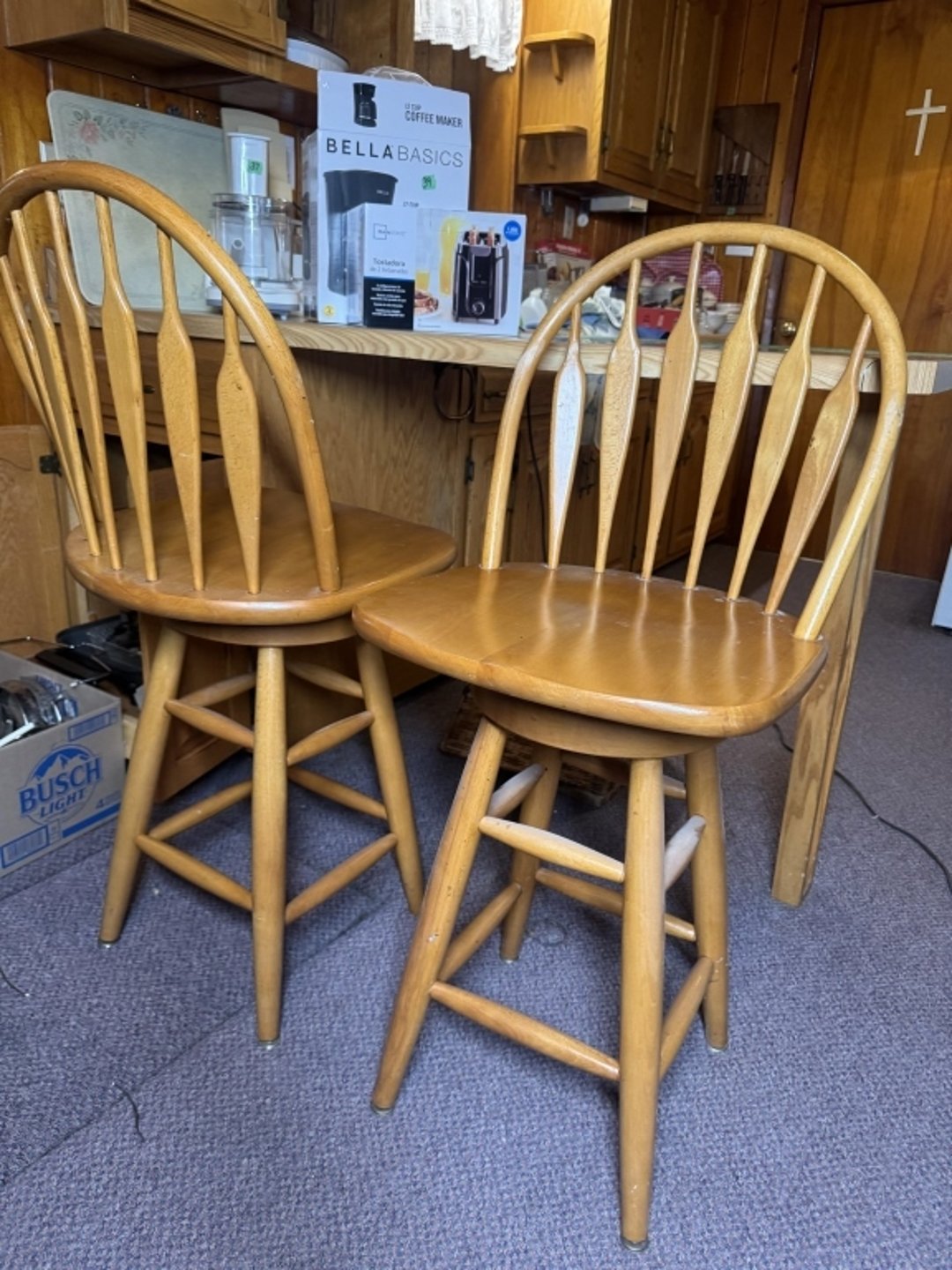 •(2) Swivel Counter Height Oak Chairs: seat 25in