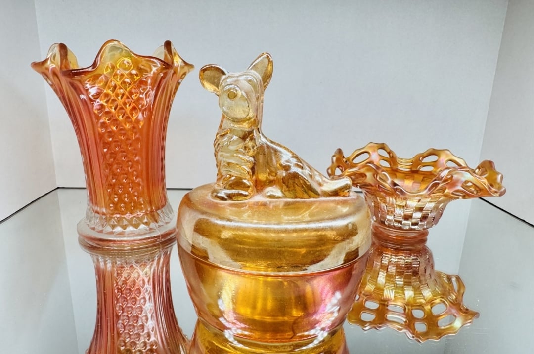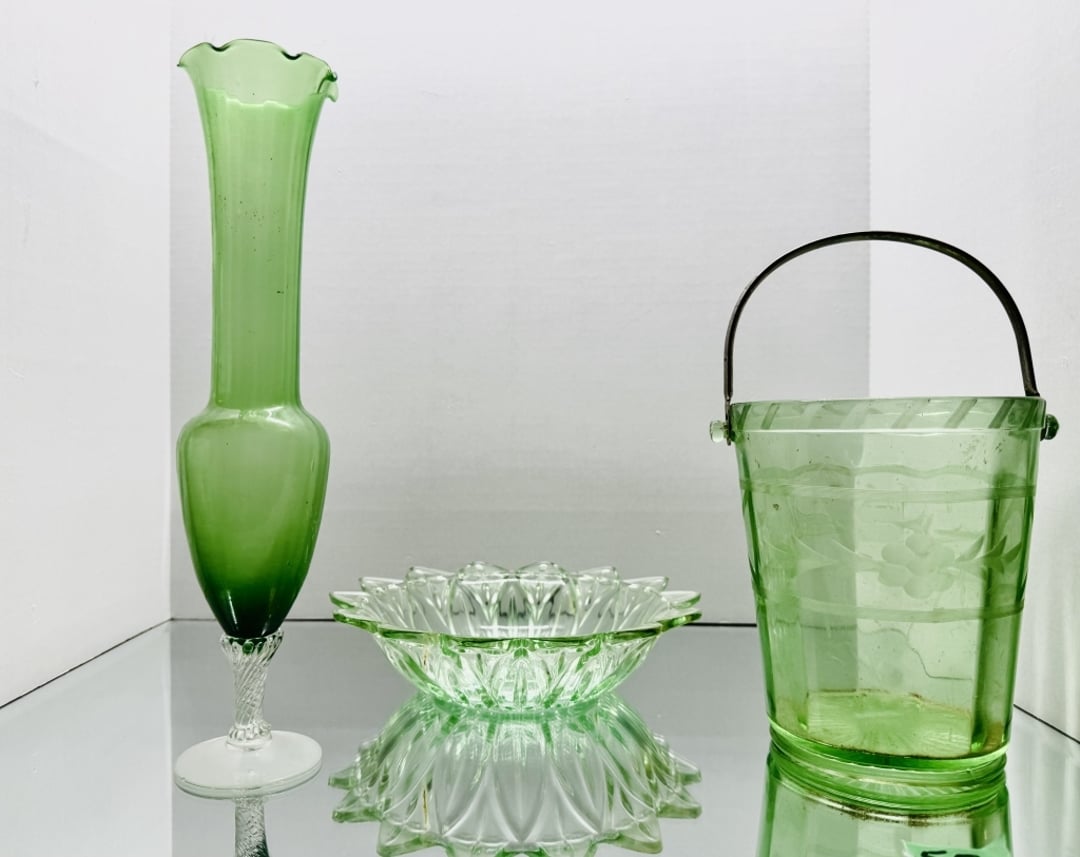•Vntg Empoli Art Nouveau - gold embossed Glass