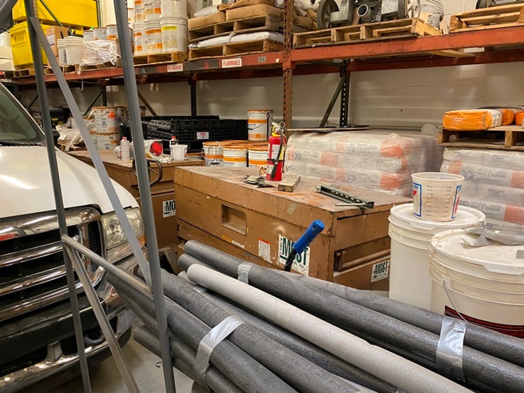 •partial Buckets of Masterseal 350 epoxy bases overlay