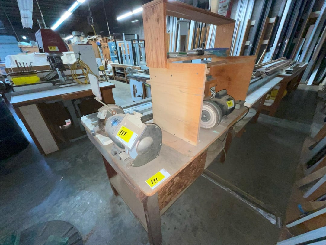 •2 bench grinders and workstation