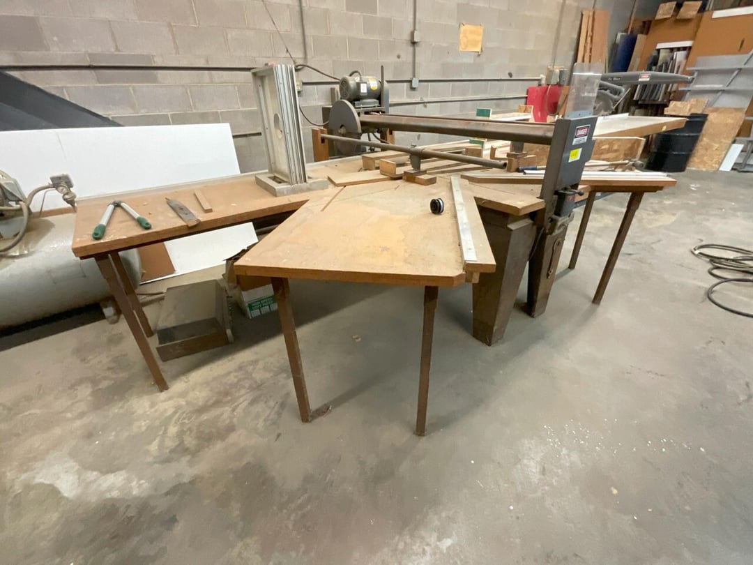 •B&D radial arm saw & shop cabinet
