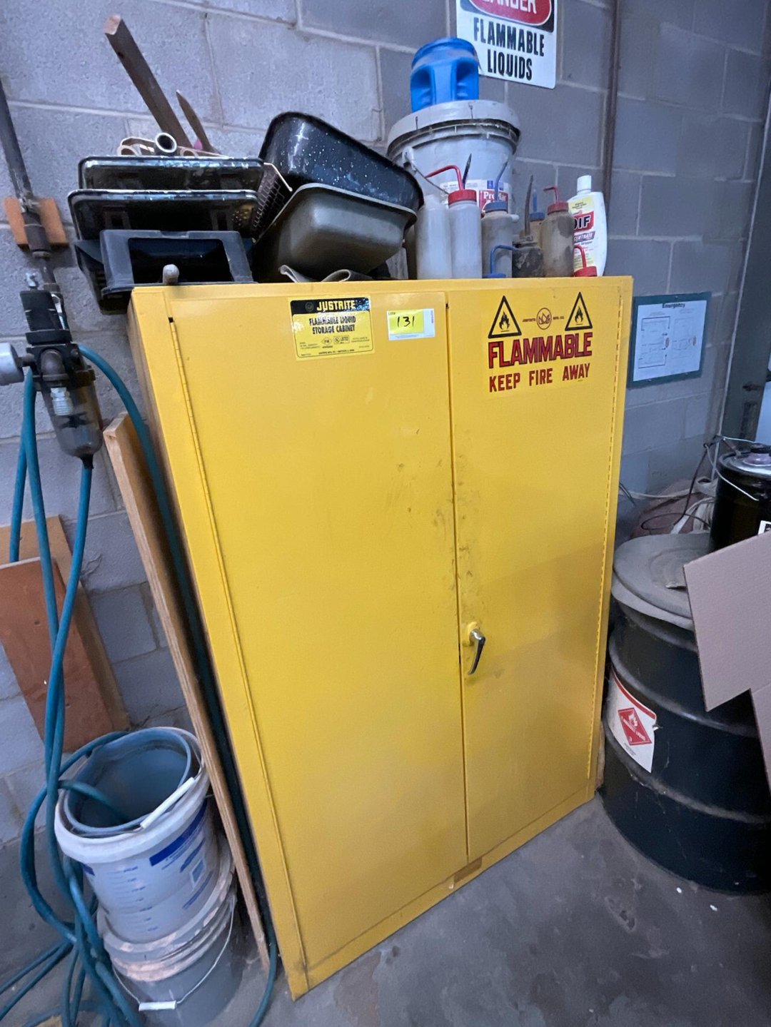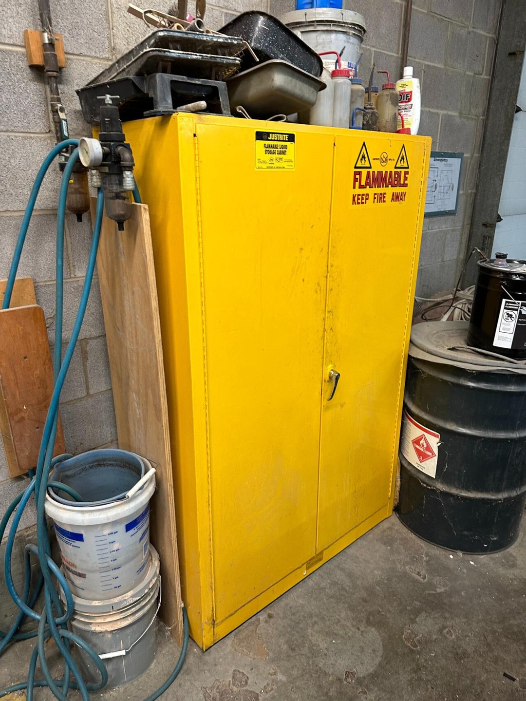 •Assorted shop liquids cabinet w/ contents