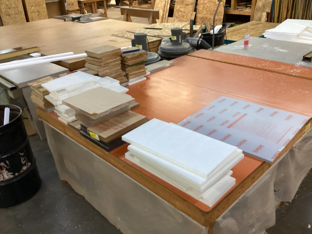 •Particle board & large selection of laminate