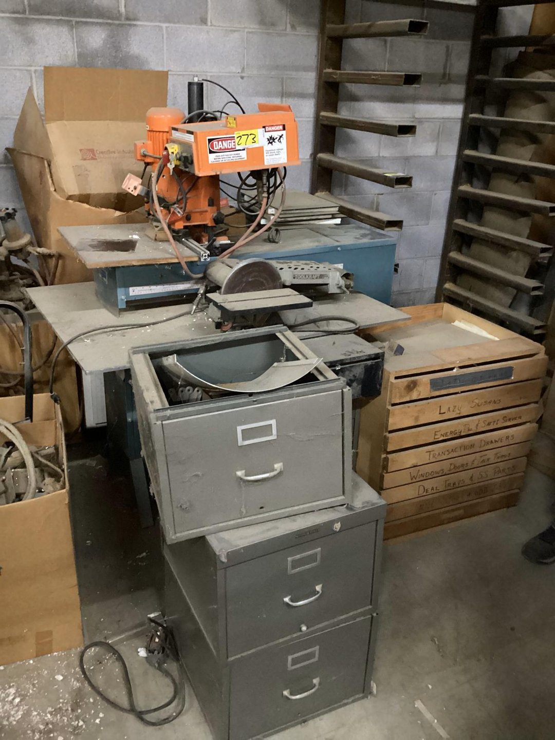 •7749 radial saw and cabinet