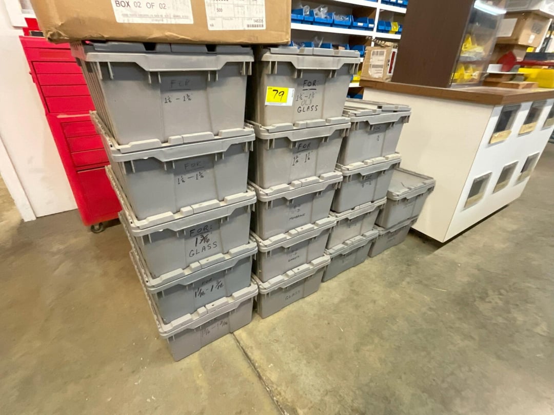 •Plastic totes full of assorted rubber blocks