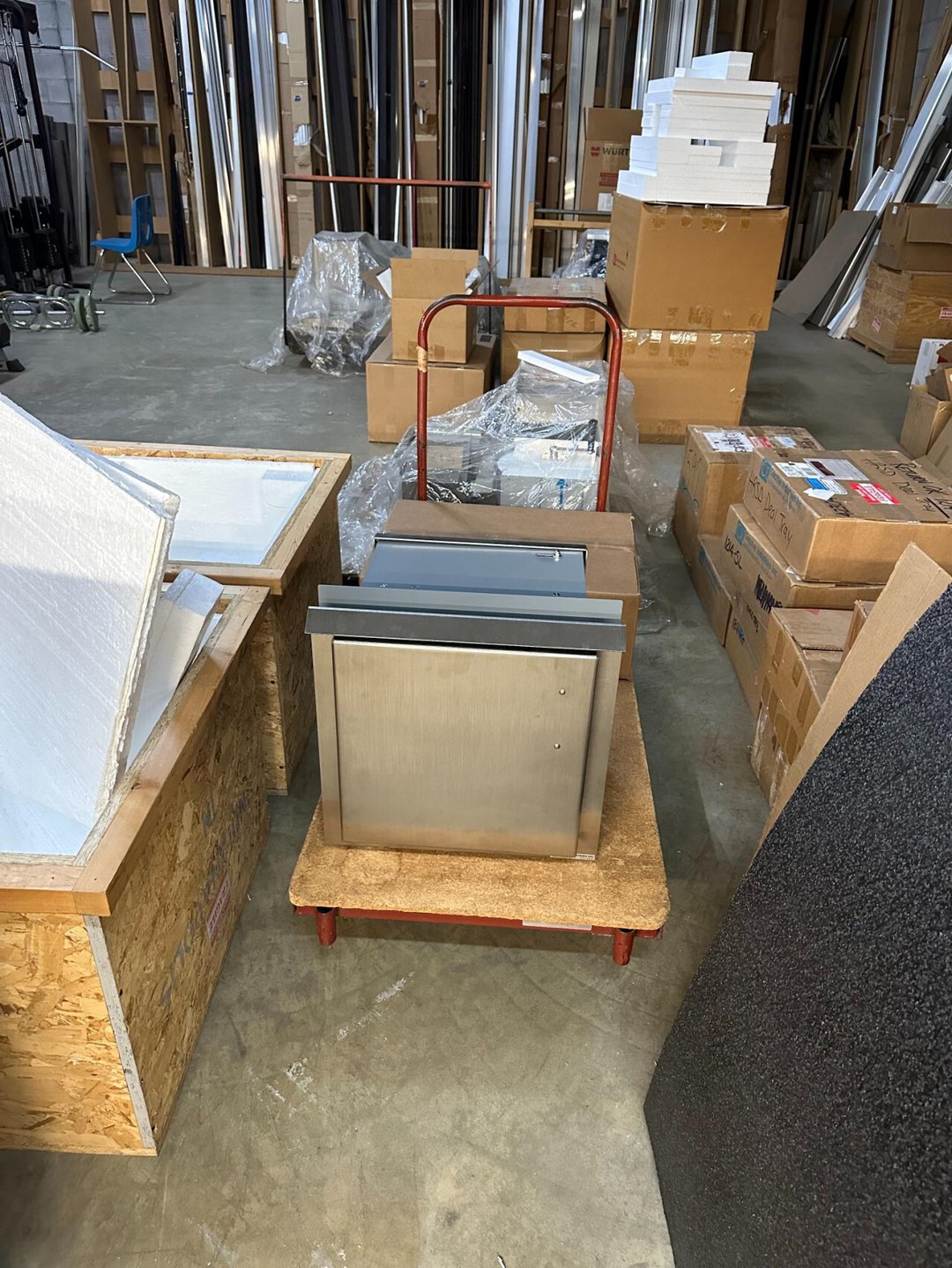 •Industrial cart w/ pallets & acrylics pc