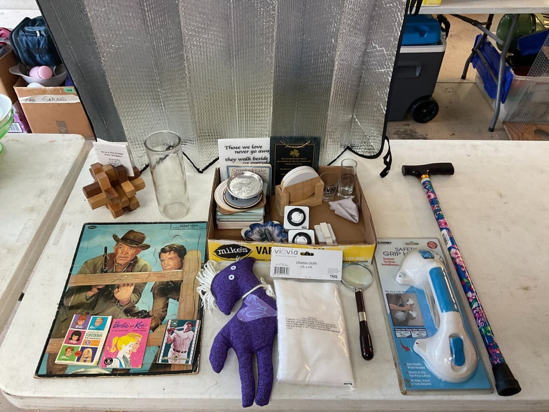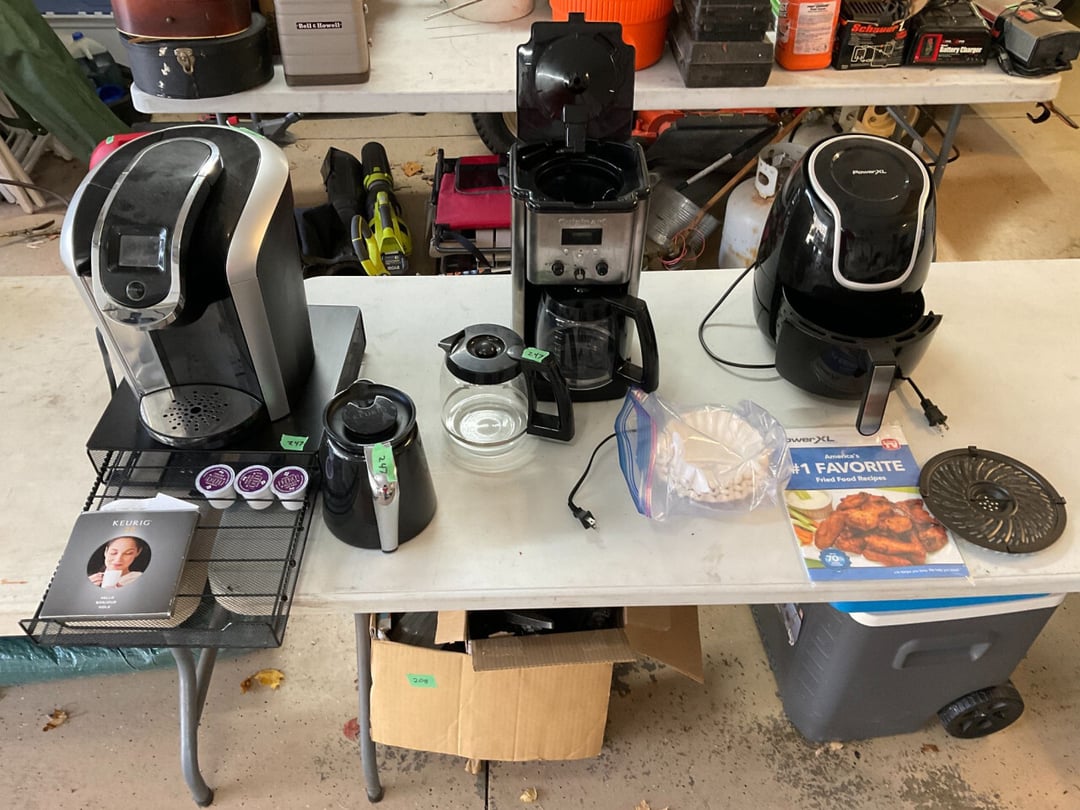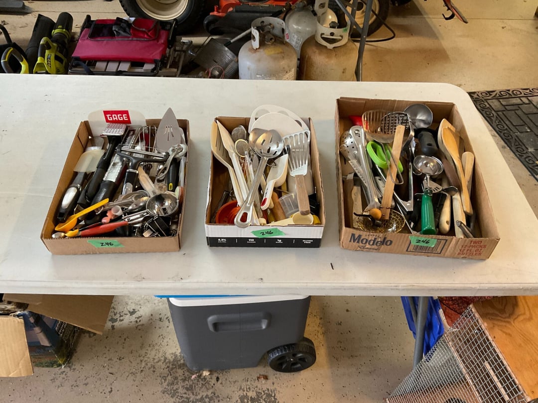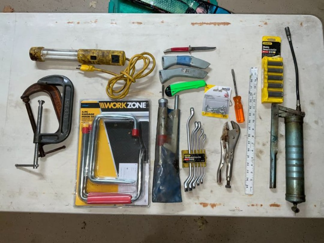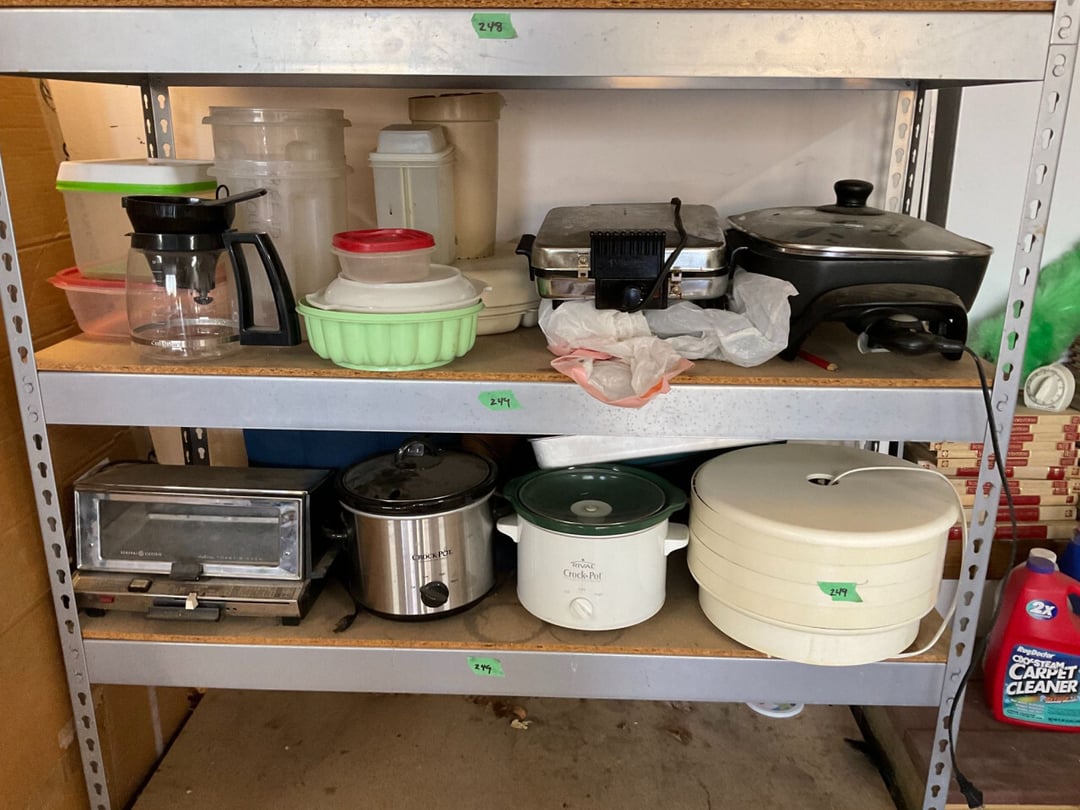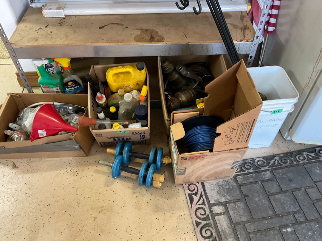 Stihl FS55 Weedeter , Stihl MM55 Tiller , Pull Behind Wagon , Ryobi Weedeater & Blower, Large Lot of Extension Cords , Schwinn Le Tour II Bike , Discover Bike , Coleman Propane Lantern, Small Trap, Ear Muffs, Tarps , Flexible Flyer Sled, Yard Tools Shovels, Rakes, Hoes, Log Puller , Yard Chemicals & Sprays , Yard Tools , Walker Floor Jack , Large Lot of Misc Wood , 24' Extension Ladder , 8' Keller Fiberglass Ladder , Pole Cutter, Hand Cutter, Hand Yard Tools , 6' Fiberglass Ladder , Craftsman Toolbox & Misc. Tools, Small Dog Cage, Chain, Leash, Patpet 320 Dog Training Collar , Campbell Hausfeld Air Compressor W/ Air Hose , Mighty Mac Blower , Craftsman Ratchets & Misc. sockets , Hand Tools, 1 Amp & 6 Amp Battery Charger, Car Air Compressor, , Bottle Jack, Craftsman Air Chissle, Ridgid & Others Pipe Cutter, 200' Tape Measurement, Level , Handy Andy Blue Diamond Tool Set , Wagner 3A & Griswold No 7 Cast iron Skillet , Cast Iron Skillets & Camp Fire Cooking Sticks , LP Tank & Torch , (2) LP Tanks & Gas Cans , 5 Gallon Beverage Cooler , Shelf , Shelf , Shelf , Hose, Reel, Rags, Sponges , (2) Step Ladders , 4' Folding Table , Straps, Gloves, wall hook, Hand Yard Tools , 6 Folding Chairs , Filing Cabinet , Stadium Seat & Folding Lawn Chair , Kubota GR2000G Mower W/ Snow Blade , Huskeee 17 Cu FT Yard Trailer , 2006 Fabrique Trailer , 2013 Honda Accord , Fishing Poles , Fly Fishing Pole & Bait Caster Fishing Poles , (4) 40" Bar Clamps , (2) 48" (4) 60" Bar Clamps , (4) 50" Bar Clamps (2) C Clamps, Clamp Mate , Roller Stand , 2 Wheel Dolly Cart, Shop-Vac Wet/Dry Vac 12 Gallon 5.0 HP, GE Dehumidifier ADEH50LRL2 50 Pint/24 Hour, Assorted Wood, Oak Boards,Dowel Rods, miscellaneous wood , Various Hardwood , Delta 12" Industrial Miter Saw , Craftsman 3 1/4" Planer , Skil 3"x18" Belt , Bosch 1295DVS Disc Sander Micro Filter System , Black & Decker Palm Sander , Coleman Air Sander & B&D Sander , Delta Table Saw , Sear Craftman Wood Jointer 113.206931, Grizzly Shaper G1035 1 1/2 HP w/Bits, Dewalt DW735 13" Planer , Jet JDP-17X 17" Floor Drill Press , Grizzly G1019 14" Bandsaw, Jet DC-650M Dust Collector , Craftsman Tool Chest & Craftsman Hand Held Tool Box , Bostitch SB-150SX Finish Stapler , Master Force 208-5002 Micro Pin Nailer , Bosch PR20EVS Palm Router , Bosch MX30E Multi-x Tool , Mikita PJ7000 4" Plate Joiner , Hitachi 4 1/2" Disc Grinder , Rockler Woodworking & Hardware , Bosch 1590EVS Jig Saw, Bostitch SB-1664FN Finish Nailer, Buffalo Bench Grinder & Bench Vise , Dewalt D55140 1 Gallon Air Compressor W/ Hose , Saw Horses , Milwaukee 3/8" Reversing Drill, Extension Cord , Jet JBM-5 Mortise Machine W/ Bits , Chicago 300 pcs Bit Set , Various Tape Measure, 50' Steel Tape, Caulk Line , Wood Chisels , Various Size Crescent Wrenches & Allen Wrenches , Hand Saws & Spare Blades , Air Nails & Deck Screws , Mini Screwdriver Kit, Laser Measurement, Craftsman Socket set,, Puddy Knife & Tin Snips, Rulers, Levels, Clamps , Bosch Cordless Drill & Impact , Painting Supplies , Garrett GTA350 Metal Detector , 24" 28" 48" Levels , Crow Bars, Hand Saws, VHB Tape, Broom, Square, Peg Board Hooks , Cabinet & Contents (Mostly Sand paper) & Drawer Rollers, Bolt Bin w/ Misc Nails Screws , Parts Bins, Nuts Bolts, Misc Stain , Various Bar Clamps , Craftsman Standard & Metric Open End Wrenches , (10) 4" C Clamps , Side Cuts, Chanel Locks, Vise Grips , Hole Punch & Clamps , Hammers & Mallets, Punches , Ratchets & Various Sockets , Staple Guns & Misc. staples , Dremel 285, Hot Glue Gun, Jig Saw, Skill 3/8" Drill & Bits, Dewalt 1/2" Hammer Drill , Hammers & Axe, Needle Nose,Pliers, Wire Stripers, , Various Screwdrivers , Wheel Barrel , Shepherds Hook, Patio Box , Yard Cart w/ Hanging Baskets, Picnic Table, Hose & Yard Tools , Patio Table & 4 chairs w/ Cushions , 6 plastic Chairs & 2 Side Tables , Roc Blow Up Paddle Board , Roc Blow Up Paddle Board , Otter Kayak, 14' Plastic Canoe, 15' 3 Person Fiberglass Canoe, Costco 3' Step Ladder , Paddle King Boat , 36" Craftsman Thatcher , B&D Circular Saw W/ Push Blocks, Router Bits , Files & Knifes , Hooks, Bits, & Tool Set , Hand Planers , Crowbar, Hammer & Stone , RTS Starter Gun , Interarms .38 Special , H&R Model 930 .22 Revolver , Black Powder Gun, Hi Standard .22 Revolver , Leather Holsters , Remington .22 Single Shot , Marlin .22 S.L Rifle , Daisy BB Gun , Darton Compound Bow W/ Case , .45 Ammo, Brass & Misc , Card Table & 4 Chairs , Empty Beer Bottles, Unused Caps & Large Jug , (3) Folding Chairs , Bird Seed & Fan , Kirby Gen 4Sweeper W/ Attachment , Holiday Decor , Poker Table Top Cover , (2) Sleeping Bags & Gun Cases , Large Lot Of Life Jackets , 6' Wood Table, Gun Cleaning Items , Bow & Gun Items , Bocce ball, Cane Fishing Pole, Misc. Tackle Box, & Bait Boxes , Escape Trak Skis , Lionel Train Tracks & Misc, Lionel Train Cars, Lionel Train Cars w/ Lionel Transformer , Tote of CD's & DVD'S , Sail Boat Models , Various Books , Bar Items , Bar Glasses, Big Jug , Flatware & Kitchen Utensils, Cutting Board , Coffee Cups, Punch Set, Measuring Cup , Wine Glasses , Unopen Empty Beer Cans, Marbles , Vizio E40-C2 Flatscreen W/ Wall Mount , Sanyo Dorm Refrigerator , DVD Player, Disc Changer, Rope Lights, CD Player/Radio, Records , Framed Painting By Ruth Baker , Framed Painting By Ruth Baker , Framed Painting By Ruth Baker , Paintings , Movie Posters , Lake Decor , Vintage Baby Dolls , Vintage Toys, Cast Iron, Coin Dispenser Boy Scouts Memorabilia , Lighthouse Decor & Ruth Baker Painting , Bedding & Picture Frames , Vintage Clothing & Books , Boy Scouts Memorabilia , Vintage Flatware , Heritage Christmas Village , Dickens Keepsafe Village , Christmas Decor , Jodi track C900i Treadmill , Floor Lamp, Full Size Bed & Dresser , Makeup Vanity , Vintage Zenith Radio , High Top Table , (5) Bar Stools, Coffee Table, (2) Couch, End Table w/ Lamp, End Table , Honeywell True Hepa Filtration , Lamp, Antique Toys, (2)Razor Scooters, Toys, Games & (2) Booster Seats, (3) Sleeping Bags , (6) Camping Cha