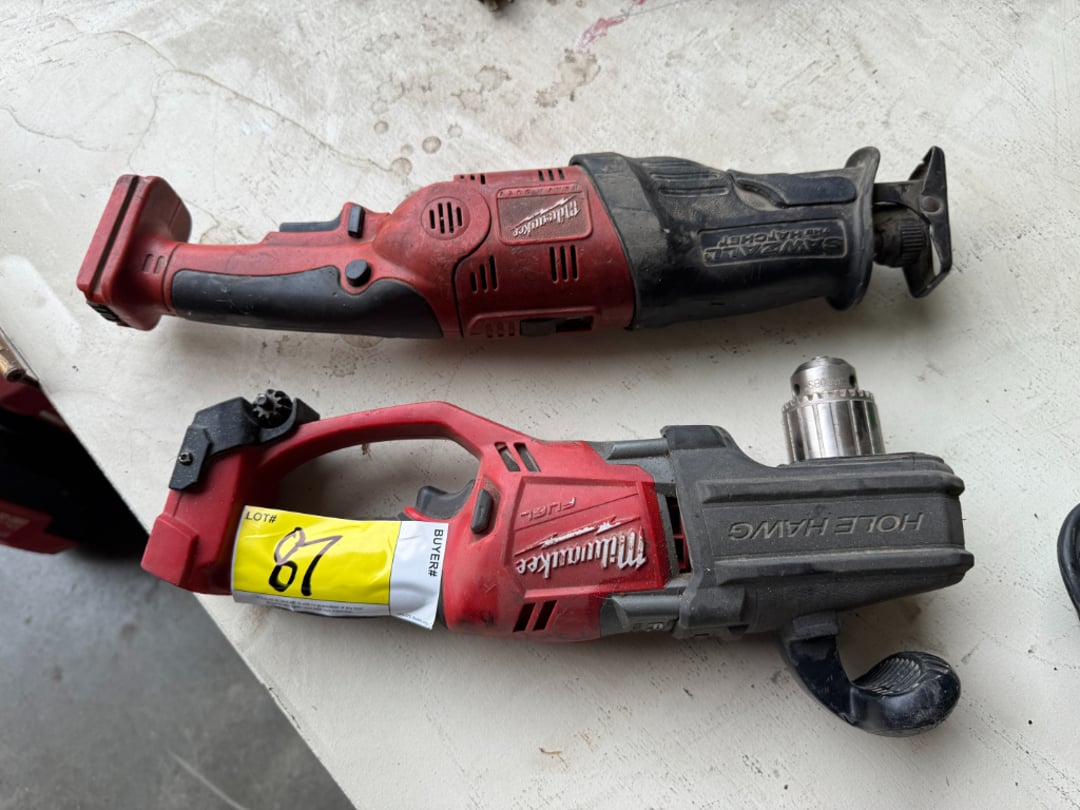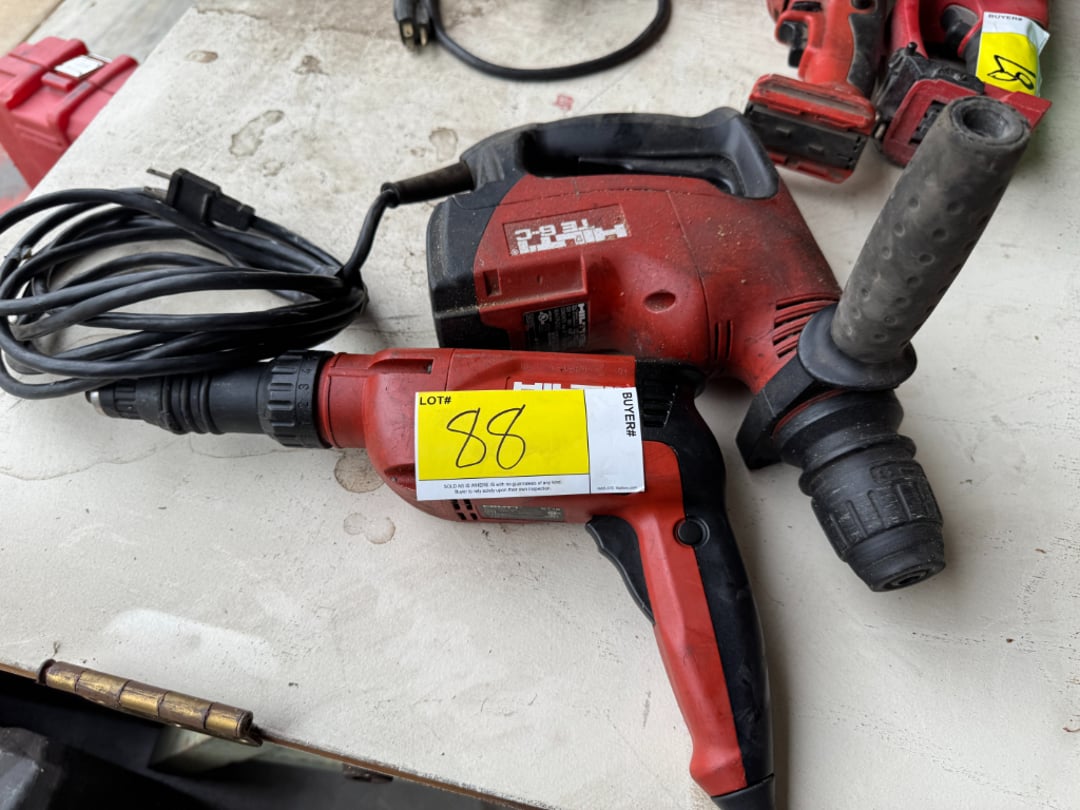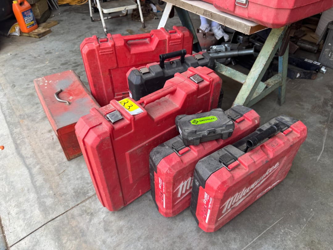 Hilti TE70-ATC Rotary Hammer Drill, 7306SB Slugbuster Knockout Punch & Hydraulic Driver Set, Milwaukee Heavy-Duty Sawzall, Hilti TE24 Hammer Drill, Milwaukee Thunderbolt 1-1/2" Rotary Hammer, Milwaukee Heavy Duty Electromagnetic Drill Press, Pittsburgh Hydraulic Punch Driver Kit, Remington Powder Actuated Tool, Bosch Hammer Drill, Milwaukee Fuel Rotary Hammer W/ Charger, GB PH-20 Knockout Punch Kit, GB PH-20 Knockout Punch Kit, Clarke Super 7R DC 115V Sander , Milwaukee Heavy Duty Band Saw, Greenlee 849 1/2"-2" Electric PVC Heater, Milwaukee Heavy Duty Spline Rotary Hammer, Milwaukee Band Saw & Sawzall, Various Fluke Meters , Various Milwaukee, DeWalt & Greenlee Tool Cases, Concrete Bits, Milwaukee 1/2" Hammer Drill, Milwaukee Magnum Hole Shooter, Milwaukee Heavy Duty 1/2" Drill, Milwaukee 1/2" Impact Driver & Charger, Milwaukee 6-Ton Knockout Drill W/ Charger &, Pittsburgh Motorized Rotary Laser Level Kit, Milwaukee 6-Ton Knockout Tool W/ Battery, , Milwaukee Heavy Duty 1/2" Drill, DeWalt DW160 3/8" Right Angle Drill, Bosch Rotary Hammer, Milwaukee Heavy Duty Hole Hawg, Hilti PR15 Rotary Laser, Milwaukee 1/2" Heavy Duty Hole Hawg, Greenlee 767 Hydraulic Hand Pump, Paslode Impulse IM-300/75N Nail Gun, (2) Milwaukee Heavy-Duty Impact Drivers W/, Milwaukee Heavy Duty V28 1/2" Impact Wrench W/, Milwaukee Inspection Camera W/ Battery & Charger, Milwaukee Heavy-Duty Jig Saw, Milwaukee Copper Tubing Cutter W/ Battery &, Milwaukee Heavy-Duty Band Saw, Milwaukee Heavy-Duty 1/2" Hammer Drill, Milwaukee Drill & Charger, Various Hand Saws, Heat Bond Seaming Iron, , Q.E.P Table Saw, Greenlee 7306 Hydraulic Knockout Punch Driver , Greenlee 767 Punch Set, Burndy 750 Revolver Hypress, Milwaukee Hammer Drill , Hilti RC212 B Coil Nailer, Greenlee 746, Greenlee 591 Portable Fish Tape Blower System, Milwaukee Greece Gun, (3) Milwaukee Chargers & (6) Batteries, (6) Milwaukee Chargers & 1/4" Impact Driver, DeWalt 1/2" Drill W/ Charger & (2) Batteries, Milwaukee Power-Plus Drill, Work Light, (3) , Battery Charger/Jumper, Milwaukee Heavy-Duty 8" Metal Cutting Saw, Milwaukee 7" Heavy Duty Polisher, Milwaukee Magnesium 7 1/4" Tilt-Lok Circular Saw, Milwaukee Heavy-Duty Sawzall, (2) Rack-A-Tiers, Milwaukee Heavy-Duty Sawzall, Milwaukee Super-Sawzall, (3) Various Battery Chargers, Milwaukee Fuel Sawzall, 7-Step Rolling Shop Ladder , Hilti MD2000 , 1/2" Crown Stapler , Milwaukee Heavy-Duty Sawzall W/ Battery , Milwaukee Contractors Bit Kit & Harmonic , Milwaukee 3/8" Hammer Drill, Milwaukee Tool Box W/ Bits, Black & Decker Jig Saw, Greenlee 7806SB Hydraulic Punch Driver Set, Black & Decker Drill, Milwaukee Heavy-Duty Hole Hawg, Milwaukee Fuel Hole Hawg, Milwaukee Fuel 1-1/8" Rotary Hammer, Mega Lube Grease Gun & Manual Grease Gun, Milwaukee Copper Tubing Cutter, Inspection Scope,, Milwaukee Fuel Hole Hawg & Sawzall The Hatchet, Hilti ST18 & TE6-C, Milwaukee Magnum Hammer Drill & 4-1/2" Grinder, Klein Self Leveling Cross Line Laser Level &, Greenlee 7304 Knockout Punch Set , Varitemp Heat Gun, Multi-Function Hole Cutter X-305 , (5) Greenlee Steel Fishtape Reels, Greenlee 7906SB Quick Draw 90 Hydraulic Punch, Hole Saw Bits, DeWalt Palm Grip Sander, Hilti HDM 500, Milwaukee Bag W/ Tape Measure, Sockets & Wrenches, 2018 JCB 505-20 Tool Carrier Load All , Greenlee Power Finder Circuit Seeker, Zurn Multi-Head Crimp Tool, Ingersoll-Rand P-160-w-JD Air Compressor , (3) Various Milwaukee Circular Saws, DeWalt Hammer Drill 3-Mode SDS D-Handle, John Deere 27D Mini Excavator , 22 Ton Powerhouse Log Spitter , Milwaukee Caulk & Adhesive Gun, , Case TR270 Track Loader , , 2014 Genie TZ-50 Hybrid , Dyna-Glo Kerosene Heater, 2015bPJ Equipment Trailer , Weller Sodder Gun, Gas Lamp Tester & Insulated Gloves, 2018 Vermeer RTX250 Trencher , Suitcase X-treme 8VS Wire Feeder, Troy-Bilt XP Series Generator, Walk-Behind Concrete Buggy , Carpet Stretcher, Nails, Staple Guns & Other Misc. , 2015 JCB TP48 Trencher , 34" Bolt Bin, 74" Cat Grapple Bucket , JCB 8018 CTS Mini Excavator , 1 Each Chip Rack w/ (40) Each 8" Peg Hooks, JCB Quick Connect Auger , 2019 Vermeer RTX250 Trencher , 78" Quick Connect Smooth Bucket , 83" Quick connect Bucket w/ Teeth , Heater, Fan, Noco Genius 10, Milwaukee M18 5.0 Battery, 42" Quick Connect Forks , 2010 JCB 84" Smooth Bucket , 1988 Lud Tilt Bed Trailer w/ Ramp , 2014 Vermeer RTX250 Trencher , Cable Puller, , , John Deere 1050 Tractor , , Frigidaire Refrigerator W/ Freezer, (12) Various Fire Extinguishers , Coleman 54 Series Powermate , , , SE-4022 Schmucker Battery Charger &, , Clarke American EZ-8 Sander , Drain Cleaner, Master MH-140T-KFA Kerosene Heater , , Kushlan Concrete Mixer, Kymco MXU 150 Four Wheeler, , , 16' Fiberglass Step Ladder , Craftsman 3000PSI Pressure Washer, Lincoln AC225 Amp Arc Welder W/ Cart, Helmets &, 24' Fiberglass Extension Ladder , , 12' Louisville Fiberglass Step Ladder , 2'x3' Rolling Shop Cart W/ Contents, , 16' Louisville Fiberglass Step Ladder , , Heat Star HD Kerosene Heater , Loncin LF-88 Concrete Plate Compactor , , , 12' 8' 6' Fiberglass Ladder , Troy-Bilt Trimmer/Mower , , , , Electric Eel Drain Cleaner, Sandborn 80Gal. Air Compressor W/ Reel & Hose, , , 29" Metal Saw Horses , , 1984 International 2275 Daycab , 8' Werner Fiberglass Ladder , Shelving W/ Contents-Hardware, Propane, Various , 2005 Enclosed Trailer , 60" Wire Rack W/ Contents-Hardware, Hardware , Haul Master 150LB Drywall Panel Hoist , DeWalt 3750PSI Pressure Washer , Bolens 550 Tiller, Workforce XLB-4725A Man Lift , JCB 215T Super Track Loader , Honda 5.0 Auger W/ Bit & Cart, Cat 279C Track Loader , , Super Bronco CRT Tiller, 2008 Ford E250 Bucket Van , 2024 Watchdog Equipment Trailer , Husqvarna ST 224P Snow Blower , Concrete Saw , John Deere 1025R Tractor , 8' Fiberglass 6' Wood Ladder , (2) 12Gal. Shop Vacs- Rigid & Shop Vac Brand, Reddy Kerosene Heater 125T & Spreader , 2011 PJ Dump Trailer , 2005 Chevrolet 1500 , 12' Werner Fiberglass Ladder , 2000 Equipment Trailer , 6' Husky Fiberglass Ladder , Hydrau