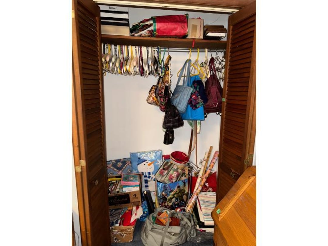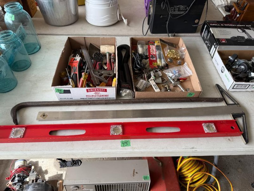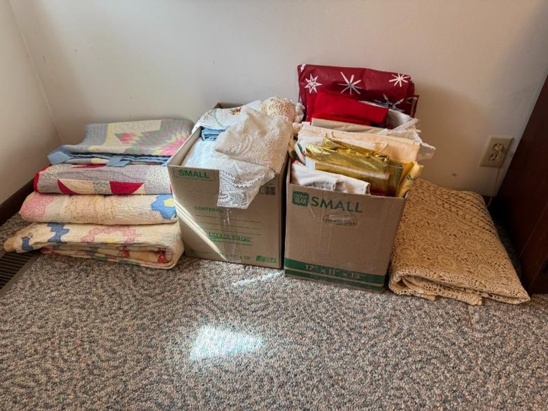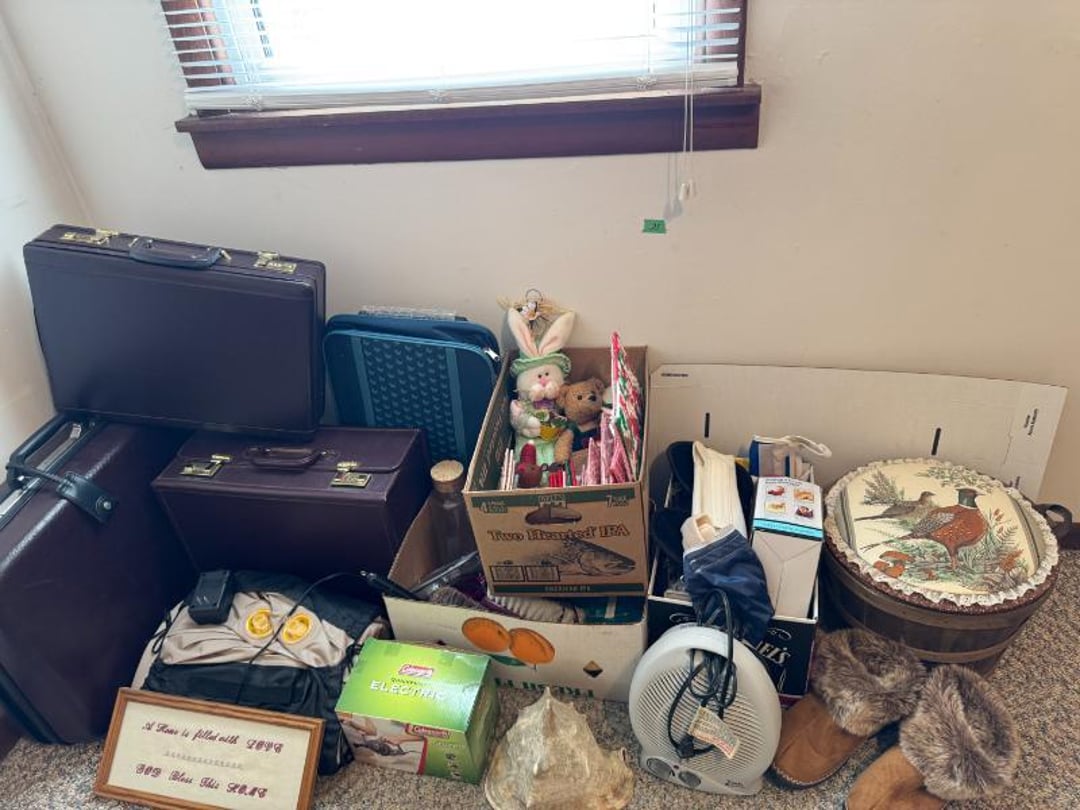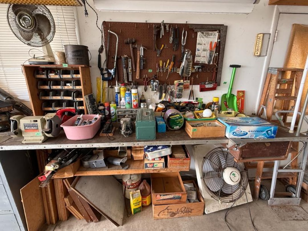 Electronics - GE CB/PA, Penny's Stereo Cassette , (3) Vintage Chairs , Contents of Left Wall - Rolling Stand, SC Elec.Type- , Large amount of Purses , 3 Drawer Dresser 31"Tx33"Wx17"D, (3) Brass & Crystal Lamps, Queen Size Bed & Dresser w/Mirror, Clothes Hamper, NIB Bed Assist Handle, Pedal , Shower Stools, Scales, Towel Rack, Misc, Cross Stitch Art, Contents of Closet-Purses,Gift Bags, Hangers, Misc, Kerosene Lamps,Paper Weights, Glass Candle , Wood Secretary Desk, Queen Size Bed with Nightstand, Radio, Old Quilts, Table Cloths , Hat(S), Shoeshine Box, Firkin Sugar Bucket Marked, 4 Drawer Chest, 2 Pc. Matching Bedroom Furniture , Air Mattress & Pump, New Folding Suitcase, Briefcase,, Glider Rocker & Pro-Massage Chair Cushion, File Cabinet,Contents on Wall, Metal Desk - , Ironing Board, Contents of Closet-Crafts, (2) Totes, Hanging Suitcase, Contents of Closet - Towels, Pillows, Tablecloths, , Humidifier, Stepstool, Wood Waste Basket, Wall Decor, Rug 60"x40", Bookshelf with Contents , Contents of Closet - Bibles, Books, Candles, RCA 19" TV w/Stand, Norman Rockwell Shadow Box, Barrel Back Chair & Rug, Rocking Chair , Beveled Mirror 56"x36", Hallway Table 29"Tx28"Wx13.5"D, Lamp 36" T, Wingback Upholstered Chair, (2) Pheasant Pictures - appears made with feathers, Side Table, Candle in Lantern Deco,Lg Glass Vase, (2) Matching End Tables, TV Stand, Bissell Wide Path Sweeper, (2) Western Type 29"x22" Pictures, 3 Plants, Stand,, Heavy Adjustable Floor Lamp, VTG Japanese Pottery & Nippon(?) Vase, Lefton , (2) Majolica? - Biscuit Jar & Art Pottery Vase, Heavy Adjustable Floor Lamp, Contents on Shelves, Plasticware - 2 Totes & 1 Box - Many have Clamp on, (2) Wood Magazine Rack Side Tables., Collectable Hall, McCoy , Frankoma Pottery , Hutch - 78"Tx40"Wx18"D, Contents in Top of Hutch - Glassware, Stems, 72 Pc Harmony House Alyce China - Serves 12, TV Trays, Paper Shredder, Wastebasket, Toaster Oven, Contents of Cabinet- Glasses & Mugs, Cleaning Products under Sink, Sterling Florentine China - Serves 12, Contents of Cabinet - Baking & Serving Dishes, Large Amount of Corningware and miscellaneous, New Innova SS Roaster, T-Fal Skillet, SS Skillet, SS Canisters, Micro Roaster, FireKing, Lg Pyrex , Kitchen Utensils, Bread Box, Kitchen Ware, Contents of (3) Cabinets , Panasonic Microwave , Laptop Computer, Surge Protector, Bag, Belt Buckles, Zippo Lighter, Belts, VTG 6lb American Eagle Ashtray, Match Collection , Ceramic Drink Dispenser, Depression Plates, Crockpot & Electric Skillet , 22 Pc Edgerton Classic China, Flatware, Knives, Stemware , 75 Pc Corelle Dishes, NIB Mr Coffee, Sm Fiesta Bowl, Mixing Bowl Set, 8, Fenton Milk Glass Hobnail Lamp, Silver Plate Tray, Tea Set, Misc Pieces, VTG Radios & Cameras , New Word Search/Crossword Books,VTG Sheet, NIB HP Monitor , Antique "Can't You Talk" Picture , Canned Goods, Sm Appliances & More, Contents of Right Wall-Septic Cleaners, Dirt Devil, Sanyo Sm Dorm Fridge & Cabinet , Contents of Left Wall - Cleaners, Clothes Hamper, Misc, Wood Ramp 100" Long x 40" Wide - bring tools, Trash Bag Holder, Unassembled Coffee Table, The, 8' Step Ladder, Contents of Cabinet- Canning Supplies, Kitchenware , Wood 2 Door Storage Cabinet 6'x4', Scrap, Christmas Decorations , Small Table Saw, Garden Supplies , 6ft Pre-lit Christmas Tree , 6ft Mountain King Christmas Tree , 32 Blue Canning Jars, 9 Clear Wire Top Jars, Tools, NIB 18V Cordless Drill & Worklight, Wheels, Motors, Heater, Extension Cord, Toolbox, Relient 52 pc Power Bit Set, Tool Box w/ Contents , NIB Craftsman Home Repair Kit, B&D Laser Level,, Tool Box w/Electrical, Steering Wheel Puller, Dremel, Ranger Cordless 6.0V Drill, Union Drill Set, Craftsman Orbit Sander, 6.0 Cordless Drill, 5" Sand-, Reversible 1/2" Drill on Drill Press Stand, Sm Extension , (3) VTG Gas Can, Chest Cooler, (2) Drink Holders, Lunch Igloo Cooler, (3) Nice Totes w/ Plant Stand(?), Full Kerosene Can, 2 Gas Cans, 20 Gal. Galvanized Steel Trash Can, Step stool & Camping Chair , Contents of Cabinet- Garage Type Items, Thermos Gas Grill w/ extra Tank, Trash Can & Container of Wood Scraps, Portable Kerosene Heater, Trash Can w/ Lid & Wheels, EB Ice Machine - Cold Therapy, Grilling Set & Grill Mats, Craftsman - Metal Parts Drawers, Sanding Drum Kit,, Craftsman Router Table & Bis-Kit System, VTG Dunlap Blow Torch, Dietz Blue "Little Wizard" Lantern w/ Red Globe, Wood Working Tools, Pipes & Smoking Accessories, (2) VTG Radios & Cameras , Crocks - Jug & Bowls, Maverick Ice Cream Shoppe, Presto Canner, 8qt , Collectibles - VTG Metal Oil Cans, Wood Boxes & More, Craftsman Gas Chainsaw, Old Jacks, B&D Electric Hedge Trimmer & Remington Pole Saw, Full 5 gal Gas Can, 6 amp Schumacher Battery Charger , Metal 3 Drawer Cabinet w/Contents 41"Tx36"Wx24"D, Contents of Cabinet & Below - Mole Trap, Oils, Weed, Dunlap Scroll Saw, Wood Workbench Cabinet w/ Lathe Attached, Contents of Cabinet , Contents of Cabinet - Lots. Of Hardware etc, (4) CB Radios - Midland, Johnson, Realistic & (3) , Metal Cabinet w/ 3 Locking Compartments, All Contents on Workbench- Wall to Floor- bring tool , 5' Stepladder, 2 Wheel Cart, 6 Boxes Canning Jars, Contents of Room, Agri-Fab Lawn Vac, Garden Cart 48"x38", Belt Sander, Craftsman 5 HP Shredder/Chipper, Wheelbarrow, Outdoor Fireplace "Lil Lawn & Garden", Birdbath, Swing - 63" Long Seat, Mailbox, 10K Masonic Ring, 10K Masonic Ring, 14K Ring, 18K Ring, Pocket Watch, Ring, Necklace (no chain),