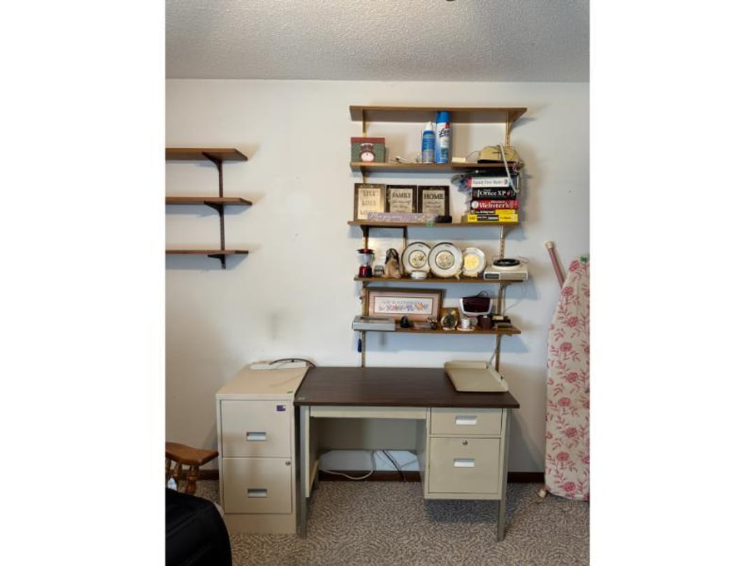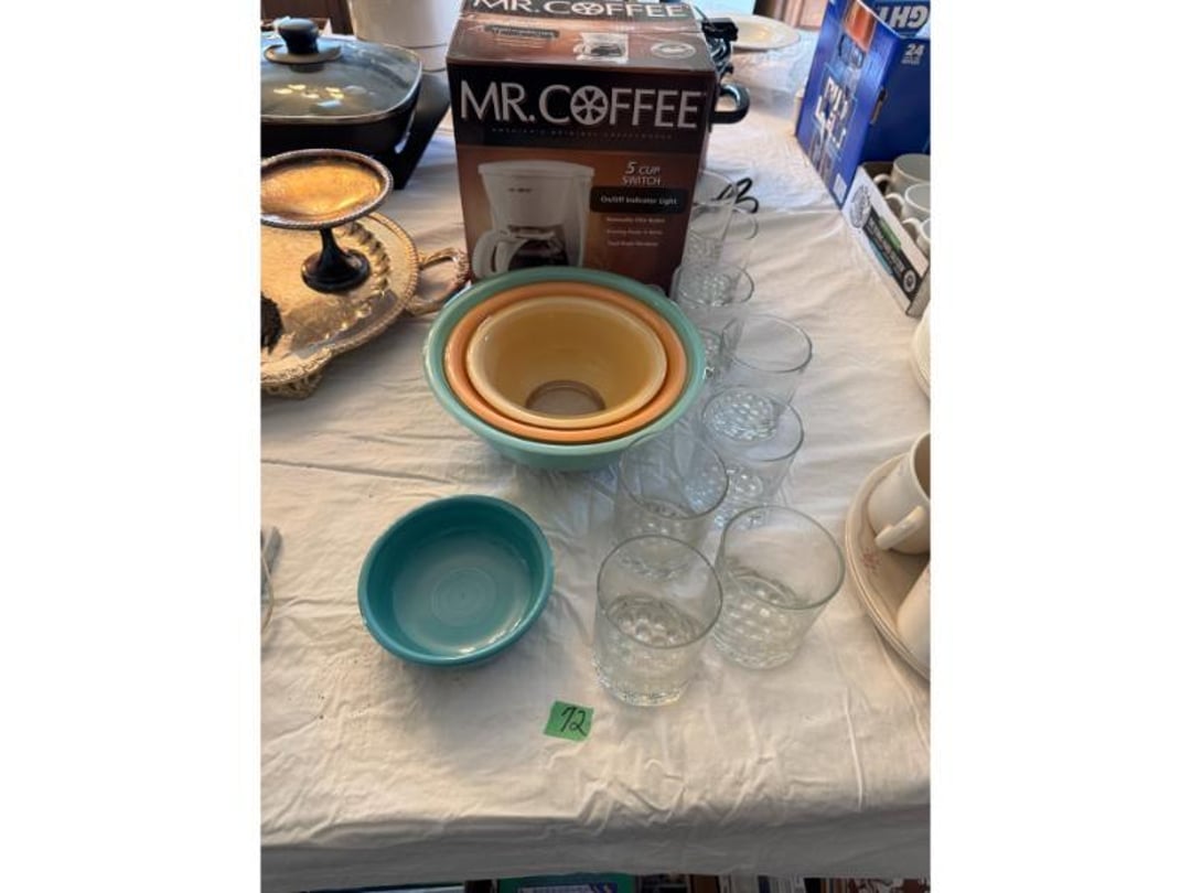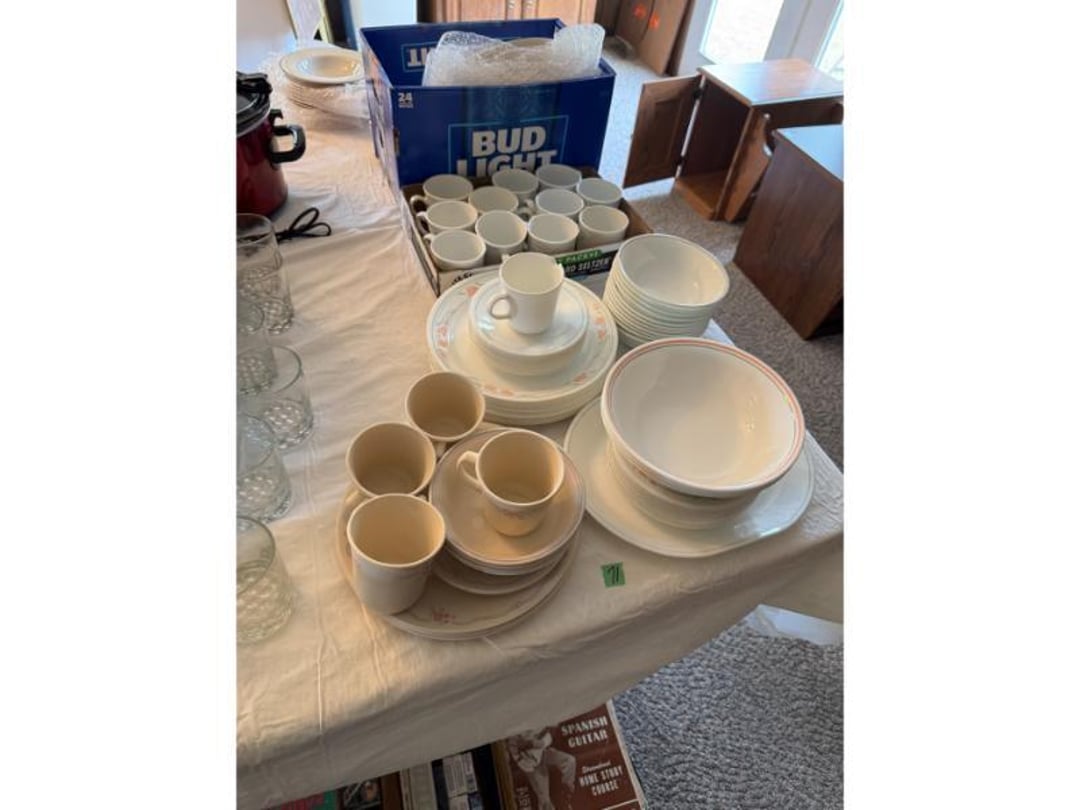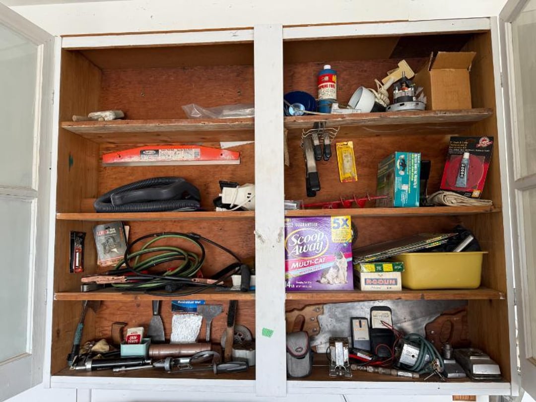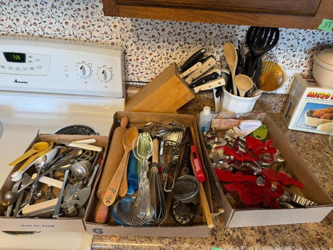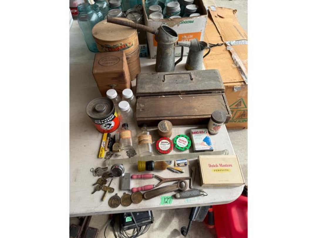 Electronics - GE CB/PA, Penny's Stereo Cassette , (3) Vintage Chairs , Contents of Left Wall - Rolling Stand, SC Elec.Type- , Large amount of Purses , 3 Drawer Dresser 31"Tx33"Wx17"D, (3) Brass & Crystal Lamps, Queen Size Bed & Dresser w/Mirror, Clothes Hamper, NIB Bed Assist Handle, Pedal , Shower Stools, Scales, Towel Rack, Misc, Cross Stitch Art, Contents of Closet-Purses,Gift Bags, Hangers, Misc, Kerosene Lamps,Paper Weights, Glass Candle , Wood Secretary Desk, Queen Size Bed with Nightstand, Radio, Old Quilts, Table Cloths , Hat(S), Shoeshine Box, Firkin Sugar Bucket Marked, 4 Drawer Chest, 2 Pc. Matching Bedroom Furniture , Air Mattress & Pump, New Folding Suitcase, Briefcase,, Glider Rocker & Pro-Massage Chair Cushion, File Cabinet,Contents on Wall, Metal Desk - , Ironing Board, Contents of Closet-Crafts, (2) Totes, Hanging Suitcase, Contents of Closet - Towels, Pillows, Tablecloths, , Humidifier, Stepstool, Wood Waste Basket, Wall Decor, Rug 60"x40", Bookshelf with Contents , Contents of Closet - Bibles, Books, Candles, RCA 19" TV w/Stand, Norman Rockwell Shadow Box, Barrel Back Chair & Rug, Rocking Chair , Beveled Mirror 56"x36", Hallway Table 29"Tx28"Wx13.5"D, Lamp 36" T, Wingback Upholstered Chair, (2) Pheasant Pictures - appears made with feathers, Side Table, Candle in Lantern Deco,Lg Glass Vase, (2) Matching End Tables, TV Stand, Bissell Wide Path Sweeper, (2) Western Type 29"x22" Pictures, 3 Plants, Stand,, Heavy Adjustable Floor Lamp, VTG Japanese Pottery & Nippon(?) Vase, Lefton , (2) Majolica? - Biscuit Jar & Art Pottery Vase, Heavy Adjustable Floor Lamp, Contents on Shelves, Plasticware - 2 Totes & 1 Box - Many have Clamp on, (2) Wood Magazine Rack Side Tables., Collectable Hall, McCoy , Frankoma Pottery , Hutch - 78"Tx40"Wx18"D, Contents in Top of Hutch - Glassware, Stems, 72 Pc Harmony House Alyce China - Serves 12, TV Trays, Paper Shredder, Wastebasket, Toaster Oven, Contents of Cabinet- Glasses & Mugs, Cleaning Products under Sink, Sterling Florentine China - Serves 12, Contents of Cabinet - Baking & Serving Dishes, Large Amount of Corningware and miscellaneous, New Innova SS Roaster, T-Fal Skillet, SS Skillet, SS Canisters, Micro Roaster, FireKing, Lg Pyrex , Kitchen Utensils, Bread Box, Kitchen Ware, Contents of (3) Cabinets , Panasonic Microwave , Laptop Computer, Surge Protector, Bag, Belt Buckles, Zippo Lighter, Belts, VTG 6lb American Eagle Ashtray, Match Collection , Ceramic Drink Dispenser, Depression Plates, Crockpot & Electric Skillet , 22 Pc Edgerton Classic China, Flatware, Knives, Stemware , 75 Pc Corelle Dishes, NIB Mr Coffee, Sm Fiesta Bowl, Mixing Bowl Set, 8, Fenton Milk Glass Hobnail Lamp, Silver Plate Tray, Tea Set, Misc Pieces, VTG Radios & Cameras , New Word Search/Crossword Books,VTG Sheet, NIB HP Monitor , Antique "Can't You Talk" Picture , Canned Goods, Sm Appliances & More, Contents of Right Wall-Septic Cleaners, Dirt Devil, Sanyo Sm Dorm Fridge & Cabinet , Contents of Left Wall - Cleaners, Clothes Hamper, Misc, Wood Ramp 100" Long x 40" Wide - bring tools, Trash Bag Holder, Unassembled Coffee Table, The, 8' Step Ladder, Contents of Cabinet- Canning Supplies, Kitchenware , Wood 2 Door Storage Cabinet 6'x4', Scrap, Christmas Decorations , Small Table Saw, Garden Supplies , 6ft Pre-lit Christmas Tree , 6ft Mountain King Christmas Tree , 32 Blue Canning Jars, 9 Clear Wire Top Jars, Tools, NIB 18V Cordless Drill & Worklight, Wheels, Motors, Heater, Extension Cord, Toolbox, Relient 52 pc Power Bit Set, Tool Box w/ Contents , NIB Craftsman Home Repair Kit, B&D Laser Level,, Tool Box w/Electrical, Steering Wheel Puller, Dremel, Ranger Cordless 6.0V Drill, Union Drill Set, Craftsman Orbit Sander, 6.0 Cordless Drill, 5" Sand-, Reversible 1/2" Drill on Drill Press Stand, Sm Extension , (3) VTG Gas Can, Chest Cooler, (2) Drink Holders, Lunch Igloo Cooler, (3) Nice Totes w/ Plant Stand(?), Full Kerosene Can, 2 Gas Cans, 20 Gal. Galvanized Steel Trash Can, Step stool & Camping Chair , Contents of Cabinet- Garage Type Items, Thermos Gas Grill w/ extra Tank, Trash Can & Container of Wood Scraps, Portable Kerosene Heater, Trash Can w/ Lid & Wheels, EB Ice Machine - Cold Therapy, Grilling Set & Grill Mats, Craftsman - Metal Parts Drawers, Sanding Drum Kit,, Craftsman Router Table & Bis-Kit System, VTG Dunlap Blow Torch, Dietz Blue "Little Wizard" Lantern w/ Red Globe, Wood Working Tools, Pipes & Smoking Accessories, (2) VTG Radios & Cameras , Crocks - Jug & Bowls, Maverick Ice Cream Shoppe, Presto Canner, 8qt , Collectibles - VTG Metal Oil Cans, Wood Boxes & More, Craftsman Gas Chainsaw, Old Jacks, B&D Electric Hedge Trimmer & Remington Pole Saw, Full 5 gal Gas Can, 6 amp Schumacher Battery Charger , Metal 3 Drawer Cabinet w/Contents 41"Tx36"Wx24"D, Contents of Cabinet & Below - Mole Trap, Oils, Weed, Dunlap Scroll Saw, Wood Workbench Cabinet w/ Lathe Attached, Contents of Cabinet , Contents of Cabinet - Lots. Of Hardware etc, (4) CB Radios - Midland, Johnson, Realistic & (3) , Metal Cabinet w/ 3 Locking Compartments, All Contents on Workbench- Wall to Floor- bring tool , 5' Stepladder, 2 Wheel Cart, 6 Boxes Canning Jars, Contents of Room, Agri-Fab Lawn Vac, Garden Cart 48"x38", Belt Sander, Craftsman 5 HP Shredder/Chipper, Wheelbarrow, Outdoor Fireplace "Lil Lawn & Garden", Birdbath, Swing - 63" Long Seat, Mailbox, 10K Masonic Ring, 10K Masonic Ring, 14K Ring, 18K Ring, Pocket Watch, Ring, Necklace (no chain),