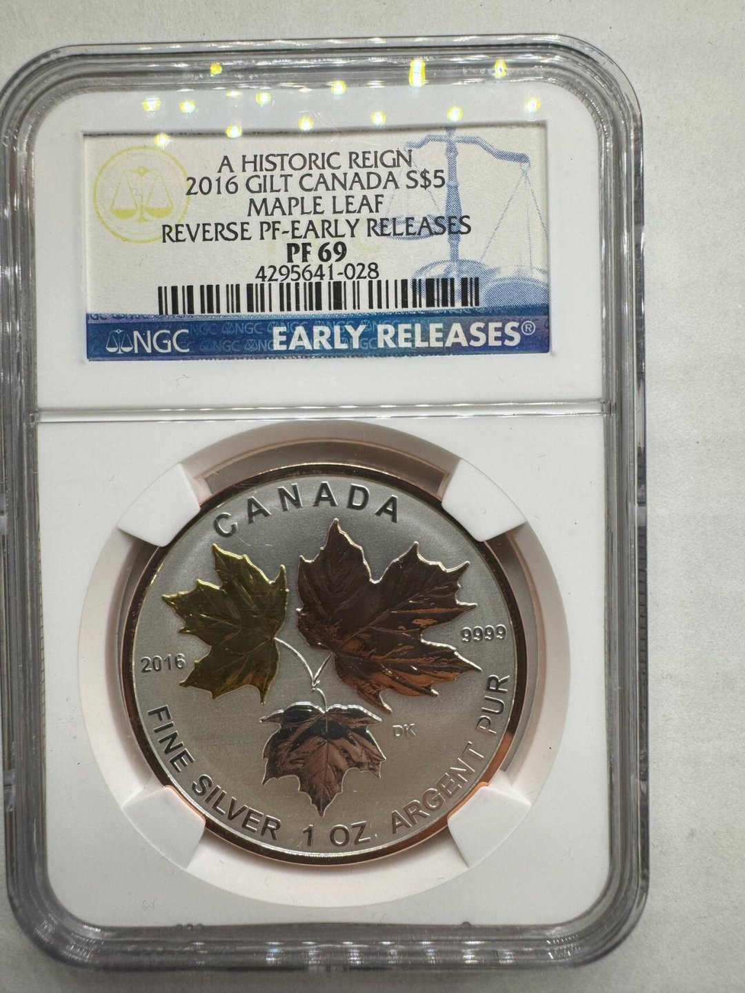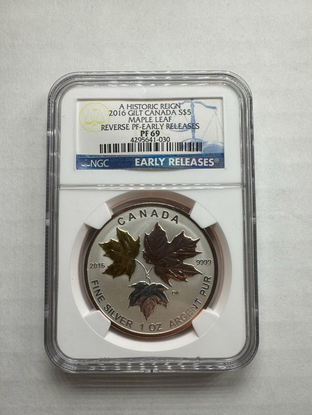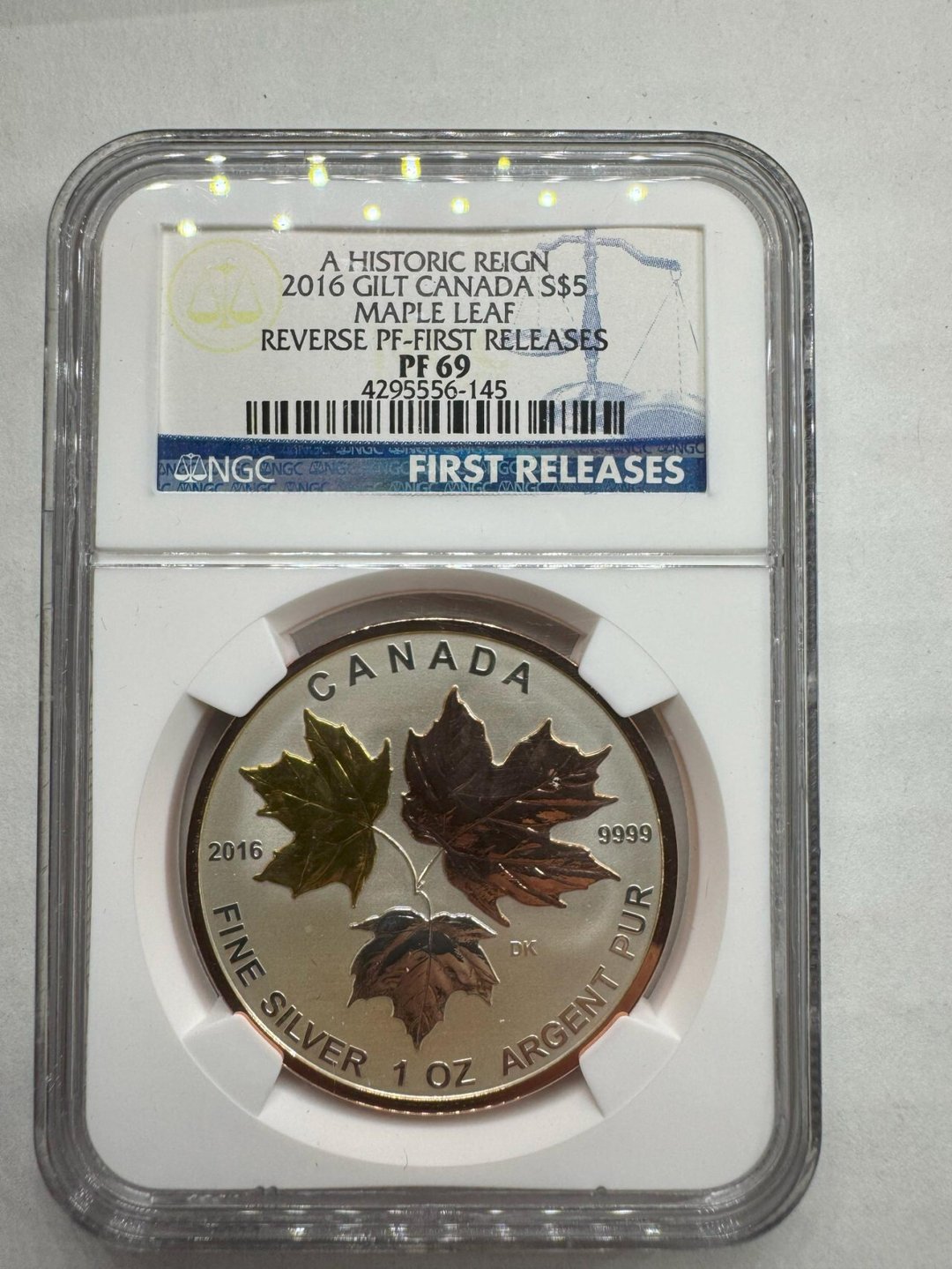 •A Historic Reign 2016 Gilt Canada S$5 Maple Leaf Coin