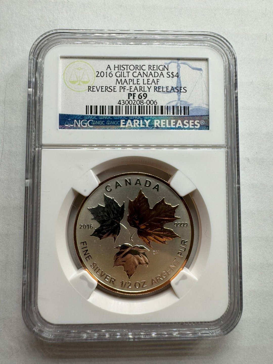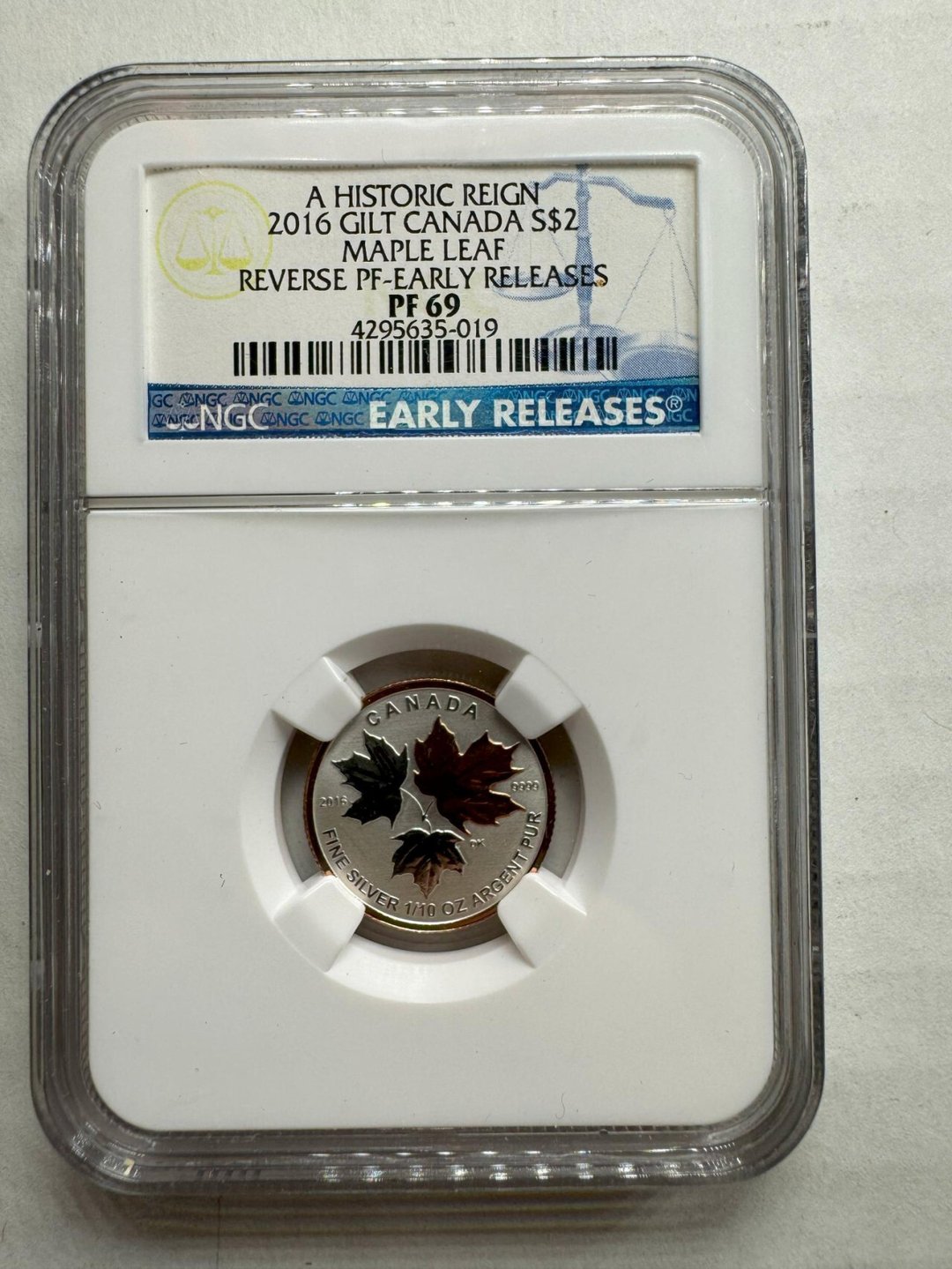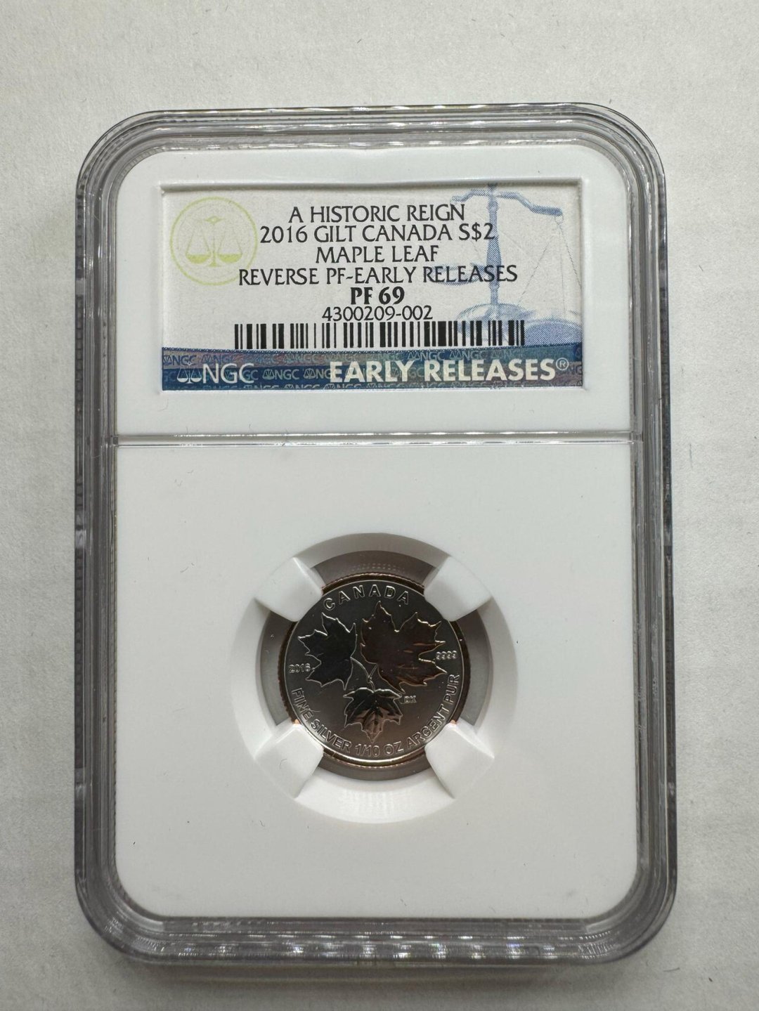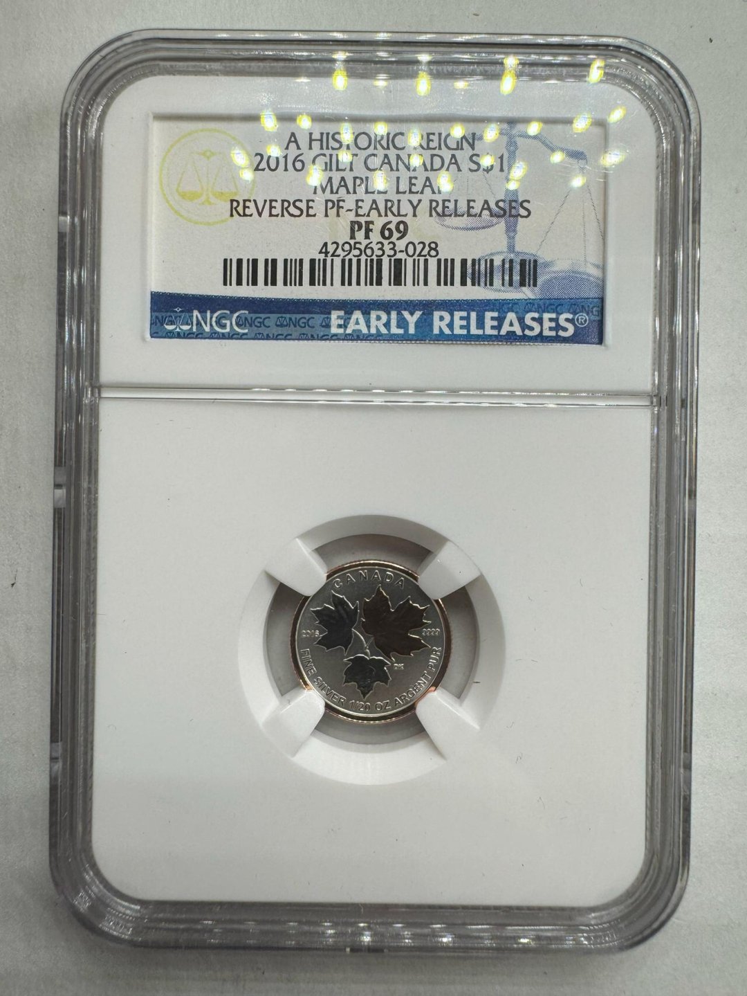 •A Historic Reign 2016 Gilt Canada S$1 Maple Leaf Reverse PF-First Releases