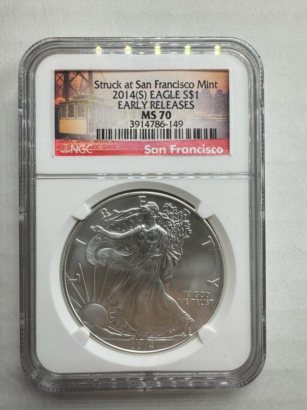 •2014 MS69 Silver Eagle Struck at San Francisco First Strike