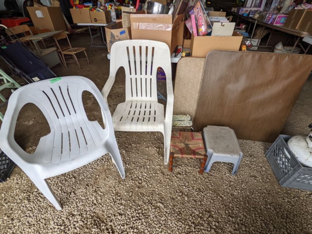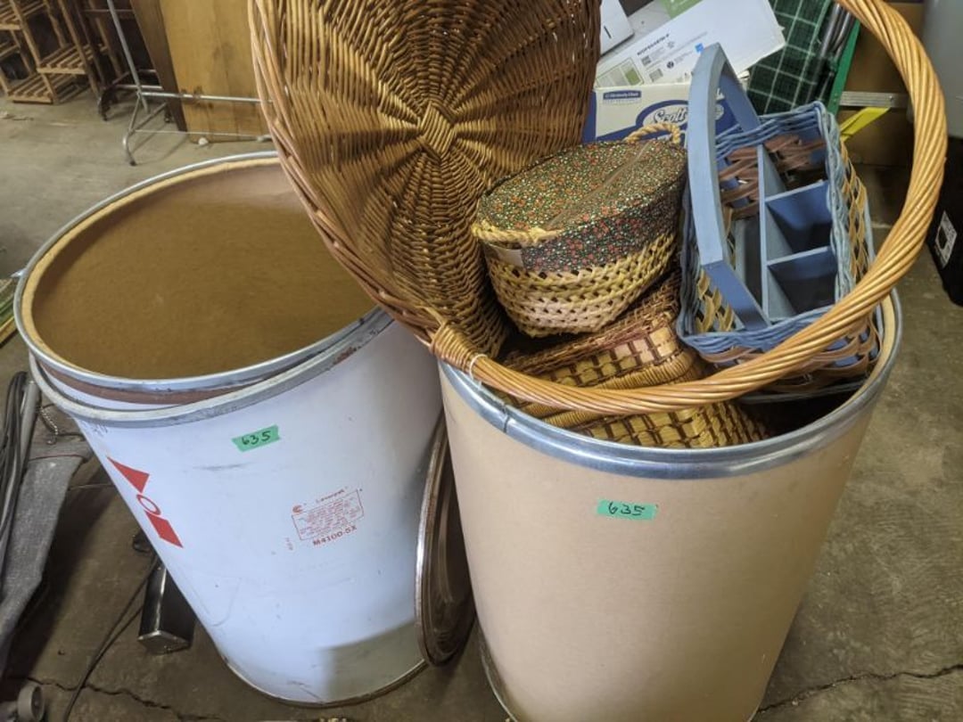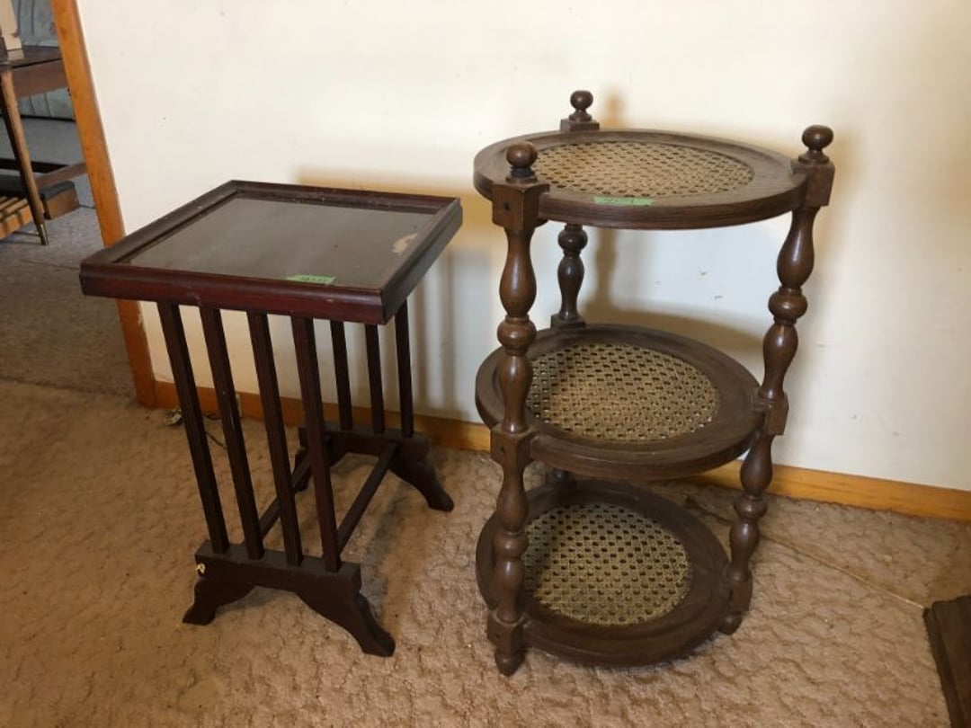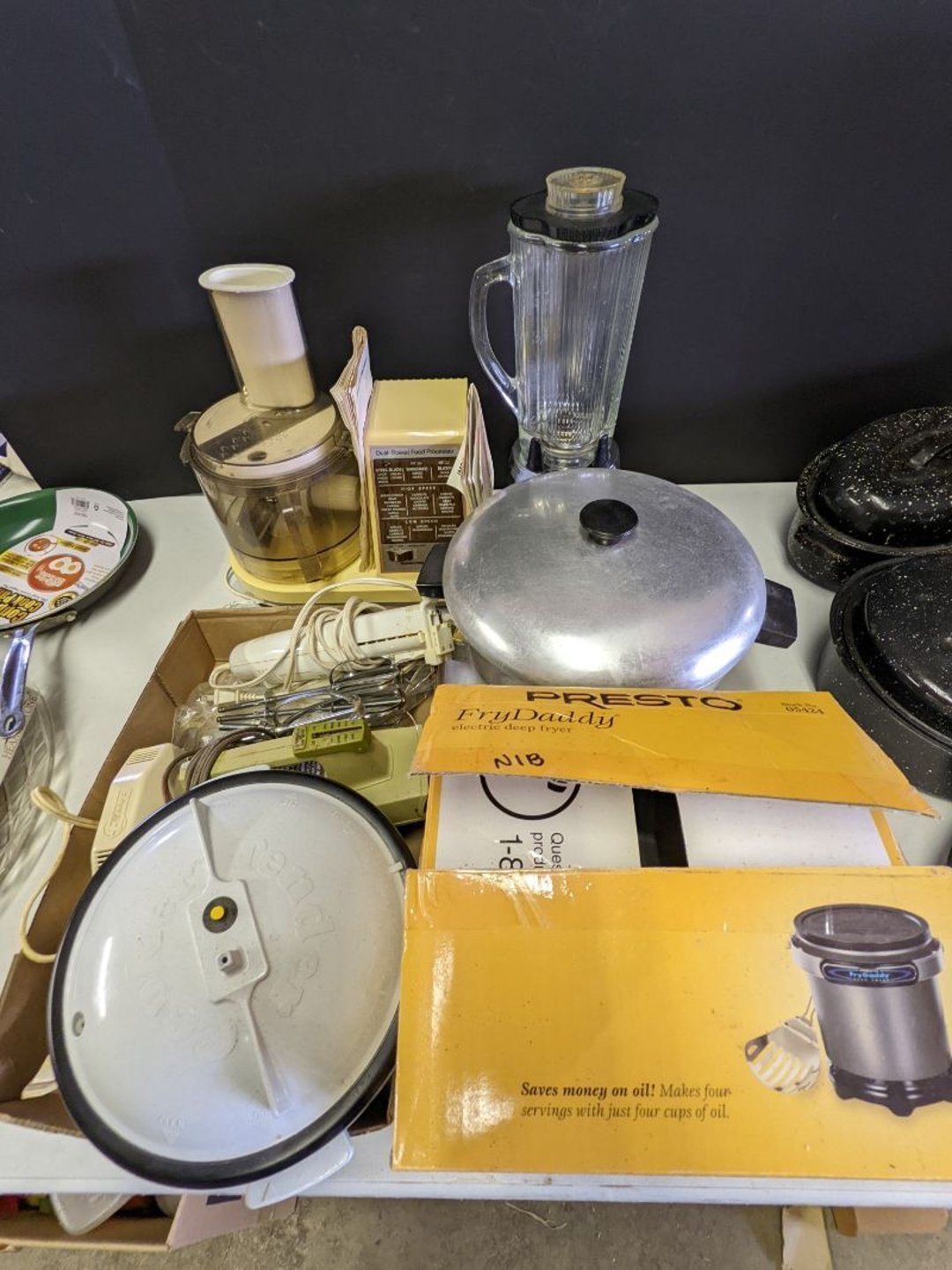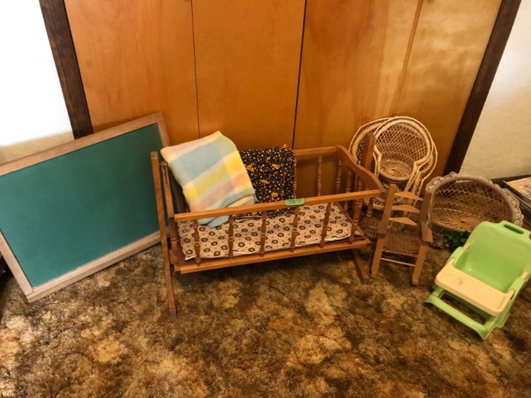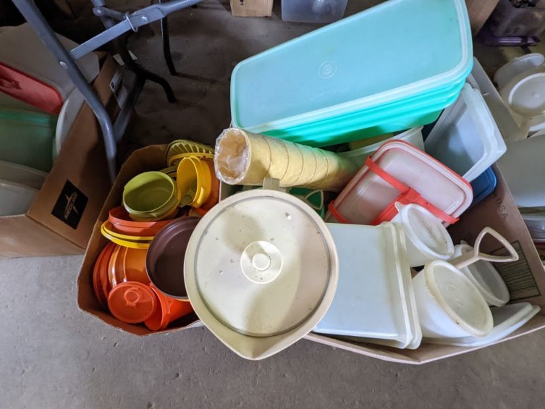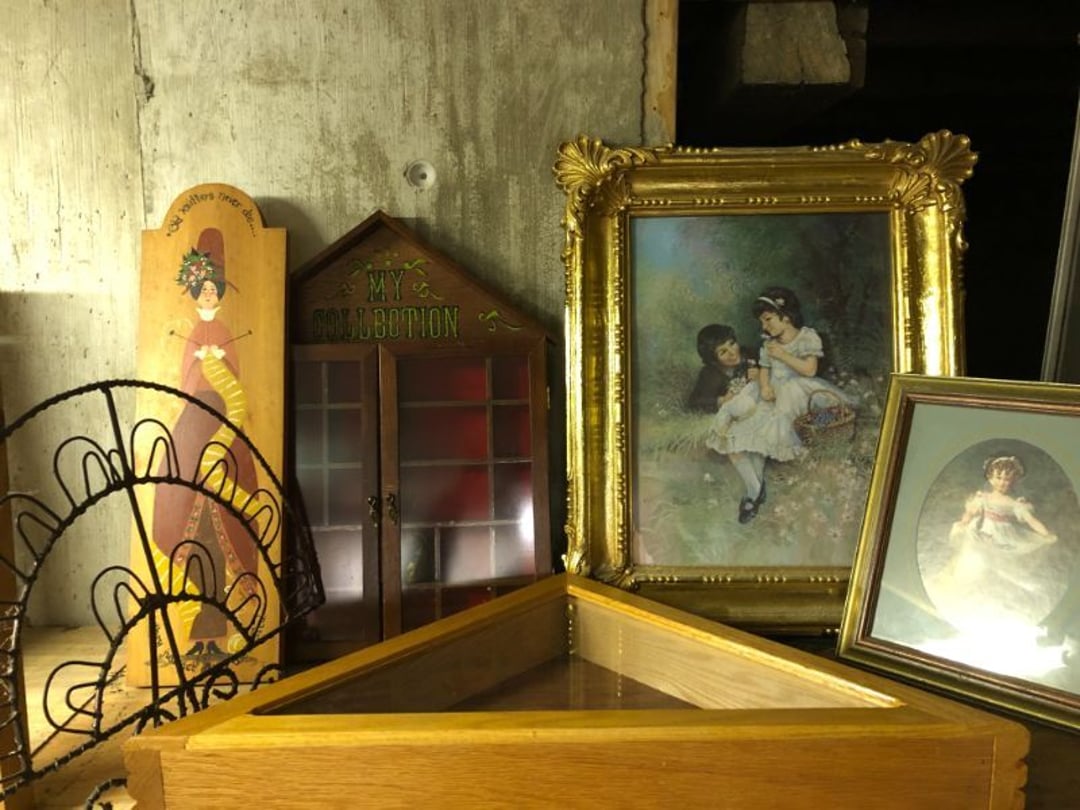 2 Griswold cast iron skillets, Salt and pepper shakers, blue Ball jars, refrigerator dishes, cookie jar, Pink rose dishes, Seyfert's pretzel jar, Jadite blossom design plate, Hull basket, Pink and cream small Hull vase, Roseville pitcher vase, Silver leaf glasses, Cast iron car, metal duck, metal horse bookend, ship bookend, Texaco pump, Glass fish, flower, vase, vintage bookends, bowl, planter, 3 piece moon and stars glassware, Fenton basket, fairy lights, misc glass, Pink, green, yellow depression dishes, Mayfair pink depression dishes, cracker jar, candy jar, 3 Mayfair pink depression bowls, Cast iron doorstop, 75 piece Homer Laughlin dogwood pattern dishes, Patton heater, small fan, Misc kitchenware, Strainer, 2 pressure cookers, Vintage Silvertone radio, 3 vintage ladies hats, 6 men's hats, Magnavox CD player and cassette recorder, cassettes, Juliette Eight Track Stereo player, 8 tracks, Sony fm/am stereo cassette recorder, cassettes, Crocks, sad iron, Vintage kitchenware, DVDs, 37 piece Homer Laughlin Georgian Eggshell dishes, Basket of glass vegetables, Vintage child's dishes, 2 pieces candle wick, 1 American sweetheart plate, 3 pieces bubbleglass, novelties and advertising, violin, 2 Furbys, Dubl Handi washboard, 2 feed bags, 2 cuckoo clocks both made in Germany, 29 pieces of misc Corelle, 95+ pieces of Lazy Daisy Corelle and flatware, 8 Pyrex mixing bowls, 2 Pyrex measuring pitchers, Copper boiler (rusty), vintage pot (chipped), American Tourister suitcase, Holiday decorations, Pots and pans with tote, Cleaning supplies, wire racks, Vintage handmade quilt, Signed handmade quilt, Comforter (damaged), 17 Life magazines from 1969 and 1971, 1969 Sears catalog, Handmade cross stitch flower quilt, State bird needlepoint quilt 96" x 68", Handmade signed quilt 108" x 84", Pyrex 3 piece casseroles, Commodore vintage computer, misc computer equipment, Bell & Howell movie projector, Quilt rack, automatic knitter, Small metal cabinet, Body power inversion table, Vitamaster 1000 XT exercise bike, Craft supplies and metal rack, Coppertone rack with sewing supplies and glassware, Coppertone rack with glassware, pop bottles, ceramic statutes, Record albums, Chalkboard, 3 mirrors, Fossil advertising sign, Metal plant stand, Craft supplies, material, doll heads, toolbox w/paints, metal rack, Weber small grill, 9' x 13' screen house, 3 wooden folding chairs, metal folding chair, 2 lawn chairs, 4 cushions, Belt buckles, knives, lighters, cuff links, hand warmers, Jewelry and jewelry boxes, Cat's eye ring, Logger, chicken wire, watering can, pavers, magnet, 2 boxes of canning jars, Whirlpool hot spa, Matmassager, Chi machine, exercise equipment, Painting supplies, small trash can, plastic baskets, Yard and garden tools, Adams Central letter jacket and t-shirt, Hammock, 2 folding lawn chairs, NIB heavy-duty shelving, Nib Proctor Silex coffee maker, rock garden, Nib Shiatsu foot massager, nib Snuggie, Staple gun, hammers, knives, screwdrivers, Champion socket set, Air pump, light bulbs, smoke alarms, hole saw set, glue gun, parts bin, 3 license plates, Kerosene heater, Patton electric heater, Magnifying lamp, bungee cords, batteries, oil can, Rubbermaid medium size cooler, Igloo polar roller 60 quart cooler, Metal shelving with glassware, stemware, vases, pots, plant stands, buckets, Metal shelving with garden supplies, small wooden ladder, bowling ball, Metal shelving with Memories of Yesterday and misc figurines, Large new extension cord, 3 aluminum treble lights, 2 Blue Mountain 2 piece rainsuits, small Comfort Zone heater, GE HEPA air purifier, Storage totes and containers misc sizes, 3 boxes of décor, Hand blown art glass, 7 pieces of Lefton china, glass basket and animals, Precious Moments collection, Precious Moments musical Ferris wheel, town buildings, books, Precious Moments train, nativity, 14 misc pieces, Brinn's musical dolls, Sleigh bells, 2 vintage bird pictures with feathers, Quilt top 74" x 90", Vintage marbles, Cast iron collection, Wicker planter, Garden statues, 2 photo screens, Vintage light-up Santa and snowman, Huge assortment of Christmas, 3 piece Roseville, Vases and decorator pieces, 18" green plate, glass decorator pieces, 46" x 36" drop leaf table with 2 chairs, Glassware, Americana Star stainless steel flatware service for 12 with chest, Oneida Wm A Rogers AI Plus flatware, 3 pieces silver plated items, Wm Rogers silver tea set, casserole, cutlery, cake knife, Silver plated assortment, 18" tall metal patio table, 5 garden statues, Large sitting angel cement statue, 4 plant stands, Vintage large green glass vase, large artificial rose, Heavy metal stand with glass shelves, wooden cabinet with contents, Misc wall items, Vintage metal serving cart, Microwave and cart, wall décor, Advertising yardsticks, grabber, dusters, gloves, Toshiba 19" television with remote, 6" pasta machine, metal kitchen utensils, warming tray, Office supplies, Kitchen table with 1 leaf and 6 chairs with wheels, Rival electric slicer, Primo water dispenser, Wm Rogers "Harvest" pitcher, Leonard silver plated pitcher, misc silver pieces, Heavy vintage glass pitcher, spongeware bowl, 3 crock bowls, coffee urn, 7 "The Young and the Restless" collector plates, record of "Nadia's Theme", Leonard silver plated pitcher, 2 silver plated cups, William Rogers candlesticks, Fire King baking dishes, 2 casseroles, Pyrex casserole, Misc Corningware and Fire King, 2 boxes of 25 Boopie stemware, Wooden bull, F B Rogers Silver Company tea set - Sugar and creamer, footed waste, Sharp Carousel microwave, Glitter lava-type lamp, dancing clown music box, 20+ pieces of mushroom design kitchen set, 2 boxes of flatware, 1 boxes of knives, sharpening steel, Vintage elephant cookie jar, 8 pieces Lefton china, 12 pieces Pink Rose Lefton china, McCoy cookie jar, 4 boxes of kitchen utensils, Joseph Rogers Jr & Sons drum with case and drum sticks, Bissel Powerforce bagless vacuum, Vintage Shirley Temple "First Vacation" doll, Vin