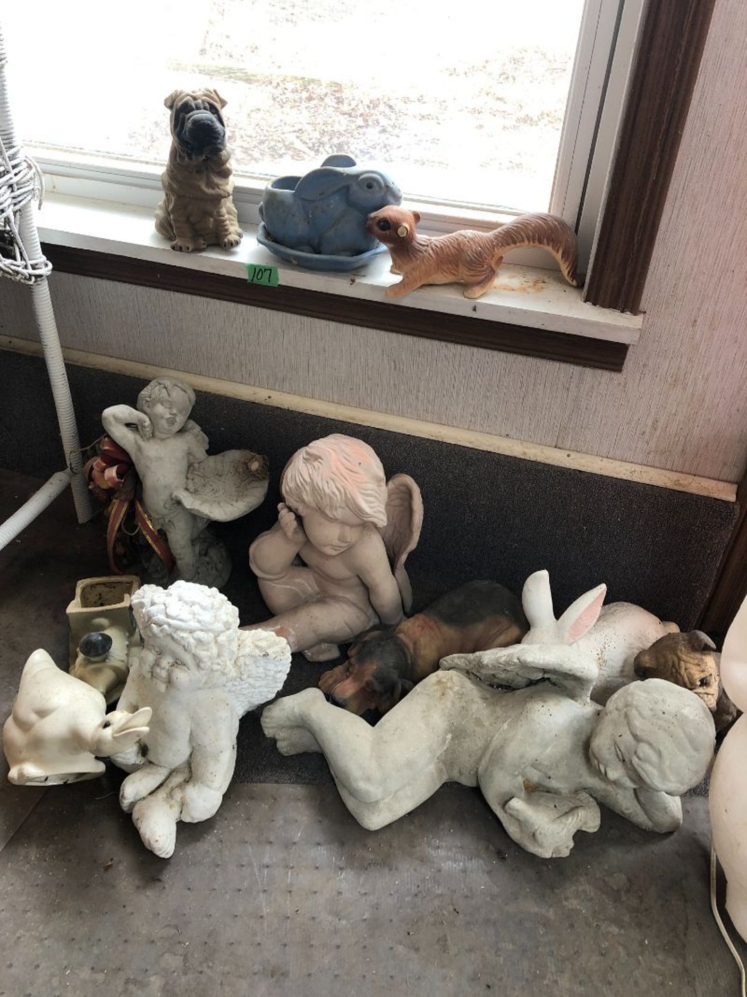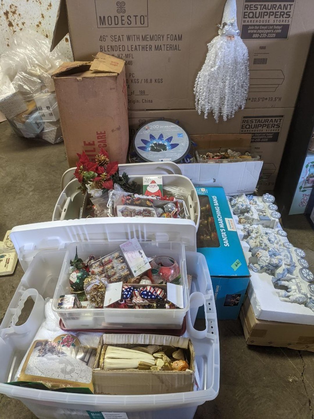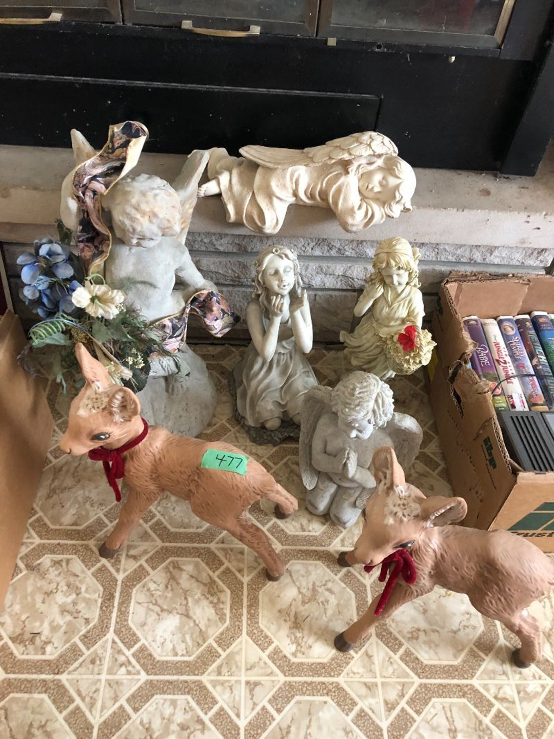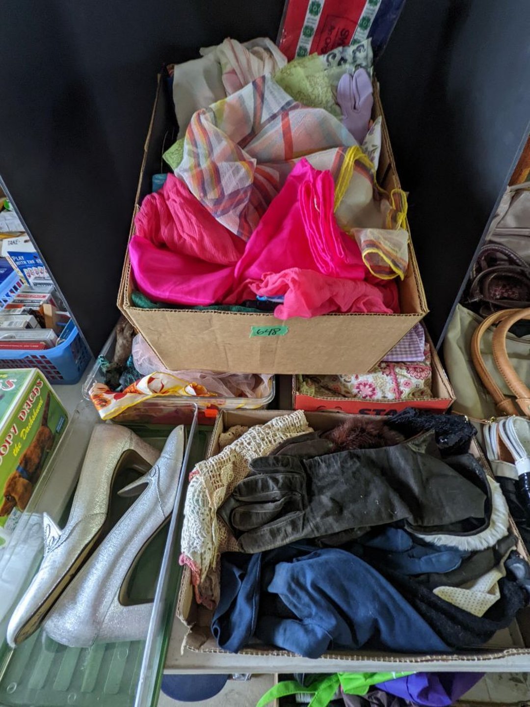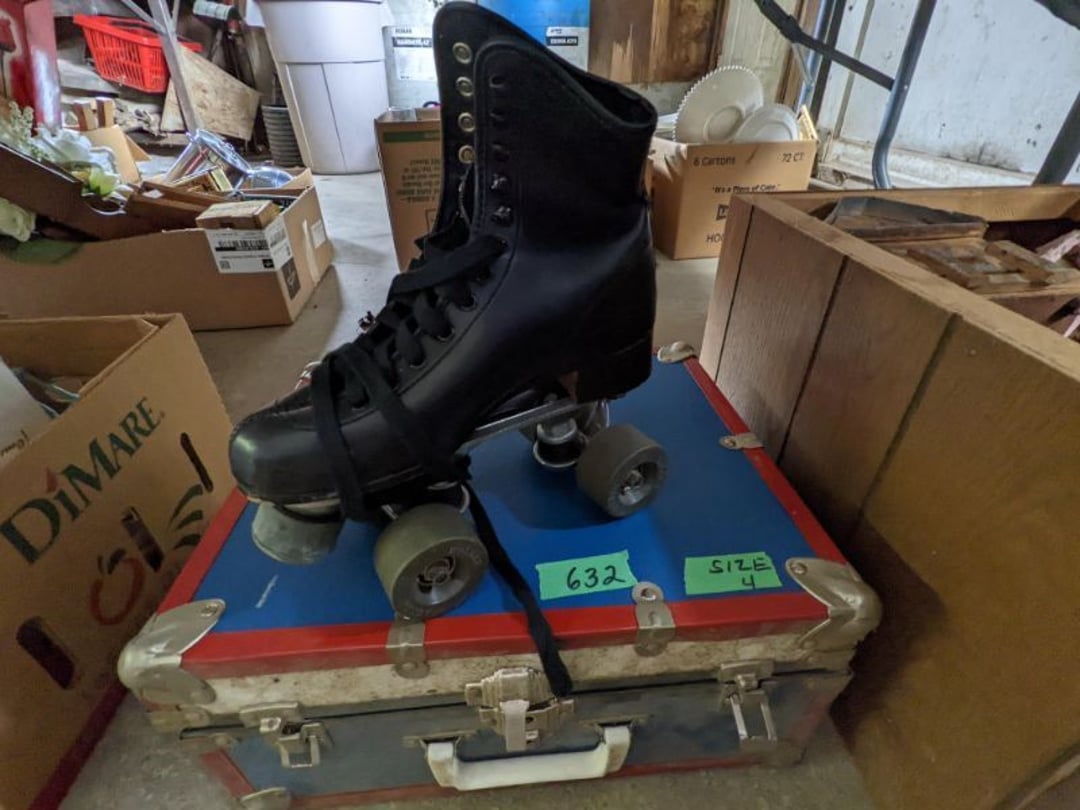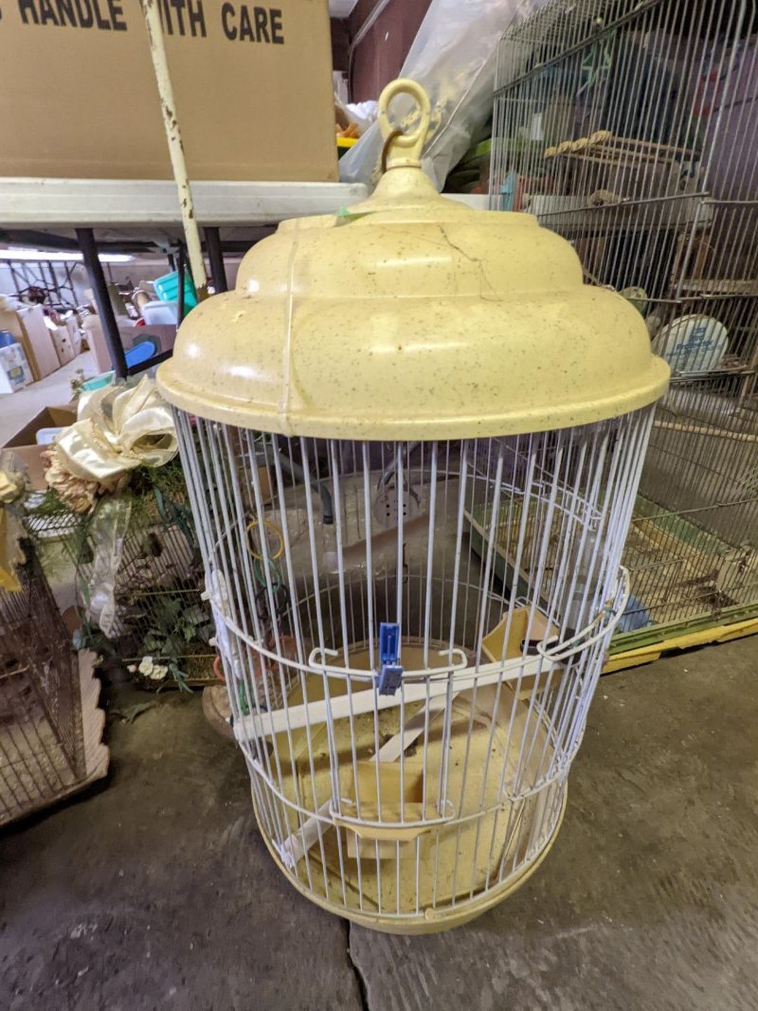2 Griswold cast iron skillets, Salt and pepper shakers, blue Ball jars, refrigerator dishes, cookie jar, Pink rose dishes, Seyfert's pretzel jar, Jadite blossom design plate, Hull basket, Pink and cream small Hull vase, Roseville pitcher vase, Silver leaf glasses, Cast iron car, metal duck, metal horse bookend, ship bookend, Texaco pump, Glass fish, flower, vase, vintage bookends, bowl, planter, 3 piece moon and stars glassware, Fenton basket, fairy lights, misc glass, Pink, green, yellow depression dishes, Mayfair pink depression dishes, cracker jar, candy jar, 3 Mayfair pink depression bowls, Cast iron doorstop, 75 piece Homer Laughlin dogwood pattern dishes, Patton heater, small fan, Misc kitchenware, Strainer, 2 pressure cookers, Vintage Silvertone radio, 3 vintage ladies hats, 6 men's hats, Magnavox CD player and cassette recorder, cassettes, Juliette Eight Track Stereo player, 8 tracks, Sony fm/am stereo cassette recorder, cassettes, Crocks, sad iron, Vintage kitchenware, DVDs, 37 piece Homer Laughlin Georgian Eggshell dishes, Basket of glass vegetables, Vintage child's dishes, 2 pieces candle wick, 1 American sweetheart plate, 3 pieces bubbleglass, novelties and advertising, violin, 2 Furbys, Dubl Handi washboard, 2 feed bags, 2 cuckoo clocks both made in Germany, 29 pieces of misc Corelle, 95+ pieces of Lazy Daisy Corelle and flatware, 8 Pyrex mixing bowls, 2 Pyrex measuring pitchers, Copper boiler (rusty), vintage pot (chipped), American Tourister suitcase, Holiday decorations, Pots and pans with tote, Cleaning supplies, wire racks, Vintage handmade quilt, Signed handmade quilt, Comforter (damaged), 17 Life magazines from 1969 and 1971, 1969 Sears catalog, Handmade cross stitch flower quilt, State bird needlepoint quilt 96" x 68", Handmade signed quilt 108" x 84", Pyrex 3 piece casseroles, Commodore vintage computer, misc computer equipment, Bell & Howell movie projector, Quilt rack, automatic knitter, Small metal cabinet, Body power inversion table, Vitamaster 1000 XT exercise bike, Craft supplies and metal rack, Coppertone rack with sewing supplies and glassware, Coppertone rack with glassware, pop bottles, ceramic statutes, Record albums, Chalkboard, 3 mirrors, Fossil advertising sign, Metal plant stand, Craft supplies, material, doll heads, toolbox w/paints, metal rack, Weber small grill, 9' x 13' screen house, 3 wooden folding chairs, metal folding chair, 2 lawn chairs, 4 cushions, Belt buckles, knives, lighters, cuff links, hand warmers, Jewelry and jewelry boxes, Cat's eye ring, Logger, chicken wire, watering can, pavers, magnet, 2 boxes of canning jars, Whirlpool hot spa, Matmassager, Chi machine, exercise equipment, Painting supplies, small trash can, plastic baskets, Yard and garden tools, Adams Central letter jacket and t-shirt, Hammock, 2 folding lawn chairs, NIB heavy-duty shelving, Nib Proctor Silex coffee maker, rock garden, Nib Shiatsu foot massager, nib Snuggie, Staple gun, hammers, knives, screwdrivers, Champion socket set, Air pump, light bulbs, smoke alarms, hole saw set, glue gun, parts bin, 3 license plates, Kerosene heater, Patton electric heater, Magnifying lamp, bungee cords, batteries, oil can, Rubbermaid medium size cooler, Igloo polar roller 60 quart cooler, Metal shelving with glassware, stemware, vases, pots, plant stands, buckets, Metal shelving with garden supplies, small wooden ladder, bowling ball, Metal shelving with Memories of Yesterday and misc figurines, Large new extension cord, 3 aluminum treble lights, 2 Blue Mountain 2 piece rainsuits, small Comfort Zone heater, GE HEPA air purifier, Storage totes and containers misc sizes, 3 boxes of décor, Hand blown art glass, 7 pieces of Lefton china, glass basket and animals, Precious Moments collection, Precious Moments musical Ferris wheel, town buildings, books, Precious Moments train, nativity, 14 misc pieces, Brinn's musical dolls, Sleigh bells, 2 vintage bird pictures with feathers, Quilt top 74" x 90", Vintage marbles, Cast iron collection, Wicker planter, Garden statues, 2 photo screens, Vintage light-up Santa and snowman, Huge assortment of Christmas, 3 piece Roseville, Vases and decorator pieces, 18" green plate, glass decorator pieces, 46" x 36" drop leaf table with 2 chairs, Glassware, Americana Star stainless steel flatware service for 12 with chest, Oneida Wm A Rogers AI Plus flatware, 3 pieces silver plated items, Wm Rogers silver tea set, casserole, cutlery, cake knife, Silver plated assortment, 18" tall metal patio table, 5 garden statues, Large sitting angel cement statue, 4 plant stands, Vintage large green glass vase, large artificial rose, Heavy metal stand with glass shelves, wooden cabinet with contents, Misc wall items, Vintage metal serving cart, Microwave and cart, wall décor, Advertising yardsticks, grabber, dusters, gloves, Toshiba 19" television with remote, 6" pasta machine, metal kitchen utensils, warming tray, Office supplies, Kitchen table with 1 leaf and 6 chairs with wheels, Rival electric slicer, Primo water dispenser, Wm Rogers "Harvest" pitcher, Leonard silver plated pitcher, misc silver pieces, Heavy vintage glass pitcher, spongeware bowl, 3 crock bowls, coffee urn, 7 "The Young and the Restless" collector plates, record of "Nadia's Theme", Leonard silver plated pitcher, 2 silver plated cups, William Rogers candlesticks, Fire King baking dishes, 2 casseroles, Pyrex casserole, Misc Corningware and Fire King, 2 boxes of 25 Boopie stemware, Wooden bull, F B Rogers Silver Company tea set - Sugar and creamer, footed waste, Sharp Carousel microwave, Glitter lava-type lamp, dancing clown music box, 20+ pieces of mushroom design kitchen set, 2 boxes of flatware, 1 boxes of knives, sharpening steel, Vintage elephant cookie jar, 8 pieces Lefton china, 12 pieces Pink Rose Lefton china, McCoy cookie jar, 4 boxes of kitchen utensils, Joseph Rogers Jr & Sons drum with case and drum sticks, Bissel Powerforce bagless vacuum, Vintage Shirley Temple "First Vacation" doll, Vin