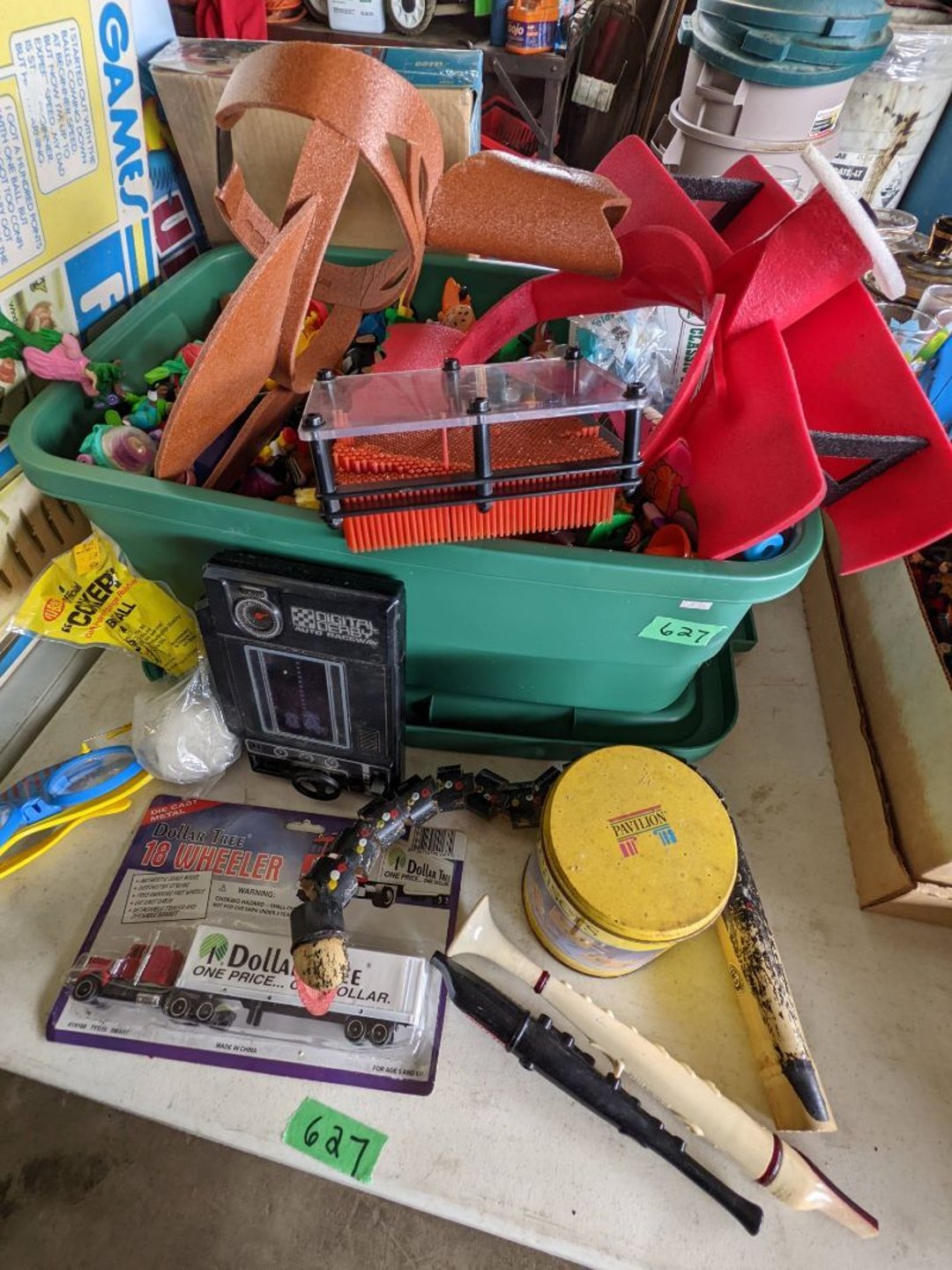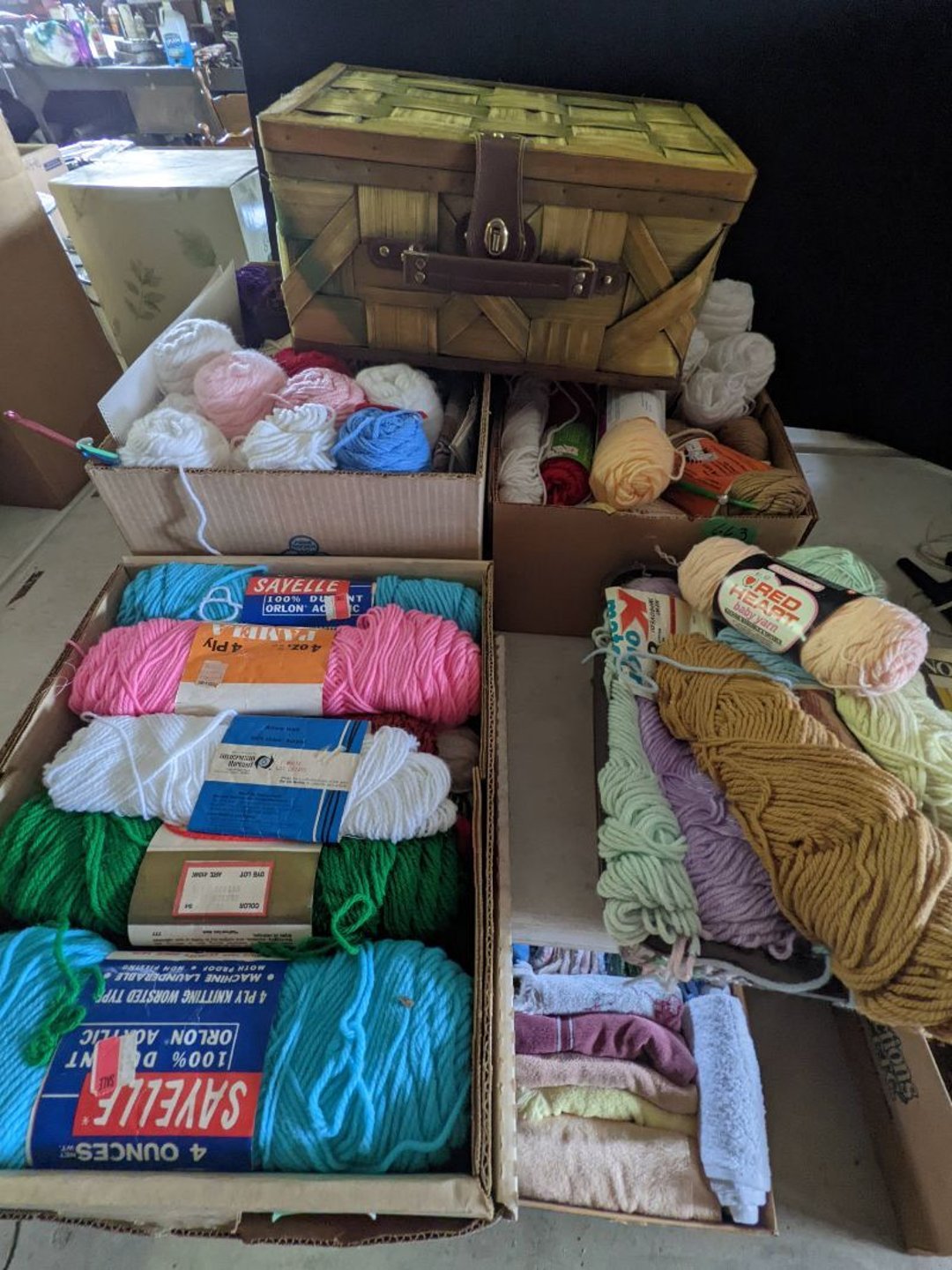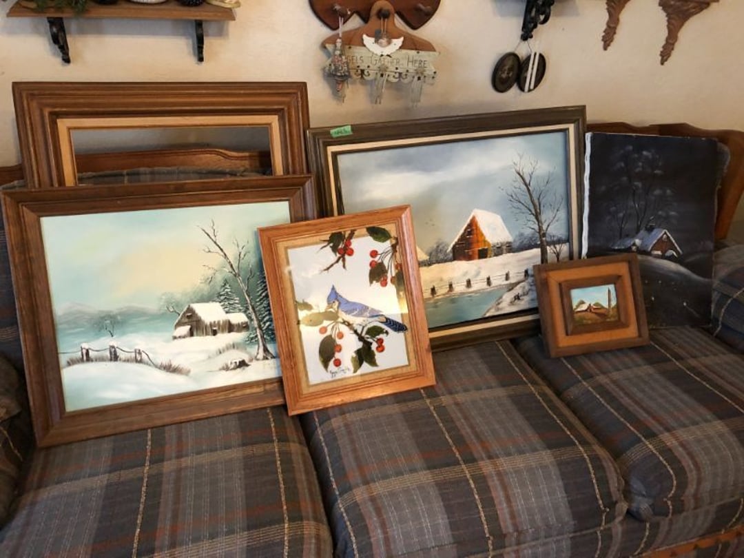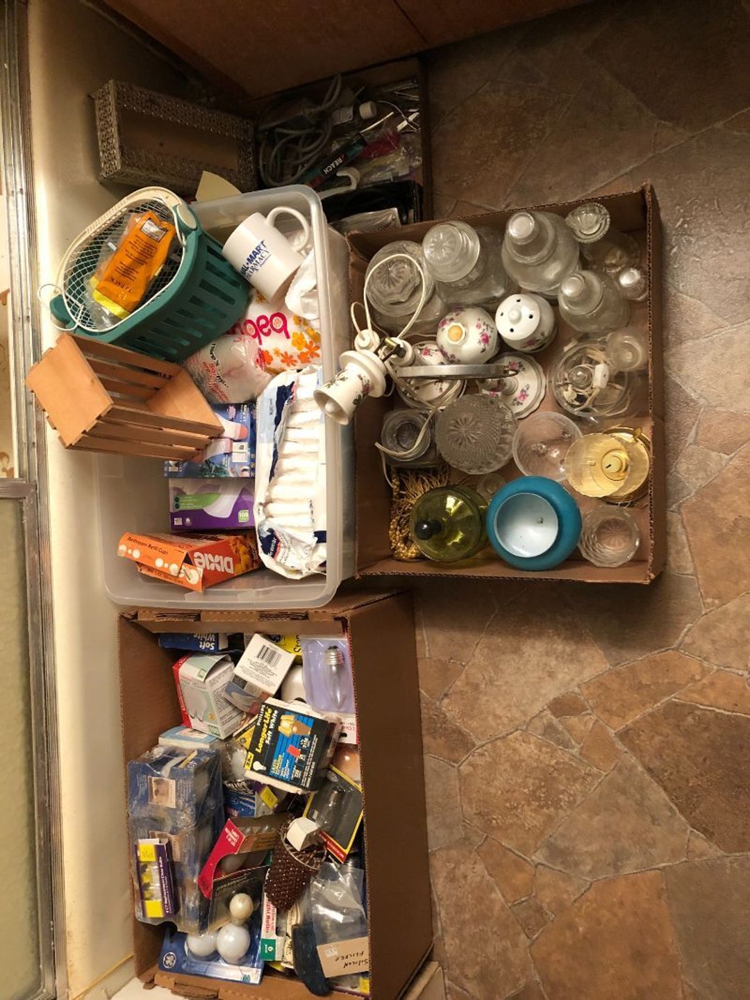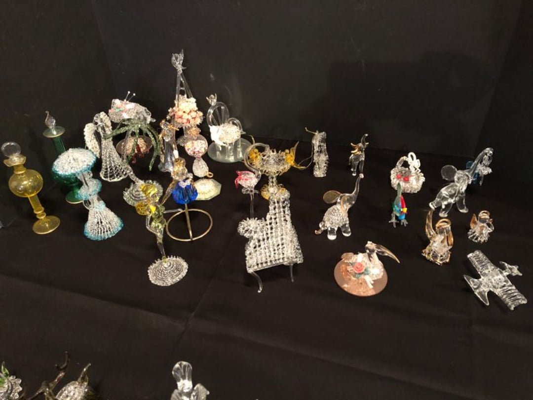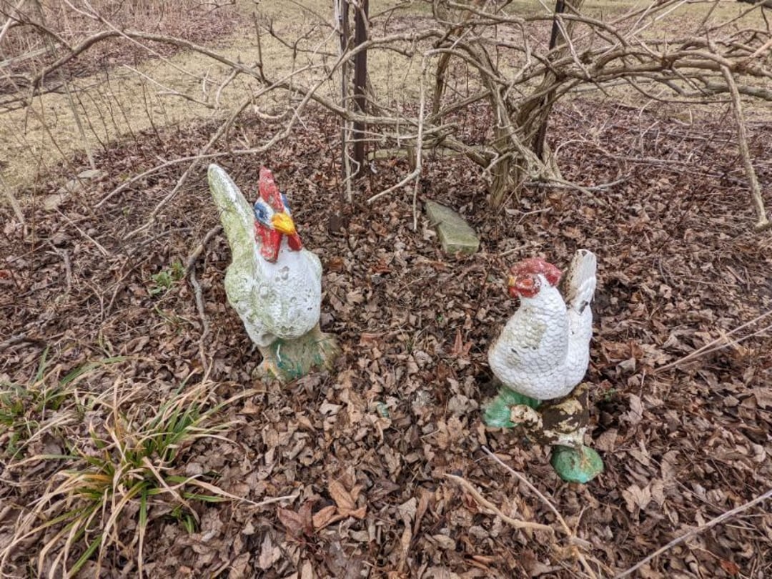 2 Griswold cast iron skillets, Salt and pepper shakers, blue Ball jars, refrigerator dishes, cookie jar, Pink rose dishes, Seyfert's pretzel jar, Jadite blossom design plate, Hull basket, Pink and cream small Hull vase, Roseville pitcher vase, Silver leaf glasses, Cast iron car, metal duck, metal horse bookend, ship bookend, Texaco pump, Glass fish, flower, vase, vintage bookends, bowl, planter, 3 piece moon and stars glassware, Fenton basket, fairy lights, misc glass, Pink, green, yellow depression dishes, Mayfair pink depression dishes, cracker jar, candy jar, 3 Mayfair pink depression bowls, Cast iron doorstop, 75 piece Homer Laughlin dogwood pattern dishes, Patton heater, small fan, Misc kitchenware, Strainer, 2 pressure cookers, Vintage Silvertone radio, 3 vintage ladies hats, 6 men's hats, Magnavox CD player and cassette recorder, cassettes, Juliette Eight Track Stereo player, 8 tracks, Sony fm/am stereo cassette recorder, cassettes, Crocks, sad iron, Vintage kitchenware, DVDs, 37 piece Homer Laughlin Georgian Eggshell dishes, Basket of glass vegetables, Vintage child's dishes, 2 pieces candle wick, 1 American sweetheart plate, 3 pieces bubbleglass, novelties and advertising, violin, 2 Furbys, Dubl Handi washboard, 2 feed bags, 2 cuckoo clocks both made in Germany, 29 pieces of misc Corelle, 95+ pieces of Lazy Daisy Corelle and flatware, 8 Pyrex mixing bowls, 2 Pyrex measuring pitchers, Copper boiler (rusty), vintage pot (chipped), American Tourister suitcase, Holiday decorations, Pots and pans with tote, Cleaning supplies, wire racks, Vintage handmade quilt, Signed handmade quilt, Comforter (damaged), 17 Life magazines from 1969 and 1971, 1969 Sears catalog, Handmade cross stitch flower quilt, State bird needlepoint quilt 96" x 68", Handmade signed quilt 108" x 84", Pyrex 3 piece casseroles, Commodore vintage computer, misc computer equipment, Bell & Howell movie projector, Quilt rack, automatic knitter, Small metal cabinet, Body power inversion table, Vitamaster 1000 XT exercise bike, Craft supplies and metal rack, Coppertone rack with sewing supplies and glassware, Coppertone rack with glassware, pop bottles, ceramic statutes, Record albums, Chalkboard, 3 mirrors, Fossil advertising sign, Metal plant stand, Craft supplies, material, doll heads, toolbox w/paints, metal rack, Weber small grill, 9' x 13' screen house, 3 wooden folding chairs, metal folding chair, 2 lawn chairs, 4 cushions, Belt buckles, knives, lighters, cuff links, hand warmers, Jewelry and jewelry boxes, Cat's eye ring, Logger, chicken wire, watering can, pavers, magnet, 2 boxes of canning jars, Whirlpool hot spa, Matmassager, Chi machine, exercise equipment, Painting supplies, small trash can, plastic baskets, Yard and garden tools, Adams Central letter jacket and t-shirt, Hammock, 2 folding lawn chairs, NIB heavy-duty shelving, Nib Proctor Silex coffee maker, rock garden, Nib Shiatsu foot massager, nib Snuggie, Staple gun, hammers, knives, screwdrivers, Champion socket set, Air pump, light bulbs, smoke alarms, hole saw set, glue gun, parts bin, 3 license plates, Kerosene heater, Patton electric heater, Magnifying lamp, bungee cords, batteries, oil can, Rubbermaid medium size cooler, Igloo polar roller 60 quart cooler, Metal shelving with glassware, stemware, vases, pots, plant stands, buckets, Metal shelving with garden supplies, small wooden ladder, bowling ball, Metal shelving with Memories of Yesterday and misc figurines, Large new extension cord, 3 aluminum treble lights, 2 Blue Mountain 2 piece rainsuits, small Comfort Zone heater, GE HEPA air purifier, Storage totes and containers misc sizes, 3 boxes of décor, Hand blown art glass, 7 pieces of Lefton china, glass basket and animals, Precious Moments collection, Precious Moments musical Ferris wheel, town buildings, books, Precious Moments train, nativity, 14 misc pieces, Brinn's musical dolls, Sleigh bells, 2 vintage bird pictures with feathers, Quilt top 74" x 90", Vintage marbles, Cast iron collection, Wicker planter, Garden statues, 2 photo screens, Vintage light-up Santa and snowman, Huge assortment of Christmas, 3 piece Roseville, Vases and decorator pieces, 18" green plate, glass decorator pieces, 46" x 36" drop leaf table with 2 chairs, Glassware, Americana Star stainless steel flatware service for 12 with chest, Oneida Wm A Rogers AI Plus flatware, 3 pieces silver plated items, Wm Rogers silver tea set, casserole, cutlery, cake knife, Silver plated assortment, 18" tall metal patio table, 5 garden statues, Large sitting angel cement statue, 4 plant stands, Vintage large green glass vase, large artificial rose, Heavy metal stand with glass shelves, wooden cabinet with contents, Misc wall items, Vintage metal serving cart, Microwave and cart, wall décor, Advertising yardsticks, grabber, dusters, gloves, Toshiba 19" television with remote, 6" pasta machine, metal kitchen utensils, warming tray, Office supplies, Kitchen table with 1 leaf and 6 chairs with wheels, Rival electric slicer, Primo water dispenser, Wm Rogers "Harvest" pitcher, Leonard silver plated pitcher, misc silver pieces, Heavy vintage glass pitcher, spongeware bowl, 3 crock bowls, coffee urn, 7 "The Young and the Restless" collector plates, record of "Nadia's Theme", Leonard silver plated pitcher, 2 silver plated cups, William Rogers candlesticks, Fire King baking dishes, 2 casseroles, Pyrex casserole, Misc Corningware and Fire King, 2 boxes of 25 Boopie stemware, Wooden bull, F B Rogers Silver Company tea set - Sugar and creamer, footed waste, Sharp Carousel microwave, Glitter lava-type lamp, dancing clown music box, 20+ pieces of mushroom design kitchen set, 2 boxes of flatware, 1 boxes of knives, sharpening steel, Vintage elephant cookie jar, 8 pieces Lefton china, 12 pieces Pink Rose Lefton china, McCoy cookie jar, 4 boxes of kitchen utensils, Joseph Rogers Jr & Sons drum with case and drum sticks, Bissel Powerforce bagless vacuum, Vintage Shirley Temple "First Vacation" doll, Vin