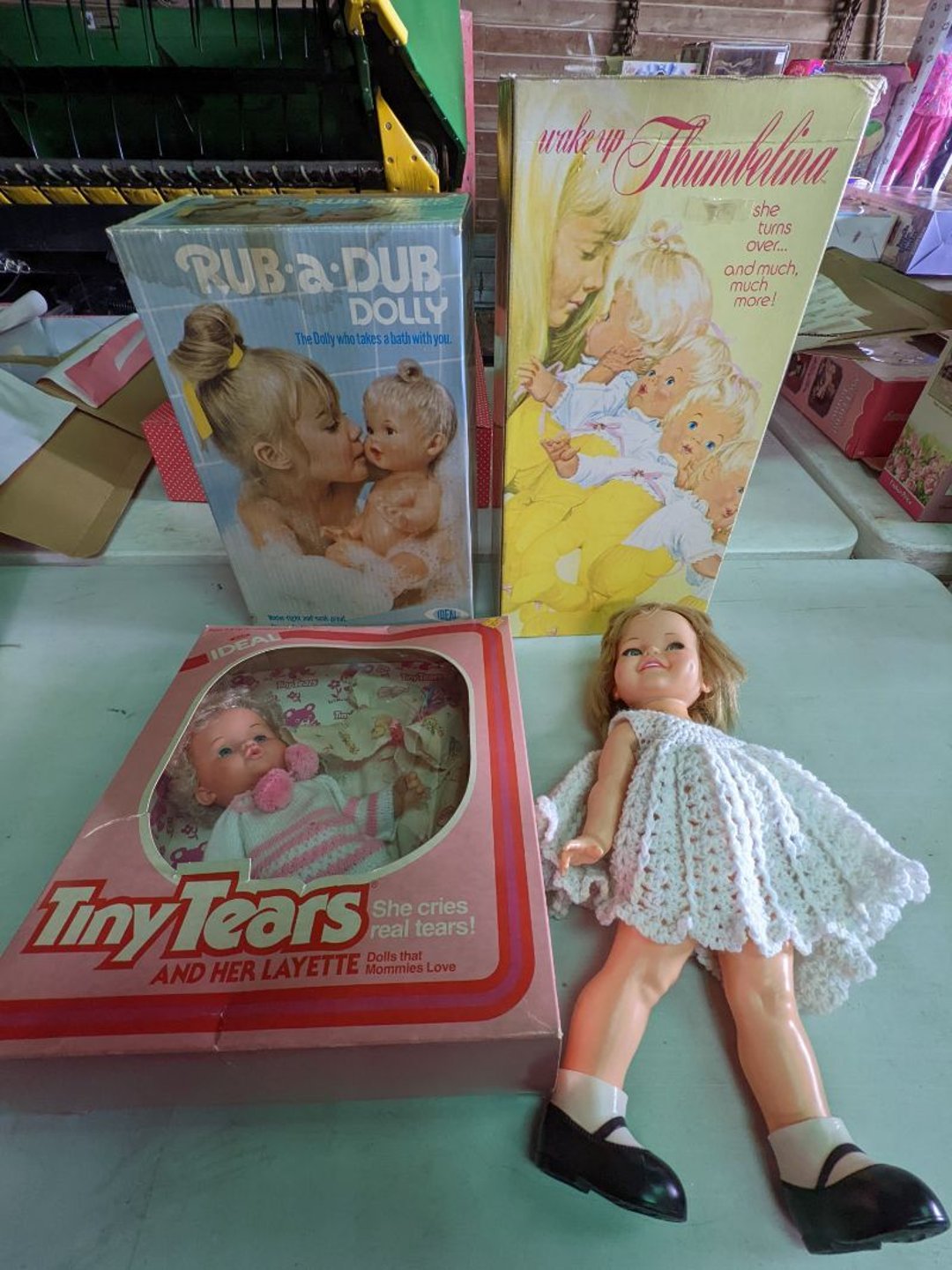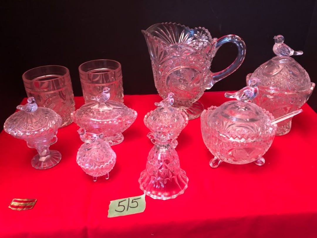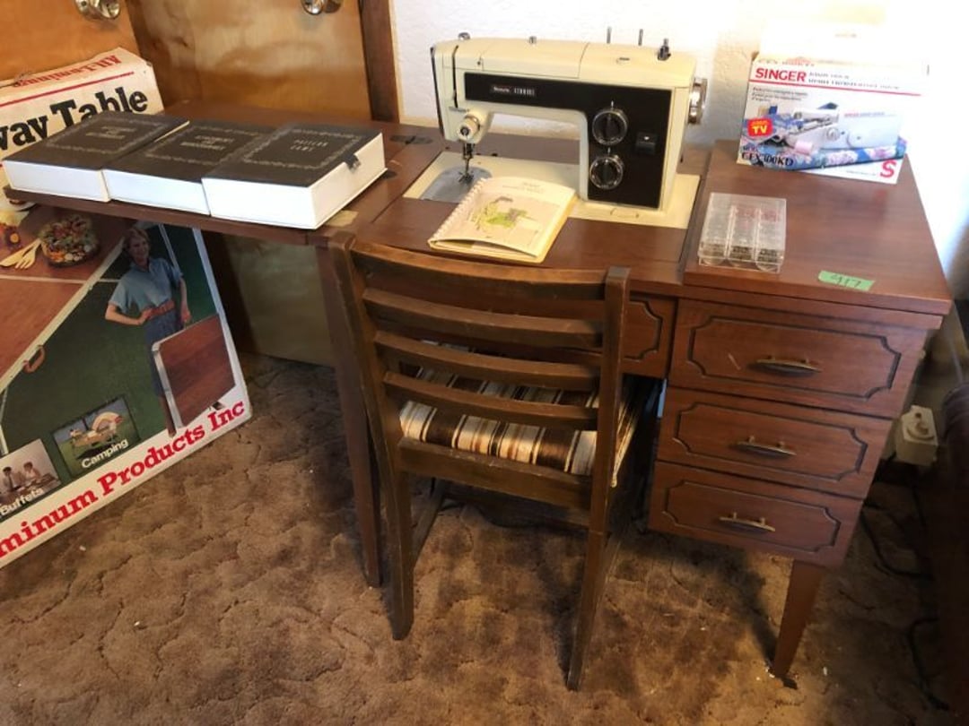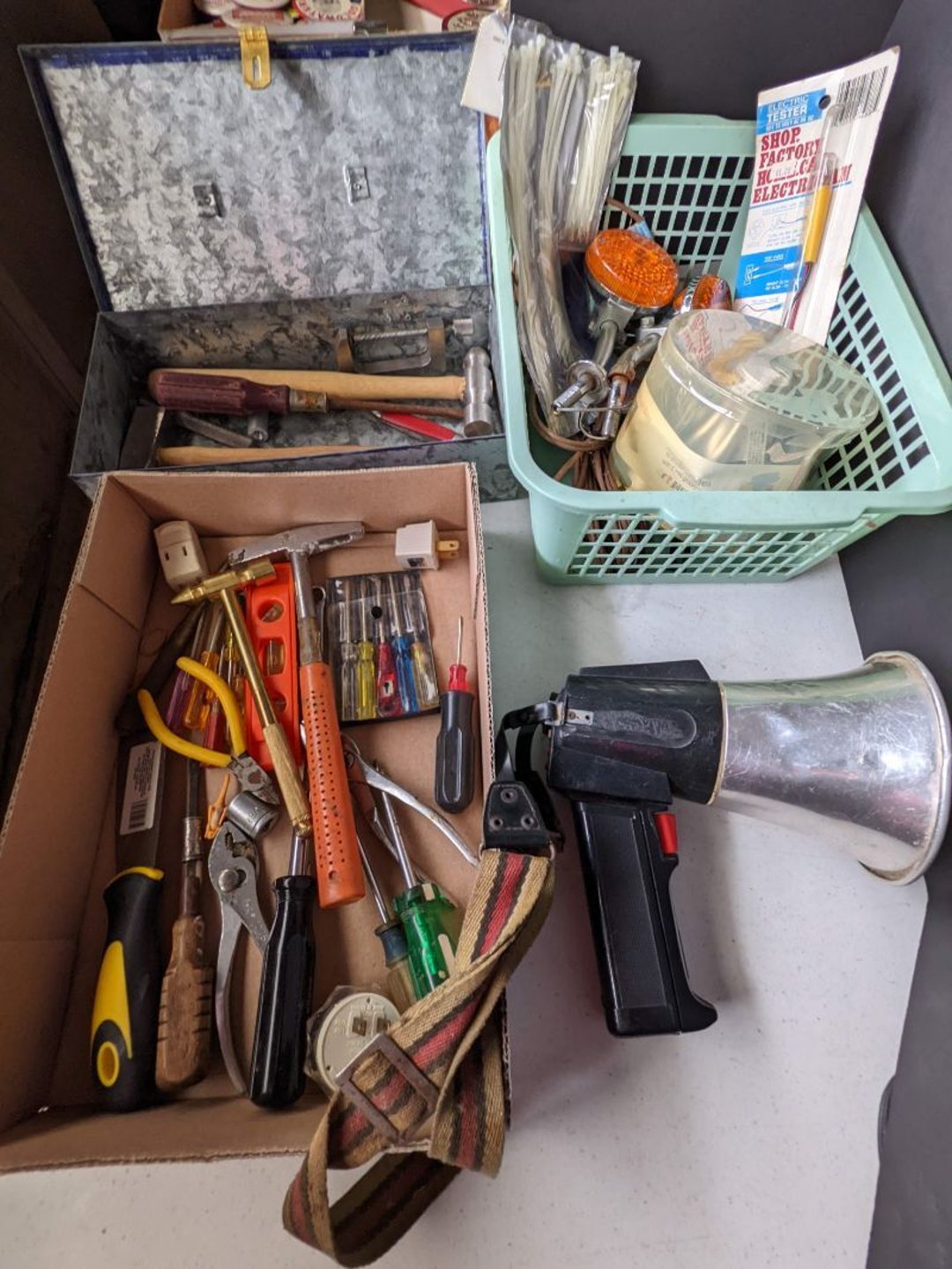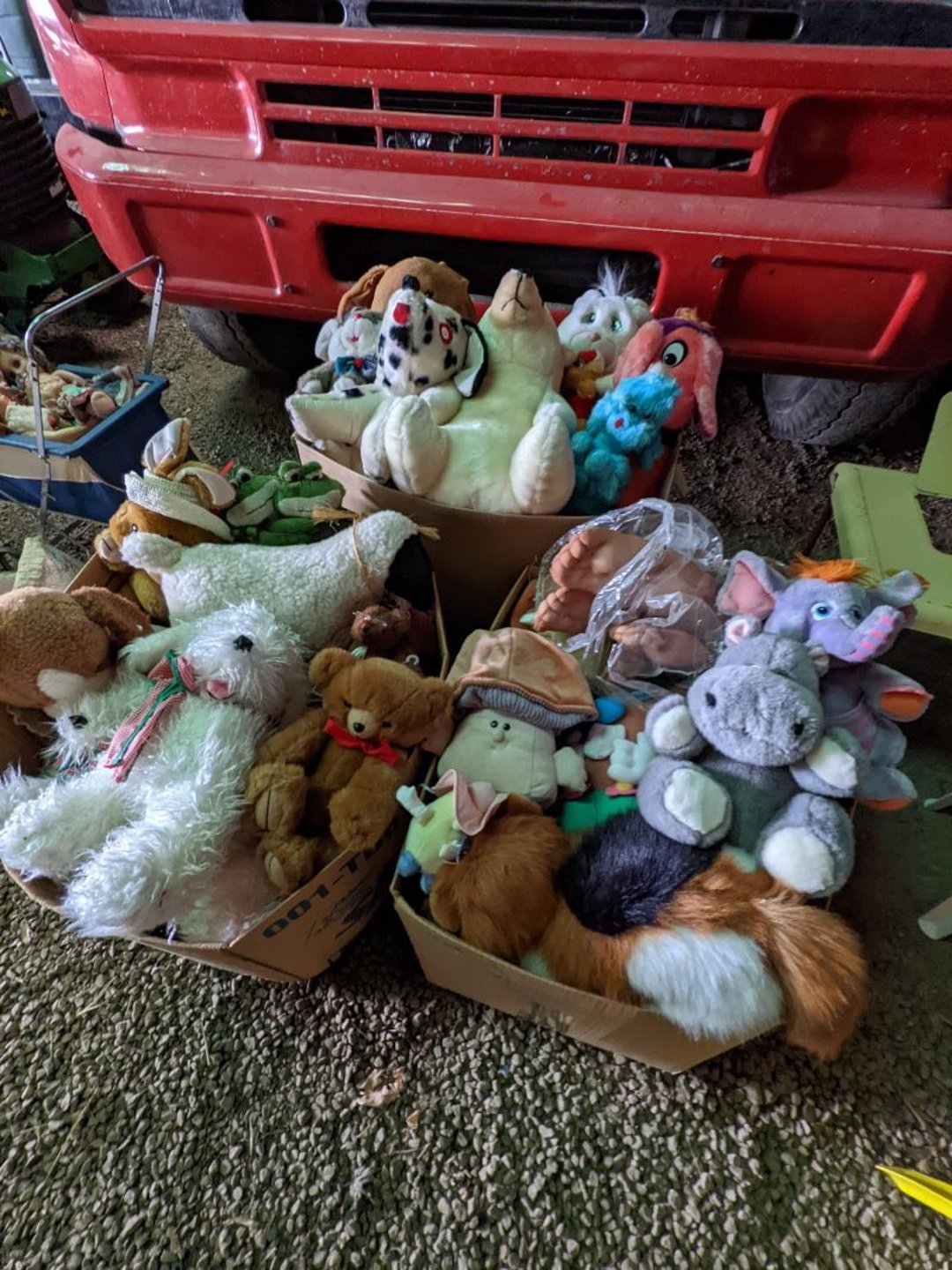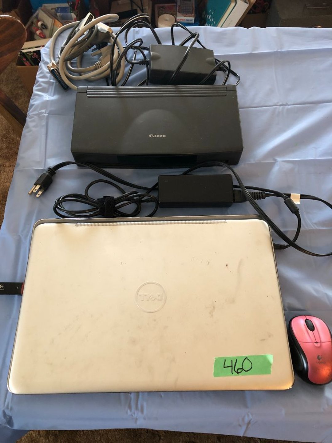 2 Griswold cast iron skillets, Salt and pepper shakers, blue Ball jars, refrigerator dishes, cookie jar, Pink rose dishes, Seyfert's pretzel jar, Jadite blossom design plate, Hull basket, Pink and cream small Hull vase, Roseville pitcher vase, Silver leaf glasses, Cast iron car, metal duck, metal horse bookend, ship bookend, Texaco pump, Glass fish, flower, vase, vintage bookends, bowl, planter, 3 piece moon and stars glassware, Fenton basket, fairy lights, misc glass, Pink, green, yellow depression dishes, Mayfair pink depression dishes, cracker jar, candy jar, 3 Mayfair pink depression bowls, Cast iron doorstop, 75 piece Homer Laughlin dogwood pattern dishes, Patton heater, small fan, Misc kitchenware, Strainer, 2 pressure cookers, Vintage Silvertone radio, 3 vintage ladies hats, 6 men's hats, Magnavox CD player and cassette recorder, cassettes, Juliette Eight Track Stereo player, 8 tracks, Sony fm/am stereo cassette recorder, cassettes, Crocks, sad iron, Vintage kitchenware, DVDs, 37 piece Homer Laughlin Georgian Eggshell dishes, Basket of glass vegetables, Vintage child's dishes, 2 pieces candle wick, 1 American sweetheart plate, 3 pieces bubbleglass, novelties and advertising, violin, 2 Furbys, Dubl Handi washboard, 2 feed bags, 2 cuckoo clocks both made in Germany, 29 pieces of misc Corelle, 95+ pieces of Lazy Daisy Corelle and flatware, 8 Pyrex mixing bowls, 2 Pyrex measuring pitchers, Copper boiler (rusty), vintage pot (chipped), American Tourister suitcase, Holiday decorations, Pots and pans with tote, Cleaning supplies, wire racks, Vintage handmade quilt, Signed handmade quilt, Comforter (damaged), 17 Life magazines from 1969 and 1971, 1969 Sears catalog, Handmade cross stitch flower quilt, State bird needlepoint quilt 96" x 68", Handmade signed quilt 108" x 84", Pyrex 3 piece casseroles, Commodore vintage computer, misc computer equipment, Bell & Howell movie projector, Quilt rack, automatic knitter, Small metal cabinet, Body power inversion table, Vitamaster 1000 XT exercise bike, Craft supplies and metal rack, Coppertone rack with sewing supplies and glassware, Coppertone rack with glassware, pop bottles, ceramic statutes, Record albums, Chalkboard, 3 mirrors, Fossil advertising sign, Metal plant stand, Craft supplies, material, doll heads, toolbox w/paints, metal rack, Weber small grill, 9' x 13' screen house, 3 wooden folding chairs, metal folding chair, 2 lawn chairs, 4 cushions, Belt buckles, knives, lighters, cuff links, hand warmers, Jewelry and jewelry boxes, Cat's eye ring, Logger, chicken wire, watering can, pavers, magnet, 2 boxes of canning jars, Whirlpool hot spa, Matmassager, Chi machine, exercise equipment, Painting supplies, small trash can, plastic baskets, Yard and garden tools, Adams Central letter jacket and t-shirt, Hammock, 2 folding lawn chairs, NIB heavy-duty shelving, Nib Proctor Silex coffee maker, rock garden, Nib Shiatsu foot massager, nib Snuggie, Staple gun, hammers, knives, screwdrivers, Champion socket set, Air pump, light bulbs, smoke alarms, hole saw set, glue gun, parts bin, 3 license plates, Kerosene heater, Patton electric heater, Magnifying lamp, bungee cords, batteries, oil can, Rubbermaid medium size cooler, Igloo polar roller 60 quart cooler, Metal shelving with glassware, stemware, vases, pots, plant stands, buckets, Metal shelving with garden supplies, small wooden ladder, bowling ball, Metal shelving with Memories of Yesterday and misc figurines, Large new extension cord, 3 aluminum treble lights, 2 Blue Mountain 2 piece rainsuits, small Comfort Zone heater, GE HEPA air purifier, Storage totes and containers misc sizes, 3 boxes of décor, Hand blown art glass, 7 pieces of Lefton china, glass basket and animals, Precious Moments collection, Precious Moments musical Ferris wheel, town buildings, books, Precious Moments train, nativity, 14 misc pieces, Brinn's musical dolls, Sleigh bells, 2 vintage bird pictures with feathers, Quilt top 74" x 90", Vintage marbles, Cast iron collection, Wicker planter, Garden statues, 2 photo screens, Vintage light-up Santa and snowman, Huge assortment of Christmas, 3 piece Roseville, Vases and decorator pieces, 18" green plate, glass decorator pieces, 46" x 36" drop leaf table with 2 chairs, Glassware, Americana Star stainless steel flatware service for 12 with chest, Oneida Wm A Rogers AI Plus flatware, 3 pieces silver plated items, Wm Rogers silver tea set, casserole, cutlery, cake knife, Silver plated assortment, 18" tall metal patio table, 5 garden statues, Large sitting angel cement statue, 4 plant stands, Vintage large green glass vase, large artificial rose, Heavy metal stand with glass shelves, wooden cabinet with contents, Misc wall items, Vintage metal serving cart, Microwave and cart, wall décor, Advertising yardsticks, grabber, dusters, gloves, Toshiba 19" television with remote, 6" pasta machine, metal kitchen utensils, warming tray, Office supplies, Kitchen table with 1 leaf and 6 chairs with wheels, Rival electric slicer, Primo water dispenser, Wm Rogers "Harvest" pitcher, Leonard silver plated pitcher, misc silver pieces, Heavy vintage glass pitcher, spongeware bowl, 3 crock bowls, coffee urn, 7 "The Young and the Restless" collector plates, record of "Nadia's Theme", Leonard silver plated pitcher, 2 silver plated cups, William Rogers candlesticks, Fire King baking dishes, 2 casseroles, Pyrex casserole, Misc Corningware and Fire King, 2 boxes of 25 Boopie stemware, Wooden bull, F B Rogers Silver Company tea set - Sugar and creamer, footed waste, Sharp Carousel microwave, Glitter lava-type lamp, dancing clown music box, 20+ pieces of mushroom design kitchen set, 2 boxes of flatware, 1 boxes of knives, sharpening steel, Vintage elephant cookie jar, 8 pieces Lefton china, 12 pieces Pink Rose Lefton china, McCoy cookie jar, 4 boxes of kitchen utensils, Joseph Rogers Jr & Sons drum with case and drum sticks, Bissel Powerforce bagless vacuum, Vintage Shirley Temple "First Vacation" doll, Vin