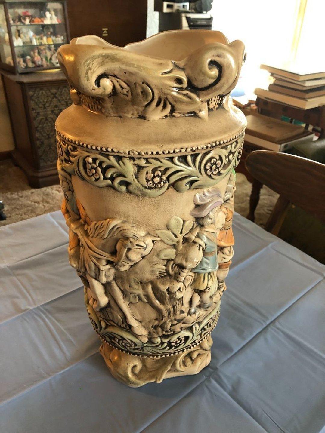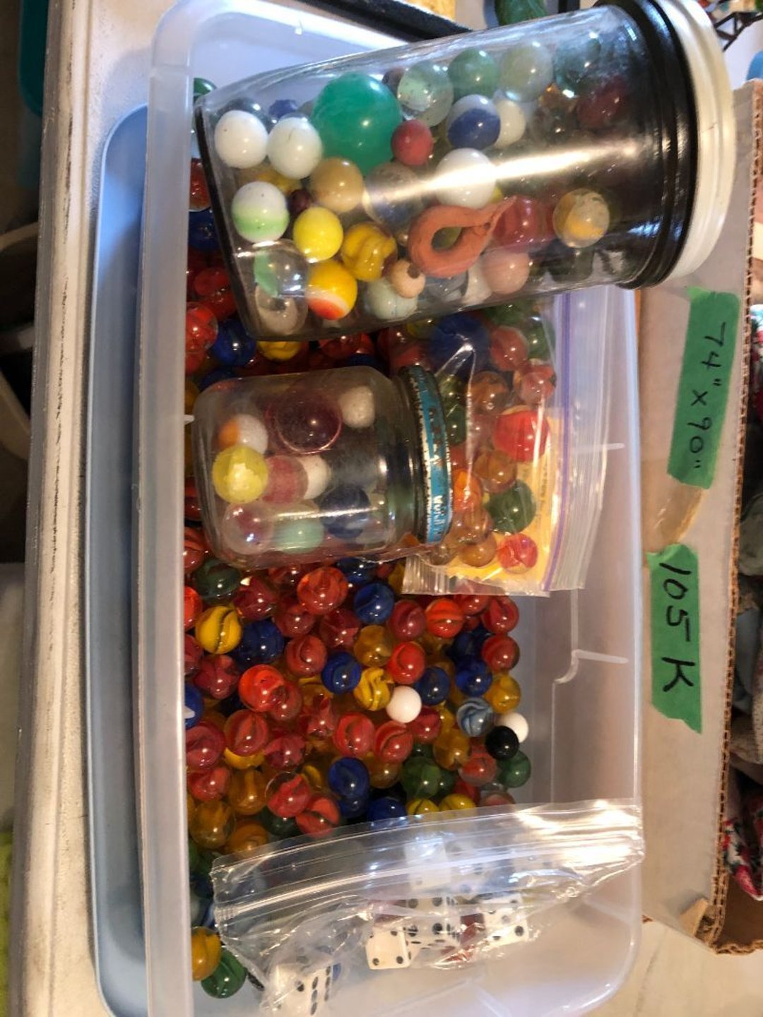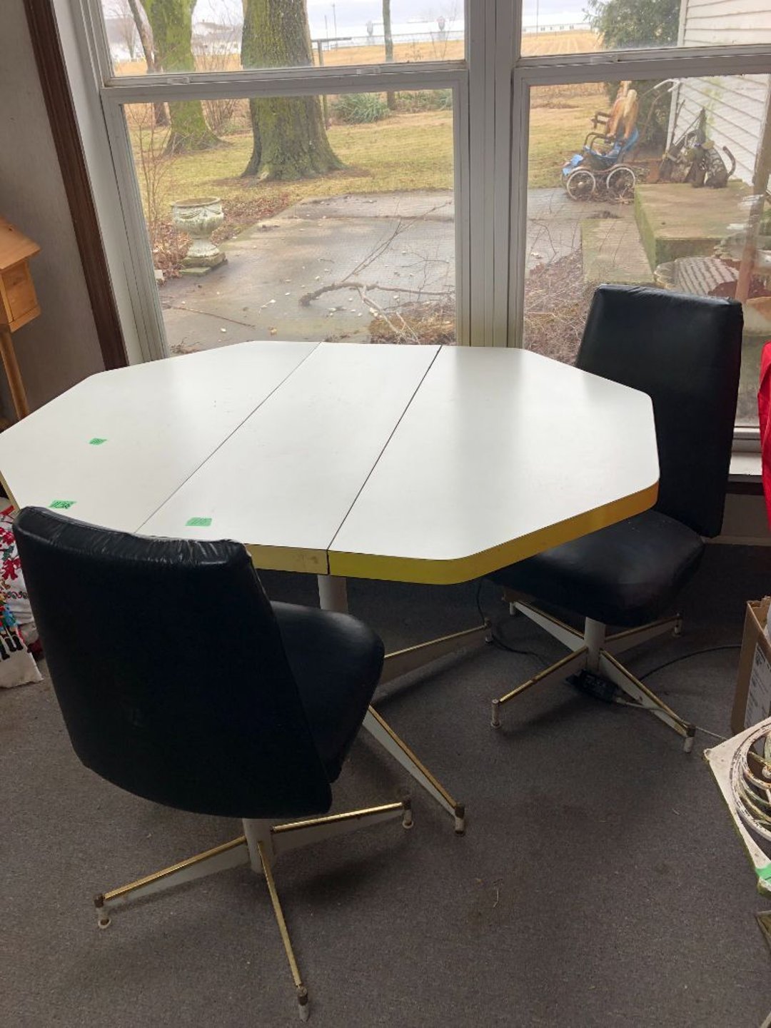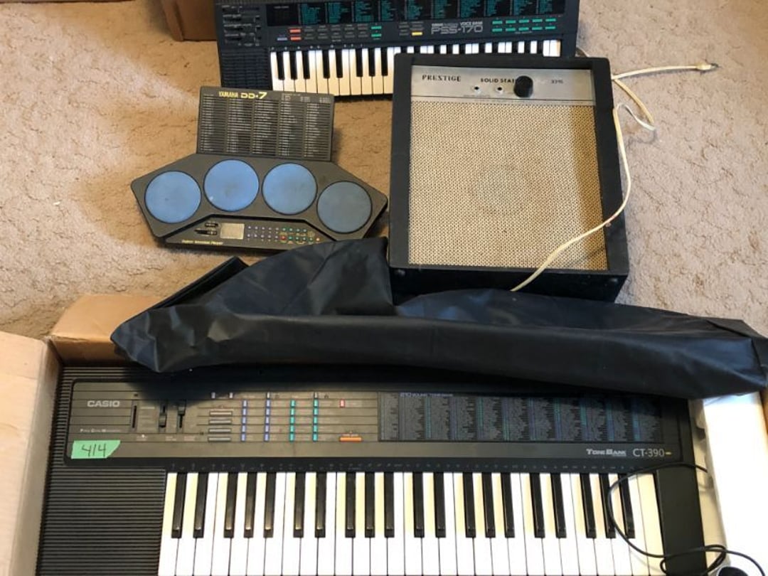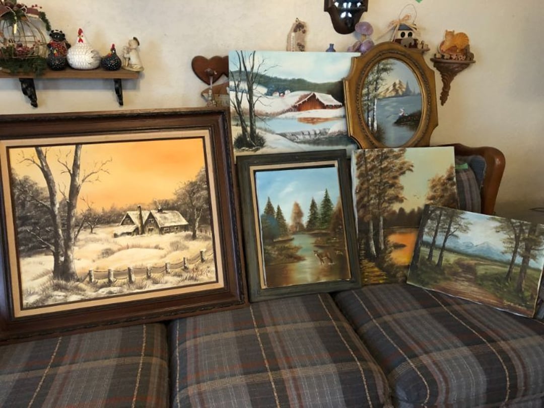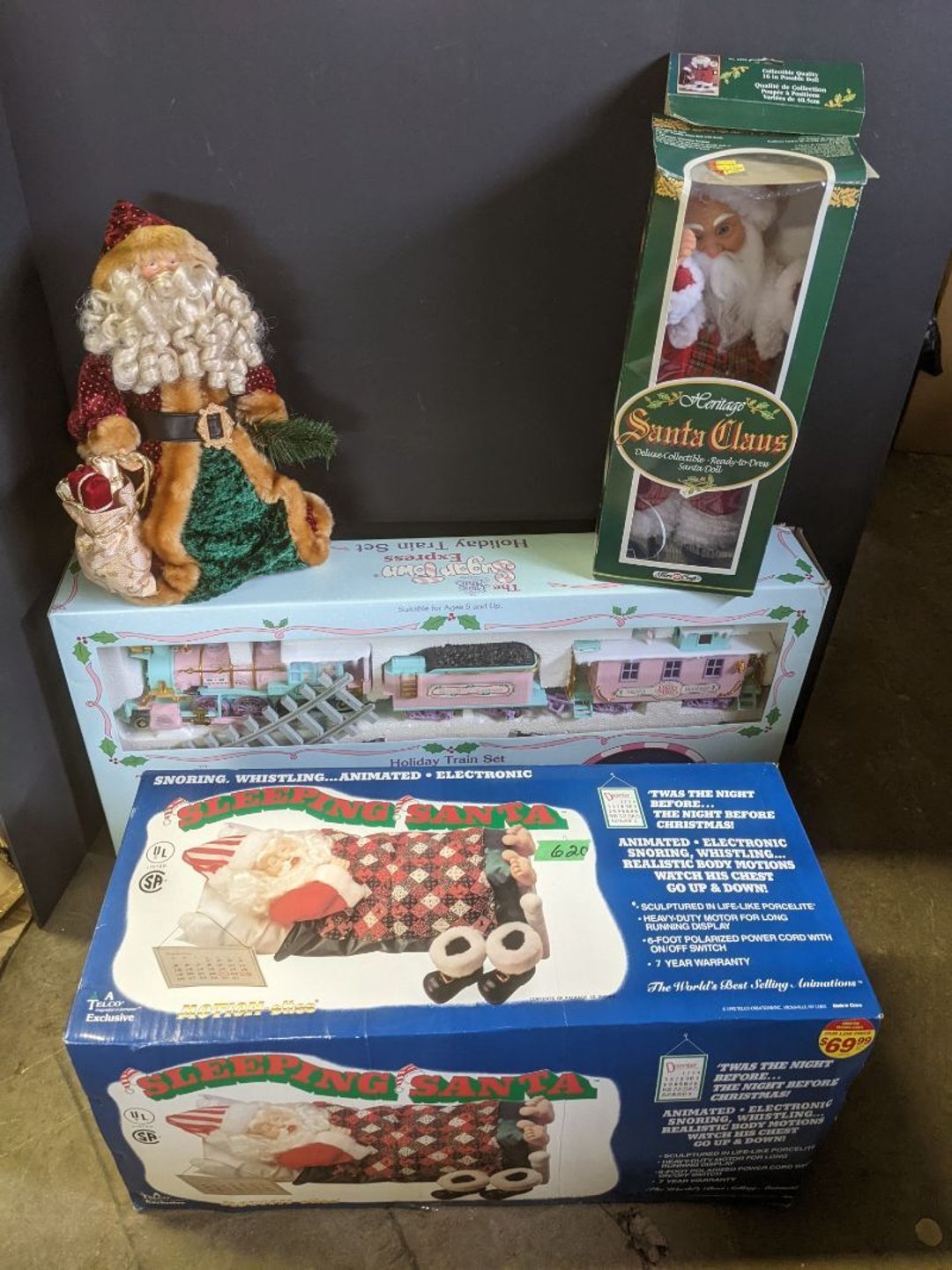 2 Griswold cast iron skillets, Salt and pepper shakers, blue Ball jars, refrigerator dishes, cookie jar, Pink rose dishes, Seyfert's pretzel jar, Jadite blossom design plate, Hull basket, Pink and cream small Hull vase, Roseville pitcher vase, Silver leaf glasses, Cast iron car, metal duck, metal horse bookend, ship bookend, Texaco pump, Glass fish, flower, vase, vintage bookends, bowl, planter, 3 piece moon and stars glassware, Fenton basket, fairy lights, misc glass, Pink, green, yellow depression dishes, Mayfair pink depression dishes, cracker jar, candy jar, 3 Mayfair pink depression bowls, Cast iron doorstop, 75 piece Homer Laughlin dogwood pattern dishes, Patton heater, small fan, Misc kitchenware, Strainer, 2 pressure cookers, Vintage Silvertone radio, 3 vintage ladies hats, 6 men's hats, Magnavox CD player and cassette recorder, cassettes, Juliette Eight Track Stereo player, 8 tracks, Sony fm/am stereo cassette recorder, cassettes, Crocks, sad iron, Vintage kitchenware, DVDs, 37 piece Homer Laughlin Georgian Eggshell dishes, Basket of glass vegetables, Vintage child's dishes, 2 pieces candle wick, 1 American sweetheart plate, 3 pieces bubbleglass, novelties and advertising, violin, 2 Furbys, Dubl Handi washboard, 2 feed bags, 2 cuckoo clocks both made in Germany, 29 pieces of misc Corelle, 95+ pieces of Lazy Daisy Corelle and flatware, 8 Pyrex mixing bowls, 2 Pyrex measuring pitchers, Copper boiler (rusty), vintage pot (chipped), American Tourister suitcase, Holiday decorations, Pots and pans with tote, Cleaning supplies, wire racks, Vintage handmade quilt, Signed handmade quilt, Comforter (damaged), 17 Life magazines from 1969 and 1971, 1969 Sears catalog, Handmade cross stitch flower quilt, State bird needlepoint quilt 96" x 68", Handmade signed quilt 108" x 84", Pyrex 3 piece casseroles, Commodore vintage computer, misc computer equipment, Bell & Howell movie projector, Quilt rack, automatic knitter, Small metal cabinet, Body power inversion table, Vitamaster 1000 XT exercise bike, Craft supplies and metal rack, Coppertone rack with sewing supplies and glassware, Coppertone rack with glassware, pop bottles, ceramic statutes, Record albums, Chalkboard, 3 mirrors, Fossil advertising sign, Metal plant stand, Craft supplies, material, doll heads, toolbox w/paints, metal rack, Weber small grill, 9' x 13' screen house, 3 wooden folding chairs, metal folding chair, 2 lawn chairs, 4 cushions, Belt buckles, knives, lighters, cuff links, hand warmers, Jewelry and jewelry boxes, Cat's eye ring, Logger, chicken wire, watering can, pavers, magnet, 2 boxes of canning jars, Whirlpool hot spa, Matmassager, Chi machine, exercise equipment, Painting supplies, small trash can, plastic baskets, Yard and garden tools, Adams Central letter jacket and t-shirt, Hammock, 2 folding lawn chairs, NIB heavy-duty shelving, Nib Proctor Silex coffee maker, rock garden, Nib Shiatsu foot massager, nib Snuggie, Staple gun, hammers, knives, screwdrivers, Champion socket set, Air pump, light bulbs, smoke alarms, hole saw set, glue gun, parts bin, 3 license plates, Kerosene heater, Patton electric heater, Magnifying lamp, bungee cords, batteries, oil can, Rubbermaid medium size cooler, Igloo polar roller 60 quart cooler, Metal shelving with glassware, stemware, vases, pots, plant stands, buckets, Metal shelving with garden supplies, small wooden ladder, bowling ball, Metal shelving with Memories of Yesterday and misc figurines, Large new extension cord, 3 aluminum treble lights, 2 Blue Mountain 2 piece rainsuits, small Comfort Zone heater, GE HEPA air purifier, Storage totes and containers misc sizes, 3 boxes of décor, Hand blown art glass, 7 pieces of Lefton china, glass basket and animals, Precious Moments collection, Precious Moments musical Ferris wheel, town buildings, books, Precious Moments train, nativity, 14 misc pieces, Brinn's musical dolls, Sleigh bells, 2 vintage bird pictures with feathers, Quilt top 74" x 90", Vintage marbles, Cast iron collection, Wicker planter, Garden statues, 2 photo screens, Vintage light-up Santa and snowman, Huge assortment of Christmas, 3 piece Roseville, Vases and decorator pieces, 18" green plate, glass decorator pieces, 46" x 36" drop leaf table with 2 chairs, Glassware, Americana Star stainless steel flatware service for 12 with chest, Oneida Wm A Rogers AI Plus flatware, 3 pieces silver plated items, Wm Rogers silver tea set, casserole, cutlery, cake knife, Silver plated assortment, 18" tall metal patio table, 5 garden statues, Large sitting angel cement statue, 4 plant stands, Vintage large green glass vase, large artificial rose, Heavy metal stand with glass shelves, wooden cabinet with contents, Misc wall items, Vintage metal serving cart, Microwave and cart, wall décor, Advertising yardsticks, grabber, dusters, gloves, Toshiba 19" television with remote, 6" pasta machine, metal kitchen utensils, warming tray, Office supplies, Kitchen table with 1 leaf and 6 chairs with wheels, Rival electric slicer, Primo water dispenser, Wm Rogers "Harvest" pitcher, Leonard silver plated pitcher, misc silver pieces, Heavy vintage glass pitcher, spongeware bowl, 3 crock bowls, coffee urn, 7 "The Young and the Restless" collector plates, record of "Nadia's Theme", Leonard silver plated pitcher, 2 silver plated cups, William Rogers candlesticks, Fire King baking dishes, 2 casseroles, Pyrex casserole, Misc Corningware and Fire King, 2 boxes of 25 Boopie stemware, Wooden bull, F B Rogers Silver Company tea set - Sugar and creamer, footed waste, Sharp Carousel microwave, Glitter lava-type lamp, dancing clown music box, 20+ pieces of mushroom design kitchen set, 2 boxes of flatware, 1 boxes of knives, sharpening steel, Vintage elephant cookie jar, 8 pieces Lefton china, 12 pieces Pink Rose Lefton china, McCoy cookie jar, 4 boxes of kitchen utensils, Joseph Rogers Jr & Sons drum with case and drum sticks, Bissel Powerforce bagless vacuum, Vintage Shirley Temple "First Vacation" doll, Vin