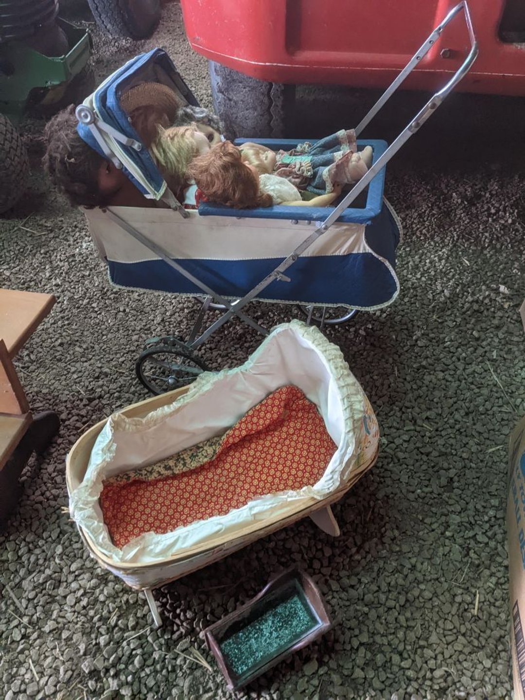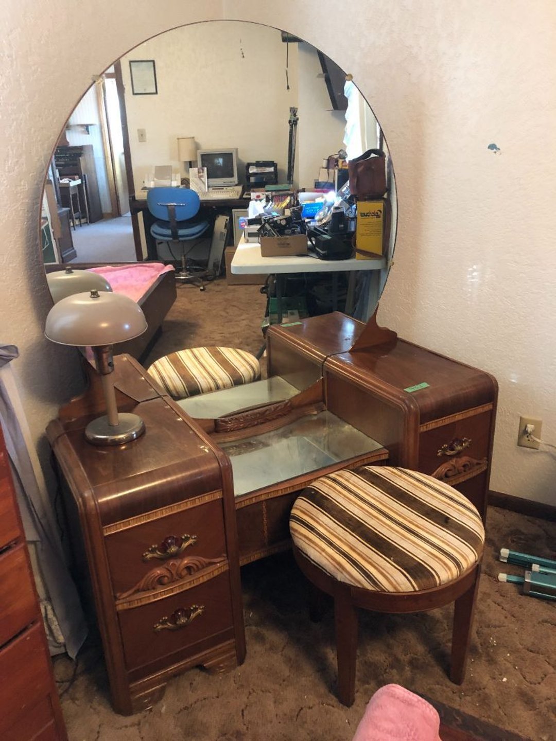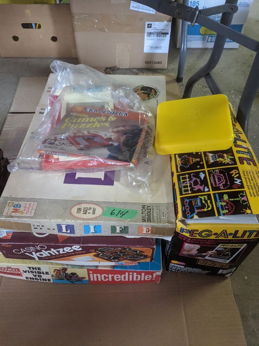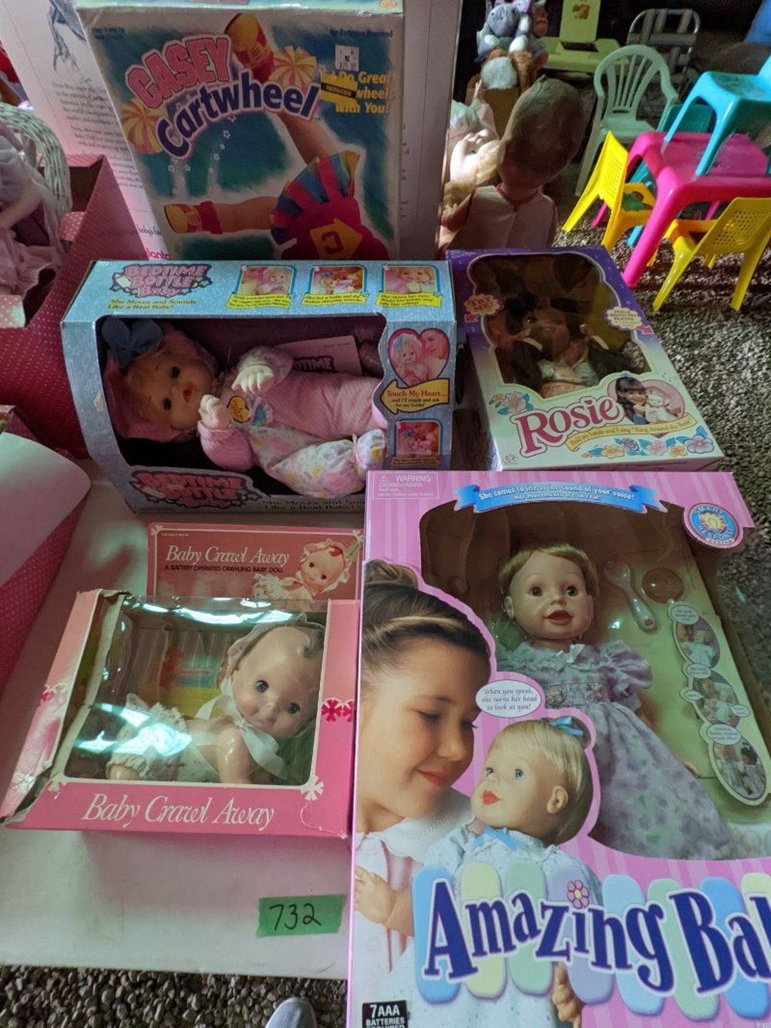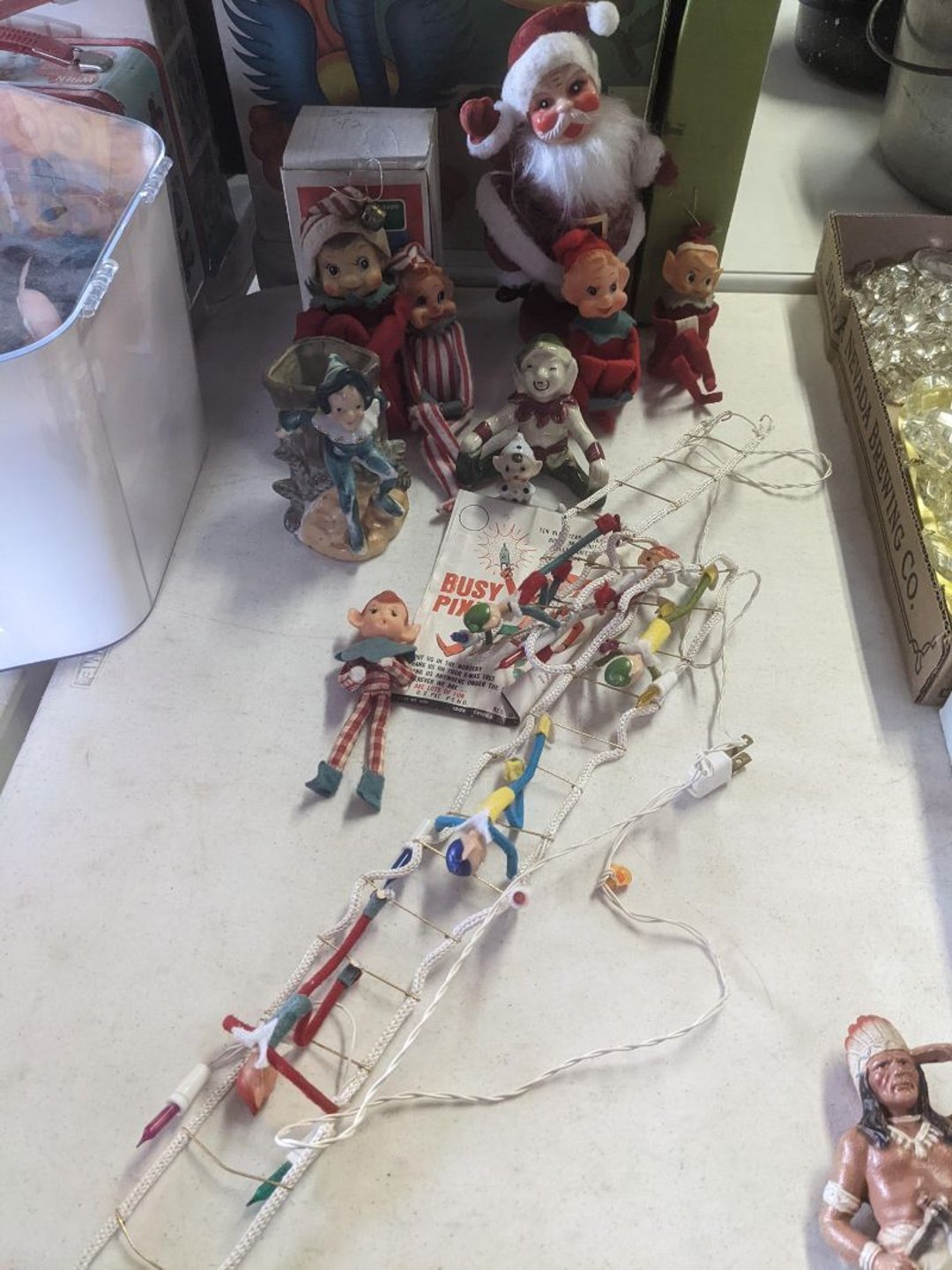 2 Griswold cast iron skillets, Salt and pepper shakers, blue Ball jars, refrigerator dishes, cookie jar, Pink rose dishes, Seyfert's pretzel jar, Jadite blossom design plate, Hull basket, Pink and cream small Hull vase, Roseville pitcher vase, Silver leaf glasses, Cast iron car, metal duck, metal horse bookend, ship bookend, Texaco pump, Glass fish, flower, vase, vintage bookends, bowl, planter, 3 piece moon and stars glassware, Fenton basket, fairy lights, misc glass, Pink, green, yellow depression dishes, Mayfair pink depression dishes, cracker jar, candy jar, 3 Mayfair pink depression bowls, Cast iron doorstop, 75 piece Homer Laughlin dogwood pattern dishes, Patton heater, small fan, Misc kitchenware, Strainer, 2 pressure cookers, Vintage Silvertone radio, 3 vintage ladies hats, 6 men's hats, Magnavox CD player and cassette recorder, cassettes, Juliette Eight Track Stereo player, 8 tracks, Sony fm/am stereo cassette recorder, cassettes, Crocks, sad iron, Vintage kitchenware, DVDs, 37 piece Homer Laughlin Georgian Eggshell dishes, Basket of glass vegetables, Vintage child's dishes, 2 pieces candle wick, 1 American sweetheart plate, 3 pieces bubbleglass, novelties and advertising, violin, 2 Furbys, Dubl Handi washboard, 2 feed bags, 2 cuckoo clocks both made in Germany, 29 pieces of misc Corelle, 95+ pieces of Lazy Daisy Corelle and flatware, 8 Pyrex mixing bowls, 2 Pyrex measuring pitchers, Copper boiler (rusty), vintage pot (chipped), American Tourister suitcase, Holiday decorations, Pots and pans with tote, Cleaning supplies, wire racks, Vintage handmade quilt, Signed handmade quilt, Comforter (damaged), 17 Life magazines from 1969 and 1971, 1969 Sears catalog, Handmade cross stitch flower quilt, State bird needlepoint quilt 96" x 68", Handmade signed quilt 108" x 84", Pyrex 3 piece casseroles, Commodore vintage computer, misc computer equipment, Bell & Howell movie projector, Quilt rack, automatic knitter, Small metal cabinet, Body power inversion table, Vitamaster 1000 XT exercise bike, Craft supplies and metal rack, Coppertone rack with sewing supplies and glassware, Coppertone rack with glassware, pop bottles, ceramic statutes, Record albums, Chalkboard, 3 mirrors, Fossil advertising sign, Metal plant stand, Craft supplies, material, doll heads, toolbox w/paints, metal rack, Weber small grill, 9' x 13' screen house, 3 wooden folding chairs, metal folding chair, 2 lawn chairs, 4 cushions, Belt buckles, knives, lighters, cuff links, hand warmers, Jewelry and jewelry boxes, Cat's eye ring, Logger, chicken wire, watering can, pavers, magnet, 2 boxes of canning jars, Whirlpool hot spa, Matmassager, Chi machine, exercise equipment, Painting supplies, small trash can, plastic baskets, Yard and garden tools, Adams Central letter jacket and t-shirt, Hammock, 2 folding lawn chairs, NIB heavy-duty shelving, Nib Proctor Silex coffee maker, rock garden, Nib Shiatsu foot massager, nib Snuggie, Staple gun, hammers, knives, screwdrivers, Champion socket set, Air pump, light bulbs, smoke alarms, hole saw set, glue gun, parts bin, 3 license plates, Kerosene heater, Patton electric heater, Magnifying lamp, bungee cords, batteries, oil can, Rubbermaid medium size cooler, Igloo polar roller 60 quart cooler, Metal shelving with glassware, stemware, vases, pots, plant stands, buckets, Metal shelving with garden supplies, small wooden ladder, bowling ball, Metal shelving with Memories of Yesterday and misc figurines, Large new extension cord, 3 aluminum treble lights, 2 Blue Mountain 2 piece rainsuits, small Comfort Zone heater, GE HEPA air purifier, Storage totes and containers misc sizes, 3 boxes of décor, Hand blown art glass, 7 pieces of Lefton china, glass basket and animals, Precious Moments collection, Precious Moments musical Ferris wheel, town buildings, books, Precious Moments train, nativity, 14 misc pieces, Brinn's musical dolls, Sleigh bells, 2 vintage bird pictures with feathers, Quilt top 74" x 90", Vintage marbles, Cast iron collection, Wicker planter, Garden statues, 2 photo screens, Vintage light-up Santa and snowman, Huge assortment of Christmas, 3 piece Roseville, Vases and decorator pieces, 18" green plate, glass decorator pieces, 46" x 36" drop leaf table with 2 chairs, Glassware, Americana Star stainless steel flatware service for 12 with chest, Oneida Wm A Rogers AI Plus flatware, 3 pieces silver plated items, Wm Rogers silver tea set, casserole, cutlery, cake knife, Silver plated assortment, 18" tall metal patio table, 5 garden statues, Large sitting angel cement statue, 4 plant stands, Vintage large green glass vase, large artificial rose, Heavy metal stand with glass shelves, wooden cabinet with contents, Misc wall items, Vintage metal serving cart, Microwave and cart, wall décor, Advertising yardsticks, grabber, dusters, gloves, Toshiba 19" television with remote, 6" pasta machine, metal kitchen utensils, warming tray, Office supplies, Kitchen table with 1 leaf and 6 chairs with wheels, Rival electric slicer, Primo water dispenser, Wm Rogers "Harvest" pitcher, Leonard silver plated pitcher, misc silver pieces, Heavy vintage glass pitcher, spongeware bowl, 3 crock bowls, coffee urn, 7 "The Young and the Restless" collector plates, record of "Nadia's Theme", Leonard silver plated pitcher, 2 silver plated cups, William Rogers candlesticks, Fire King baking dishes, 2 casseroles, Pyrex casserole, Misc Corningware and Fire King, 2 boxes of 25 Boopie stemware, Wooden bull, F B Rogers Silver Company tea set - Sugar and creamer, footed waste, Sharp Carousel microwave, Glitter lava-type lamp, dancing clown music box, 20+ pieces of mushroom design kitchen set, 2 boxes of flatware, 1 boxes of knives, sharpening steel, Vintage elephant cookie jar, 8 pieces Lefton china, 12 pieces Pink Rose Lefton china, McCoy cookie jar, 4 boxes of kitchen utensils, Joseph Rogers Jr & Sons drum with case and drum sticks, Bissel Powerforce bagless vacuum, Vintage Shirley Temple "First Vacation" doll, Vin