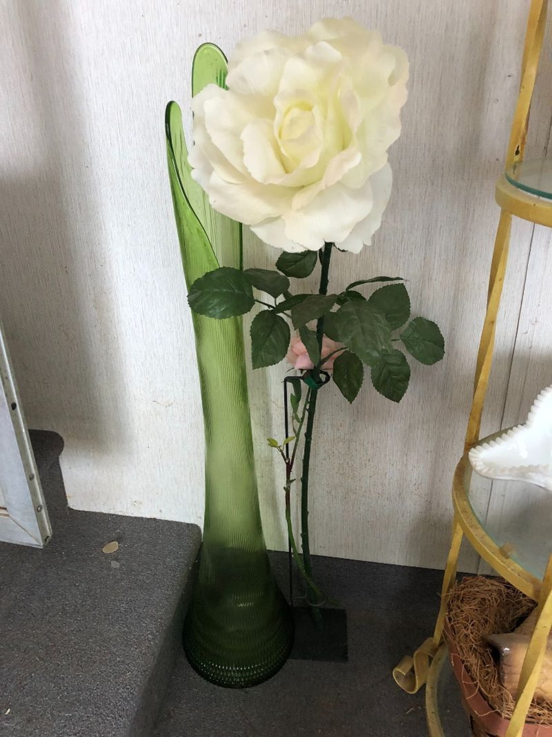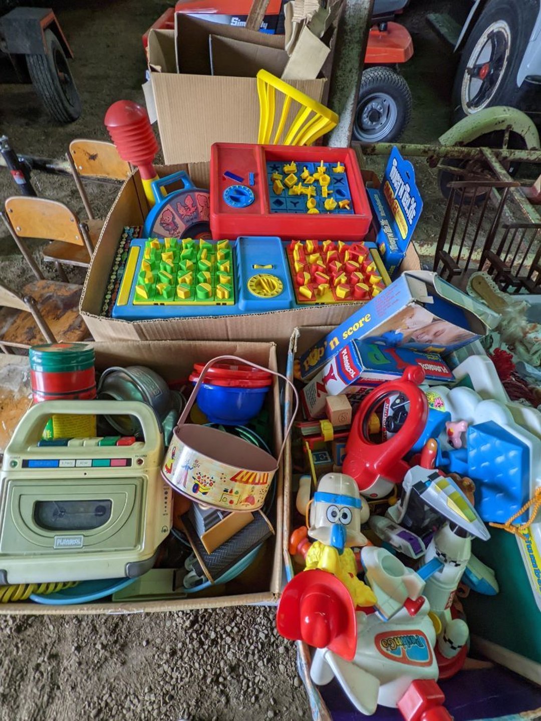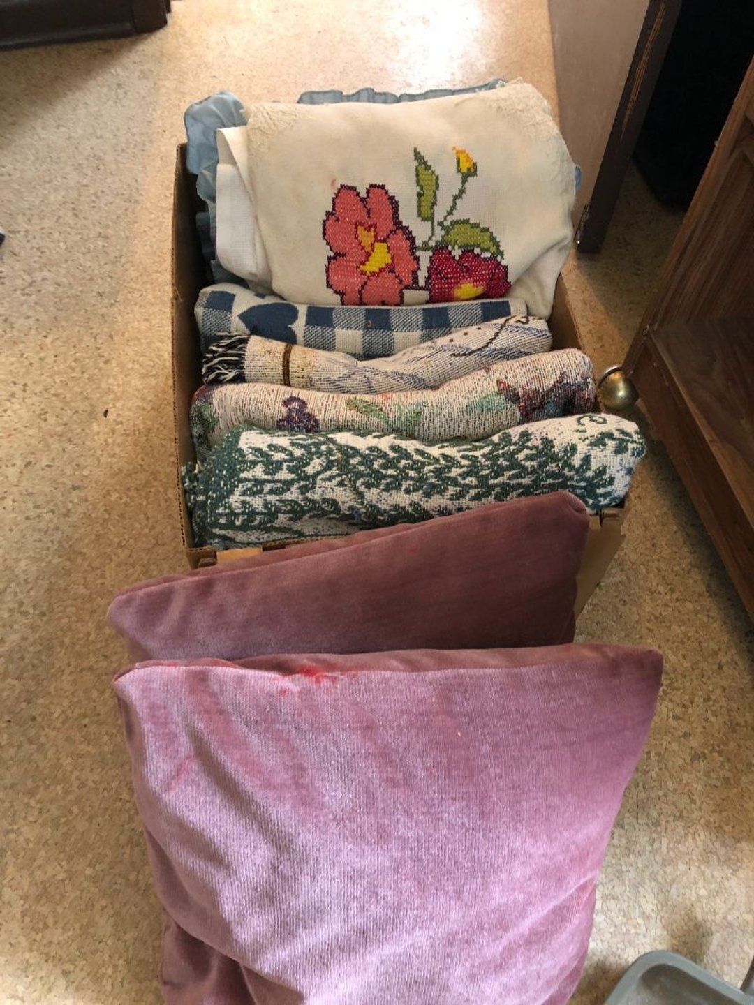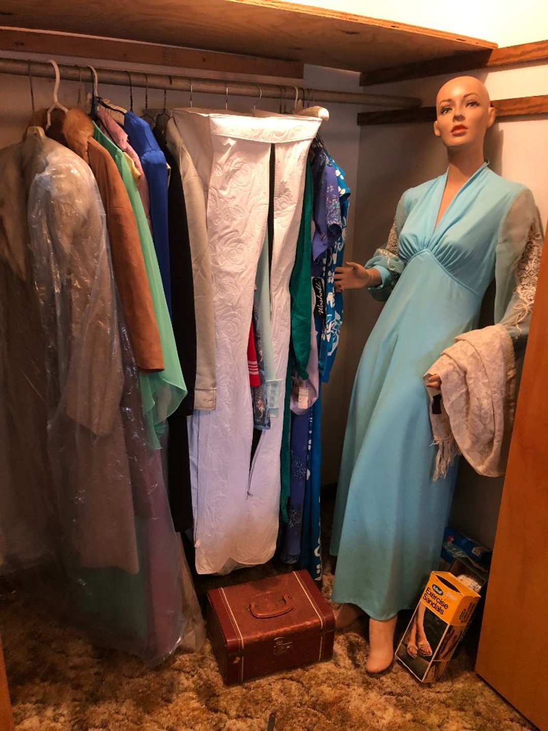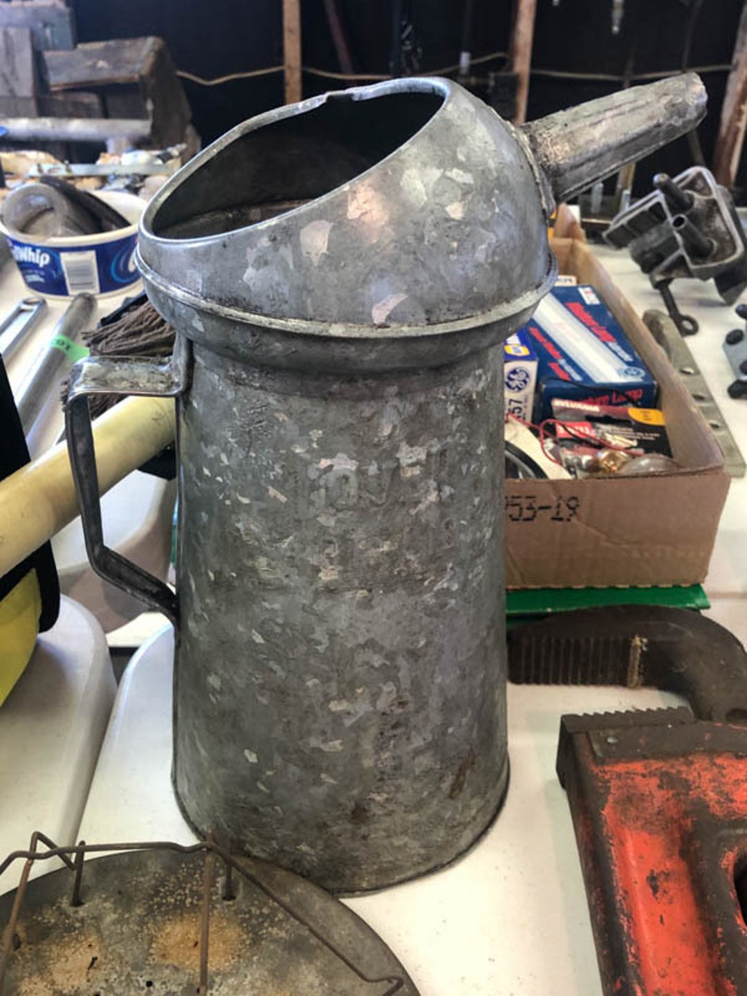 2 Griswold cast iron skillets, Salt and pepper shakers, blue Ball jars, refrigerator dishes, cookie jar, Pink rose dishes, Seyfert's pretzel jar, Jadite blossom design plate, Hull basket, Pink and cream small Hull vase, Roseville pitcher vase, Silver leaf glasses, Cast iron car, metal duck, metal horse bookend, ship bookend, Texaco pump, Glass fish, flower, vase, vintage bookends, bowl, planter, 3 piece moon and stars glassware, Fenton basket, fairy lights, misc glass, Pink, green, yellow depression dishes, Mayfair pink depression dishes, cracker jar, candy jar, 3 Mayfair pink depression bowls, Cast iron doorstop, 75 piece Homer Laughlin dogwood pattern dishes, Patton heater, small fan, Misc kitchenware, Strainer, 2 pressure cookers, Vintage Silvertone radio, 3 vintage ladies hats, 6 men's hats, Magnavox CD player and cassette recorder, cassettes, Juliette Eight Track Stereo player, 8 tracks, Sony fm/am stereo cassette recorder, cassettes, Crocks, sad iron, Vintage kitchenware, DVDs, 37 piece Homer Laughlin Georgian Eggshell dishes, Basket of glass vegetables, Vintage child's dishes, 2 pieces candle wick, 1 American sweetheart plate, 3 pieces bubbleglass, novelties and advertising, violin, 2 Furbys, Dubl Handi washboard, 2 feed bags, 2 cuckoo clocks both made in Germany, 29 pieces of misc Corelle, 95+ pieces of Lazy Daisy Corelle and flatware, 8 Pyrex mixing bowls, 2 Pyrex measuring pitchers, Copper boiler (rusty), vintage pot (chipped), American Tourister suitcase, Holiday decorations, Pots and pans with tote, Cleaning supplies, wire racks, Vintage handmade quilt, Signed handmade quilt, Comforter (damaged), 17 Life magazines from 1969 and 1971, 1969 Sears catalog, Handmade cross stitch flower quilt, State bird needlepoint quilt 96" x 68", Handmade signed quilt 108" x 84", Pyrex 3 piece casseroles, Commodore vintage computer, misc computer equipment, Bell & Howell movie projector, Quilt rack, automatic knitter, Small metal cabinet, Body power inversion table, Vitamaster 1000 XT exercise bike, Craft supplies and metal rack, Coppertone rack with sewing supplies and glassware, Coppertone rack with glassware, pop bottles, ceramic statutes, Record albums, Chalkboard, 3 mirrors, Fossil advertising sign, Metal plant stand, Craft supplies, material, doll heads, toolbox w/paints, metal rack, Weber small grill, 9' x 13' screen house, 3 wooden folding chairs, metal folding chair, 2 lawn chairs, 4 cushions, Belt buckles, knives, lighters, cuff links, hand warmers, Jewelry and jewelry boxes, Cat's eye ring, Logger, chicken wire, watering can, pavers, magnet, 2 boxes of canning jars, Whirlpool hot spa, Matmassager, Chi machine, exercise equipment, Painting supplies, small trash can, plastic baskets, Yard and garden tools, Adams Central letter jacket and t-shirt, Hammock, 2 folding lawn chairs, NIB heavy-duty shelving, Nib Proctor Silex coffee maker, rock garden, Nib Shiatsu foot massager, nib Snuggie, Staple gun, hammers, knives, screwdrivers, Champion socket set, Air pump, light bulbs, smoke alarms, hole saw set, glue gun, parts bin, 3 license plates, Kerosene heater, Patton electric heater, Magnifying lamp, bungee cords, batteries, oil can, Rubbermaid medium size cooler, Igloo polar roller 60 quart cooler, Metal shelving with glassware, stemware, vases, pots, plant stands, buckets, Metal shelving with garden supplies, small wooden ladder, bowling ball, Metal shelving with Memories of Yesterday and misc figurines, Large new extension cord, 3 aluminum treble lights, 2 Blue Mountain 2 piece rainsuits, small Comfort Zone heater, GE HEPA air purifier, Storage totes and containers misc sizes, 3 boxes of décor, Hand blown art glass, 7 pieces of Lefton china, glass basket and animals, Precious Moments collection, Precious Moments musical Ferris wheel, town buildings, books, Precious Moments train, nativity, 14 misc pieces, Brinn's musical dolls, Sleigh bells, 2 vintage bird pictures with feathers, Quilt top 74" x 90", Vintage marbles, Cast iron collection, Wicker planter, Garden statues, 2 photo screens, Vintage light-up Santa and snowman, Huge assortment of Christmas, 3 piece Roseville, Vases and decorator pieces, 18" green plate, glass decorator pieces, 46" x 36" drop leaf table with 2 chairs, Glassware, Americana Star stainless steel flatware service for 12 with chest, Oneida Wm A Rogers AI Plus flatware, 3 pieces silver plated items, Wm Rogers silver tea set, casserole, cutlery, cake knife, Silver plated assortment, 18" tall metal patio table, 5 garden statues, Large sitting angel cement statue, 4 plant stands, Vintage large green glass vase, large artificial rose, Heavy metal stand with glass shelves, wooden cabinet with contents, Misc wall items, Vintage metal serving cart, Microwave and cart, wall décor, Advertising yardsticks, grabber, dusters, gloves, Toshiba 19" television with remote, 6" pasta machine, metal kitchen utensils, warming tray, Office supplies, Kitchen table with 1 leaf and 6 chairs with wheels, Rival electric slicer, Primo water dispenser, Wm Rogers "Harvest" pitcher, Leonard silver plated pitcher, misc silver pieces, Heavy vintage glass pitcher, spongeware bowl, 3 crock bowls, coffee urn, 7 "The Young and the Restless" collector plates, record of "Nadia's Theme", Leonard silver plated pitcher, 2 silver plated cups, William Rogers candlesticks, Fire King baking dishes, 2 casseroles, Pyrex casserole, Misc Corningware and Fire King, 2 boxes of 25 Boopie stemware, Wooden bull, F B Rogers Silver Company tea set - Sugar and creamer, footed waste, Sharp Carousel microwave, Glitter lava-type lamp, dancing clown music box, 20+ pieces of mushroom design kitchen set, 2 boxes of flatware, 1 boxes of knives, sharpening steel, Vintage elephant cookie jar, 8 pieces Lefton china, 12 pieces Pink Rose Lefton china, McCoy cookie jar, 4 boxes of kitchen utensils, Joseph Rogers Jr & Sons drum with case and drum sticks, Bissel Powerforce bagless vacuum, Vintage Shirley Temple "First Vacation" doll, Vin