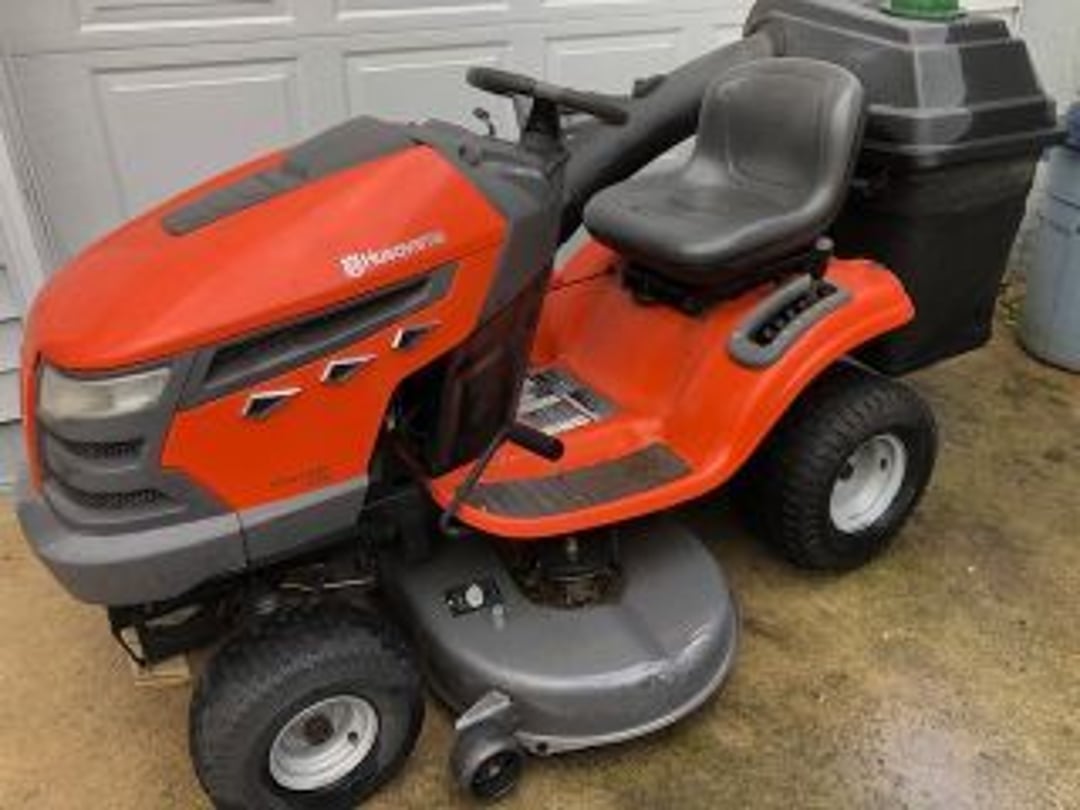 •Husqvarna 21 hp Kohler 46" deck mower with bagger 369 hours