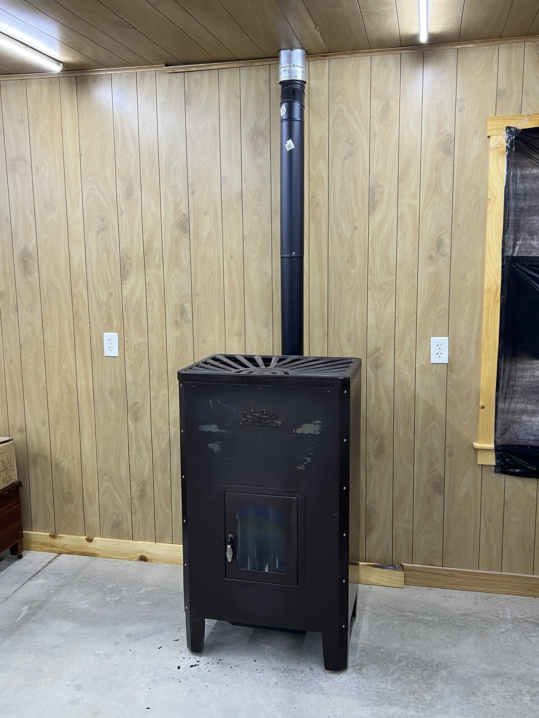 10'x16' Shed, E - Z Guo Propane Heater/ Furnace, 4X8 Road Sign with Letters, GE Propane Stove, & E - Z Freeze Padpane Refrigerator