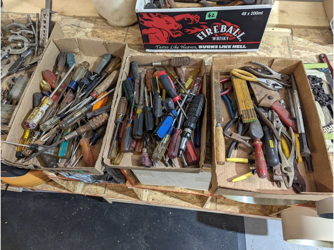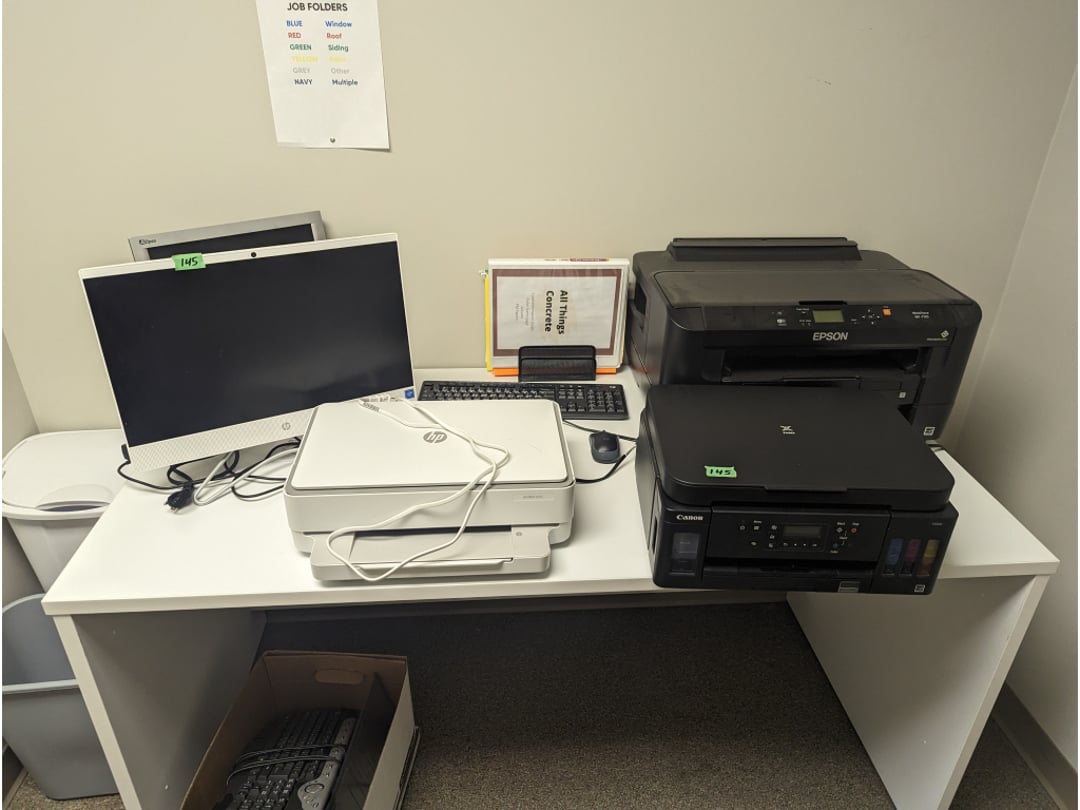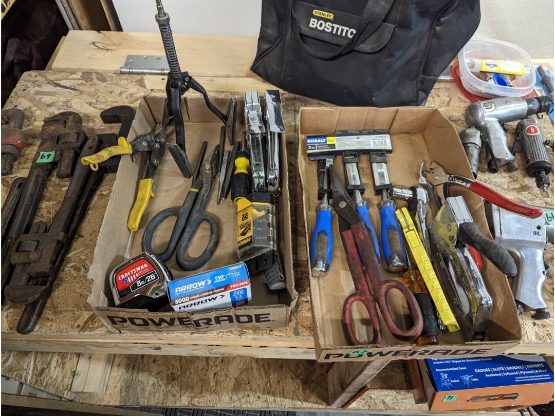 Jack, Jack Stands, Ramp, Oil Pan, Painting Supply, Rollers, Gloves, A/c Gauges, Misc. Caulking, Sealant, Acetone, Dewalt 4.5" Angle Grinder, 7" Polisher / Sander, Power Sheet Metal Shear, Neu Master Electric Tacker, Dremel Saw Max Tool, MasterForce Router w/ Bits, CountyLine Submersible Pump w/ Garden Hose, Wood's Power Grip Suction Cups, YQK-70 Hydraulic Crimping Tool, Yardworks 24" Roller, Earthquake Auger, Guardian Power Drill Press, Torch Kit, Hole Saw Bits, Spade Bits, Gloves, File Set, Tools, Glue, Bolt Cutters, Misc., Pliers, Screwdrivers, 4" Vise w/ Table, Tap & Die Set, Dewalt Radio / Charger, Work Light, Miter Box, Saw, Hammer, Misc., Misc. Hardware, 12 Ton Bottle Jack, 4' Level, Measuring Wheels, Ladder Covers, 32' Aluminum Ladder, Werner 24' 3 Section Extension Ladder, Keller 24' Aluminum Extension Ladder, 6' Fiberglass Stepladder, 6' Fiberglass Stepladder, 3 Sawhorses, Craftsman 6" Pedastal Grinder, Kobalt Roller, Work Light, Snow Fence, Mop w/ Bucket, Broom, Squeegee, T Posts, Misc. Yard & Garden Tools, Bar Clamps, Post Pounder, Gorilla Slim Fold Pro Platform, 8' Johnson Level, Cabinet w/ Misc. Hardware, Rolls of Trim Coil, Jobsite Fencing, Air Hose, Fall Protection, Chain, Shelf, Cord Reel, Misc. Hardware & Garage Supply, P265/70R16 Tire, 3 Gas Cans, Misc. Tools & Hardware, Lincoln Arc Welder, Spectra LL100N Self Leveling Rotary Laser, Poulan Pro 42cc Chainsaw, Fan & Cooler, Tapco Brake Buddy, Dewalt Compound Miter Saw, Milwaukee Portaband Band Saw, x2 4 Wheel Carts, Craftsman Shop Vac, 2 Traffic Cones, Ridgid 10" Table Saw, Rolling Work Table, Central Machinery 24" Shop Fan, Tapco Side Winder Coil Holder System, Pipe Wrenches, Chain Vise Grip, Hammers & Sprayer, 3 Flats of Tools, Pliers, Screwdrivers, 3 Clamps, Flare Tools, Crescent Wrenches, Vise Grips, Magnet Sweeper, Pneumatic Tools, Impacts, Air Chisel, Snips, Chisels, 2 Flats of Tools, 3 Bostitch Pneumatic Nail / Staple Guns, 5 Pipe Wrenches, Bostitch Air Compressor & Extension Cord, Dado Blade Set, Pivit Ladder Tool & Tool Bag, Torque Wrenches, Pliers, Drywall Tools, Various C Clamps, Ratchets & Extensions, Various Sockets, 2 Flats of Wrenches, Deep Well Sockets, Crecent Wrenches, Vise Grips, Electrical Tools, Hand Saws, Crow Bars, Chaulk Lines, Craftsman / Stack On Toolbox, Strongway 4,400 lb Capacity Pallet Jack, Scaffolding, Plywood & OSB, Door Frame, Pallet / Crate, Werner 32' Aluminum Extension Ladder, Misc. On Top Of Pallet Rack, Vinyl Shakes, Steel Mesh, Vinyl Shakes, Wheelbarrow & Sock It Net, Spreader & Hose Reel, Window (See Pics For Details / Size), Window (See Pics For Details / Size), Window (See Pics For Details / Size), Window (See Pics For Details / Size), Window (See Pics For Details / Size), Window (See Pics For Details / Size), Window (See Pics For Details / Size), Window (See Pics For Details / Size), 3 Tubs, Trade Show Material, Misc. Wires / Cables, Trade Show Displays, Cotterman 2 Person Rolling Ladder, Werner 6' Fiberglass Stepladder, 2 Folding Chairs & 2 Stools, 2 Folding Tables, 2 6' Folding Tables, Misc. Shingles & Tar Paper, Misc. Construction Supply, Laundry Basket & Case, Potting Soil, Concrete Misc, Shingle Samples, Stained / Stamped Concrete Samples, Cotterman 2 Person Rolling Ladder, Misc. Siding, Lumber Cart w/ Contents, Various Wood On Floor, Pallet Racking, Pallet Racking, 2 Folding Tables, Workbench, 2 Workbench Tables , Post Sleeves, Lighting, Oak Wood, 6' Whiteboard , Desk & Chair, Organizers, Trash Can, Desk , Chair, Monitor, HP Printer, 6' & 4' Whiteboard, Desk & Chair, Desk, 2 Chairs, Coat Rack, Table w/ 4 Chairs, Credenza, Tree, Contents Of Cabinets, Microwave, Coffee Maker, Mini Fridge & Stand, Primo Water Dispenser, Framed Motivational Posters, Onn 50" Smart TV w/ Remote, 2 39" TV's w/ Remotes, 32" Vizio TV, Various Printers & Monitors, 4 Tables & Chair, Office Chair , Table & Mail Slot Box , Vizio TV w/ Remote, 3 Waiting Room Chairs , File Cabinet & Office Supplies, Computer & Printer, Desk, End Table & Office Chair, Computer & Printer , 2 Desk & Office Chair, Blue X16 Phone System , 6' White Board , 55" Insignia LED TV , 8' x42" Confrence Table & 6 Chairs , 6 Pictures , 2 Desks, 2 Drawer File Cabinet & 2 Waiting Chairs , Book Shelf, 4 Office Chairs , Hon Company Table,