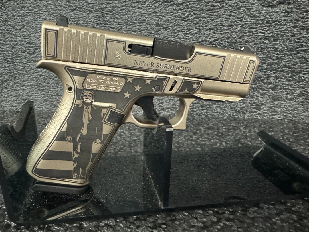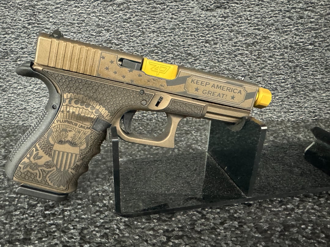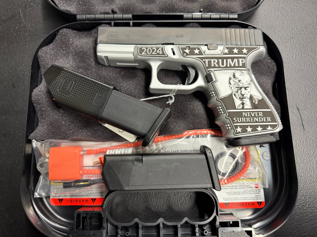 •Glock 19 Gen 4 9mm Hand Gun (Trump Themed)