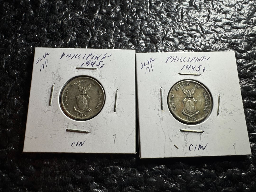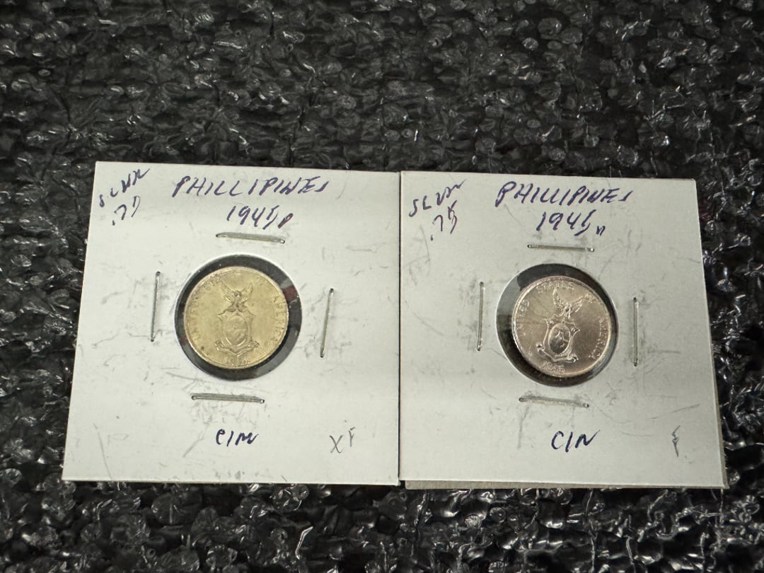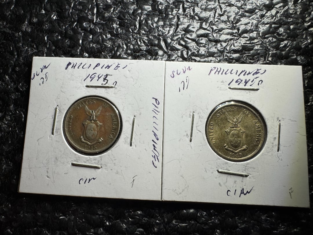 •1939 & 1945 20-Centavos Coin & Netherlands 1/10 Gulden Coin