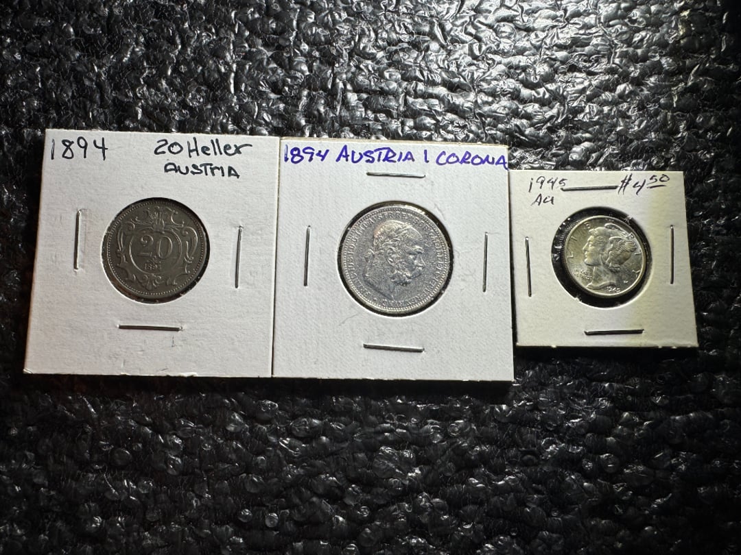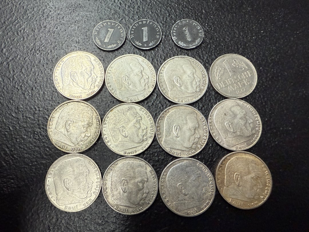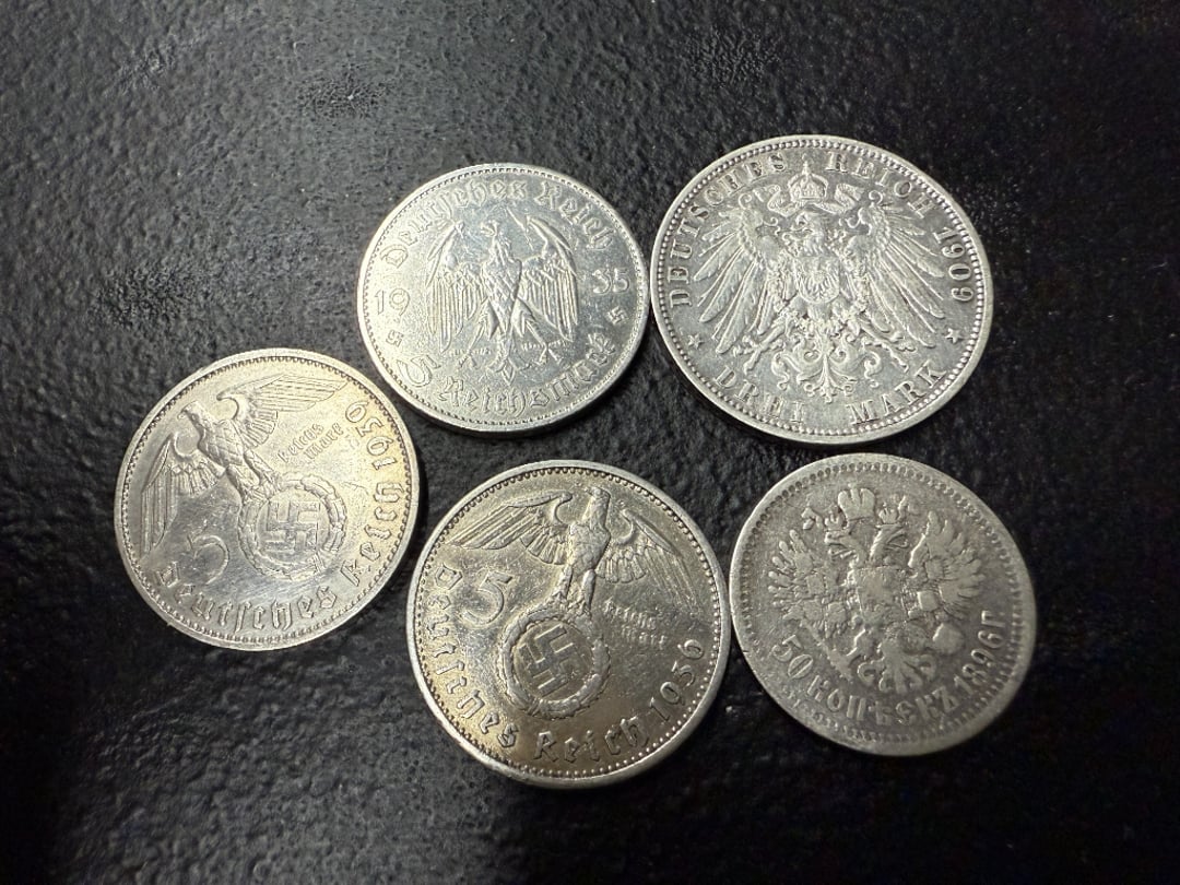 •(3) 1916 20-Pastres Coins & 1937 2-Reichsmark Coin