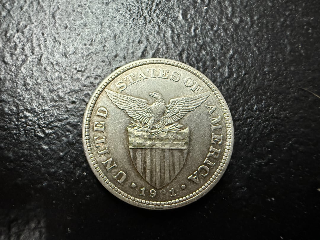 •1921 U.S. Filipinas Fifty Centavos Coin