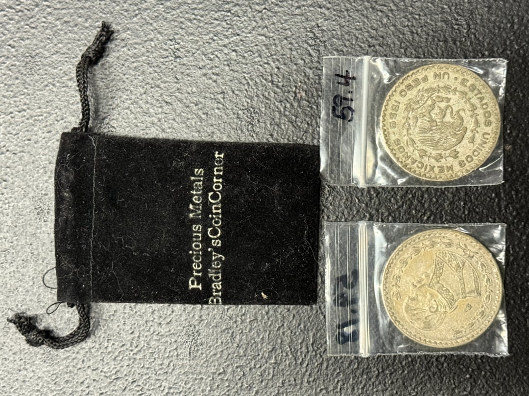•(2) 1959 Estados Unidos Mexicanos Un Peso Coins