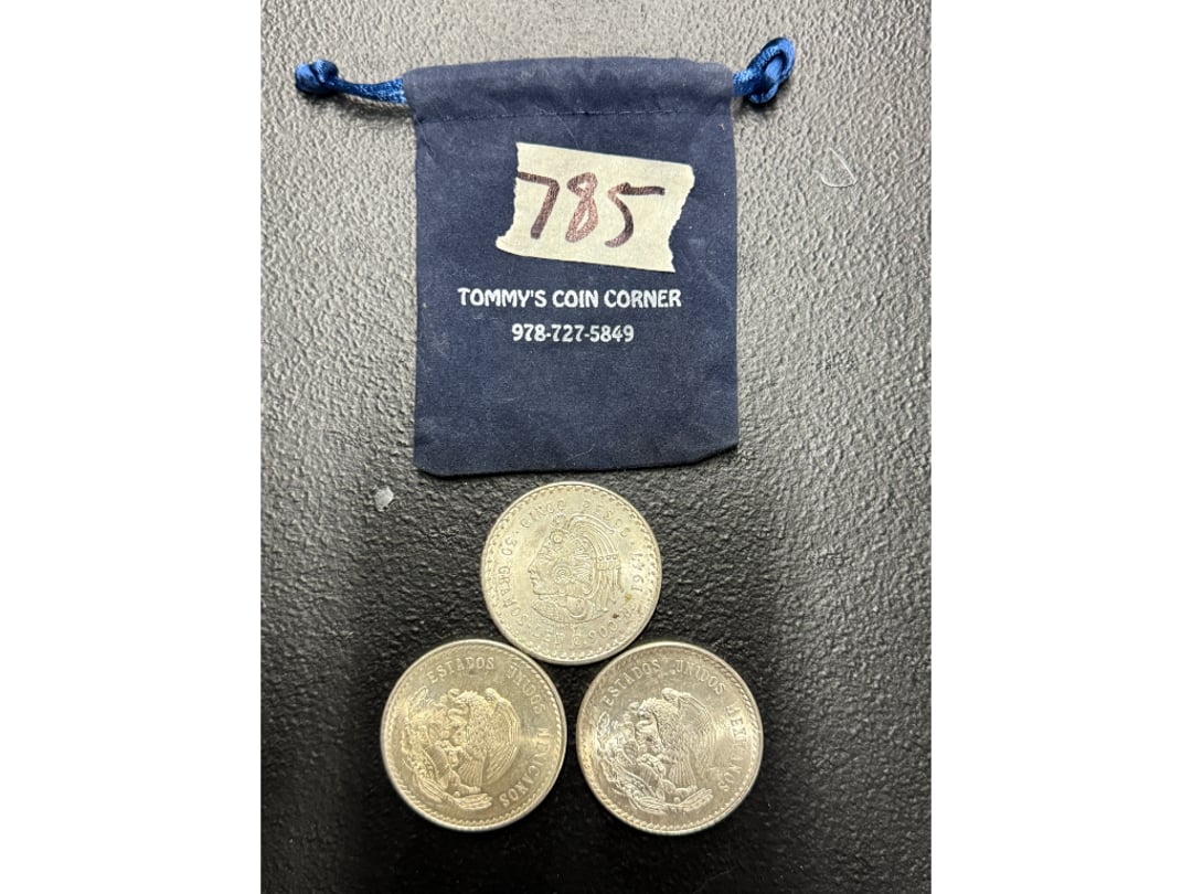 •(2) 1947 & (1) 1948 30 Gramos Ley 0.900 Cinco Peso Coins
