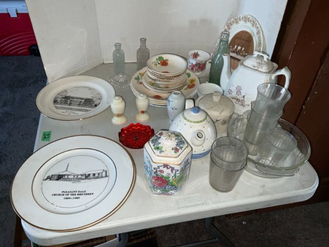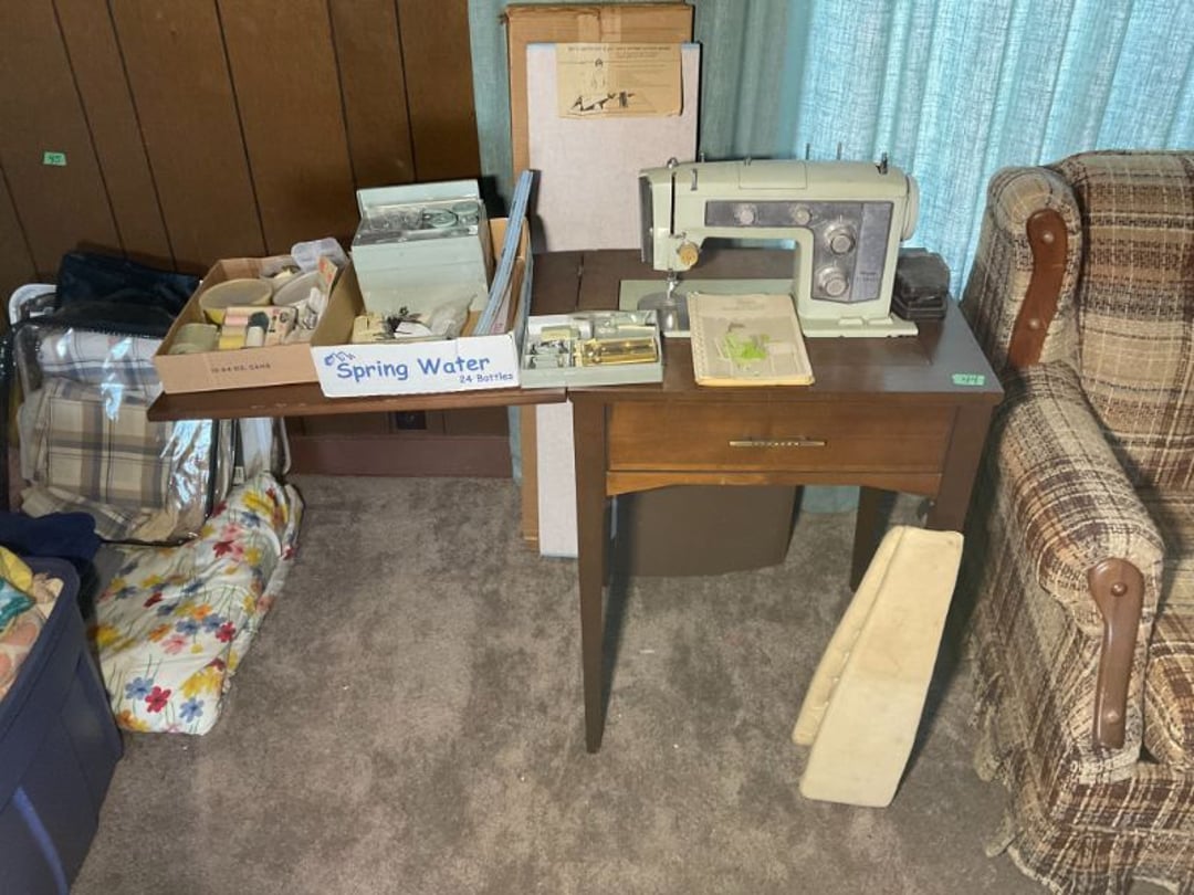 4 Drawer Dresser, Wood Chair, Antique High Chair , (2) Carpet Rugs , Wood Rocking Chair , Burgess Safari Lite, Vases & Pitcher , Costume Jewelry, Jewelry Box, Embroidered Pillow Cases , (4) Blankets , Atlas Of North America , Vintage Wood Vanity w/ Bench, (2) Metal Shelves , Wood Head Board , Emerson Quiet Kool Air Conditioner, Wood Table , 4 Drawer Dresser , Single Mattress , Single Mattress , Assorted Screens , Green Rug, Harry Lindstrand Pictures , Miscellaneous Glassware , Koehler & Campbell Piano , Duncan Phyfe Dining Room Table , Antique China Cabinet , Stemware & Glasses , Hall Tree , EdenPure Sweeper, Assorted Christmas Items , Vintage Coleman Jug, Miscellaneous Glass, Collectable Plates, Vintage Bells, Collection of Math Books , Igloo Cooler, Assorted Pillows , Assorted Children Books , (2) Air Conditioners, Table , Classical CDs, Classical CDs, Sleeper Sofa, Kenmore Sewing Machine w/ Accessories, Assorted Blankets , Toy Chest/ Wood Box , Book Shelf , Book Shelf , Men's Size 11 Boots , Vintage Dolls , Assorted Craft Items , Various Pictures , Desktop Computer , Vera Bradley Bags, Various Paperback Books, Vintage Record Albums, Vintage Record Albums, Various Children Books , Various Disney Children Books , View Master & Games, Jewelry Box, Vintage Hanging Lamp, Mohawk Rug , Percore 815e Bicycle , Vintage Children's Rocking Chair , Assorted Movies , Chess Board, (2) Totes , Kenmore Washer 80 Series , Kenmore 29" Dyer 80 Series , Upright Gibson Freezer , Metal Shelf , Desk , Metal Serving Cart, Cast Iron Pot, Clay Marbles, Cast Iron Dog Boot Scraper , Assorted Glassware , Japan Tea Pot Set, Imperial Slag Glass Candy Jar , L E Smith Black Amethyst Cup , Hall's Jewel Tea Pitcher w/ Lid, Seth Thomas Adamantine Lion Head Mantle Clock , KitchenAid Slicer/Shredder , Canner, Jars, Whirlpool Stove / Oven, Whirlpool Refrigerator , GE Microwave & Cart, Assorted Yard Sticks , Various Cleaning Supplies , Kitchen Table w/ (5) Chairs , Trampoline, Simplicity 42" Zero Turn Mower , Simplicity 24" Snow Blower , Murray 22" Mower, Car Cover XL, Air Compressor , Chain Link Fence, Karts Missle Game , Crates & Hardware Items , Tool Box Miscellaneous Items , S&K Wrenches , (4) Traps, Assorted Vintage Tools , Scrape , Rubbermaid Step Tool Box, Wheelbarrow & Fence Post , Larson Storm Door NIB , 2 X 10 Various Lengths , Car Ramps & Wire Cable , Wood Clamps & Pry Bar, Assorted Wood, Various Oil 7 Chemicals , Porch Swing & Children Swing , Various Yard & Gardening Items , (2) 32 Gallon Rubbermaid Trash Cans , Coleman Kerosene Lantern , Pipe Wrenches, Husky Jump Pack, Wagner Paint Sprayer , Schumacher Battery Charger, Wood Saw Horse , Gas Cans, Cable Puller, Stihl D28 Chainsaw w/ Case, McMculloch 610 Chainsaw w/ Case, Craftman 3/8" Drill, Vice Grip Pilers, Assorted Ratchet Straps , Extension Cords, Pudgy Pie Maker, Metal Buckets & Crate , Grill Master LP Grill, Work WG165 Battery Trimmer , Troy-Bilt 115V Trimmer , Black+Decker 115 V Hedge Trimmer , Stanley Mitre Box, 2" Reese Hitch w/ 2"Ball, Kmart Socket Set, Flashlights, Tape Measures, Vintage Levels , Aluminum Siding , Extension Cord , 24' Wood Extension Ladder, 4'X68" Peg Board , Corn Hole Boards , Painting Items , (2) Lawn Chairs , Kmart Box Fan, Hydraulic Floor Jack 4000 Lbs, Rubbermaid Cooler, (2) Wood Step Stools, Yard & Gardening Tools , 2 Drawer Filing Cabinet , 8' Step Ladder , Wood Shelf , (5) Children Lawn Chair , Down Spouts Items , Canopy , Saw Horses & Plywood,