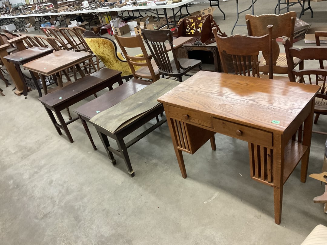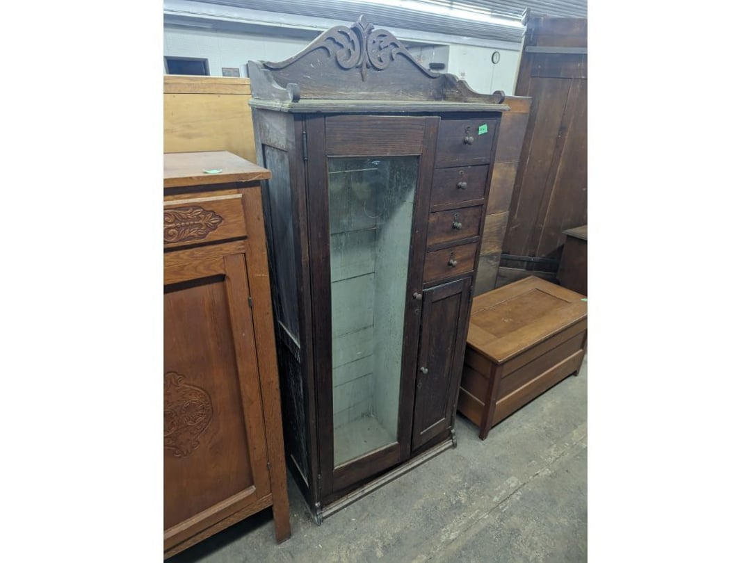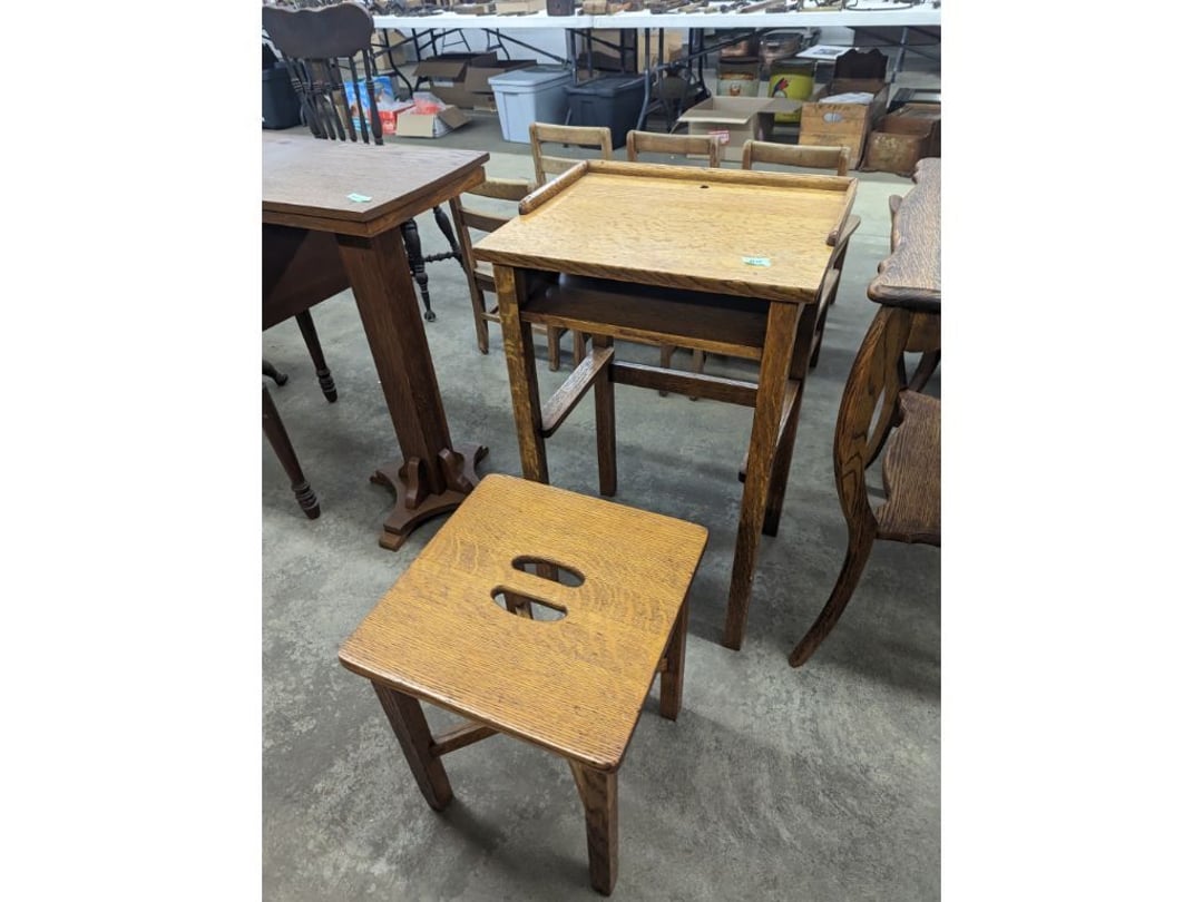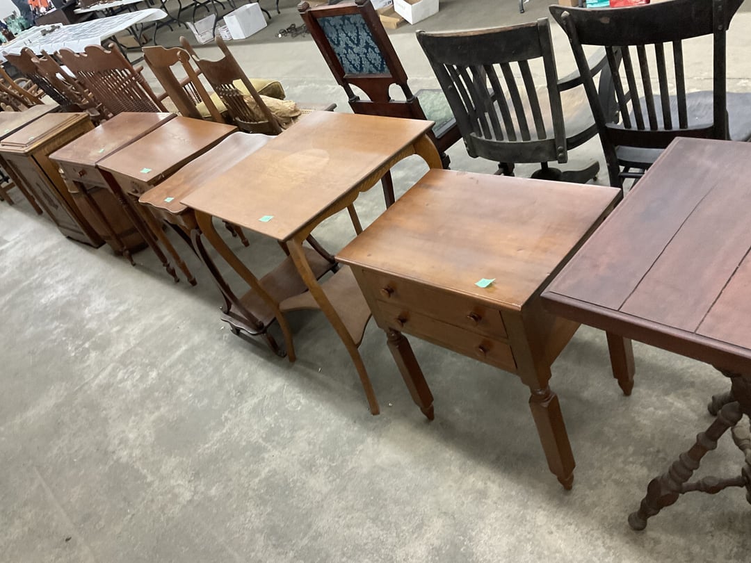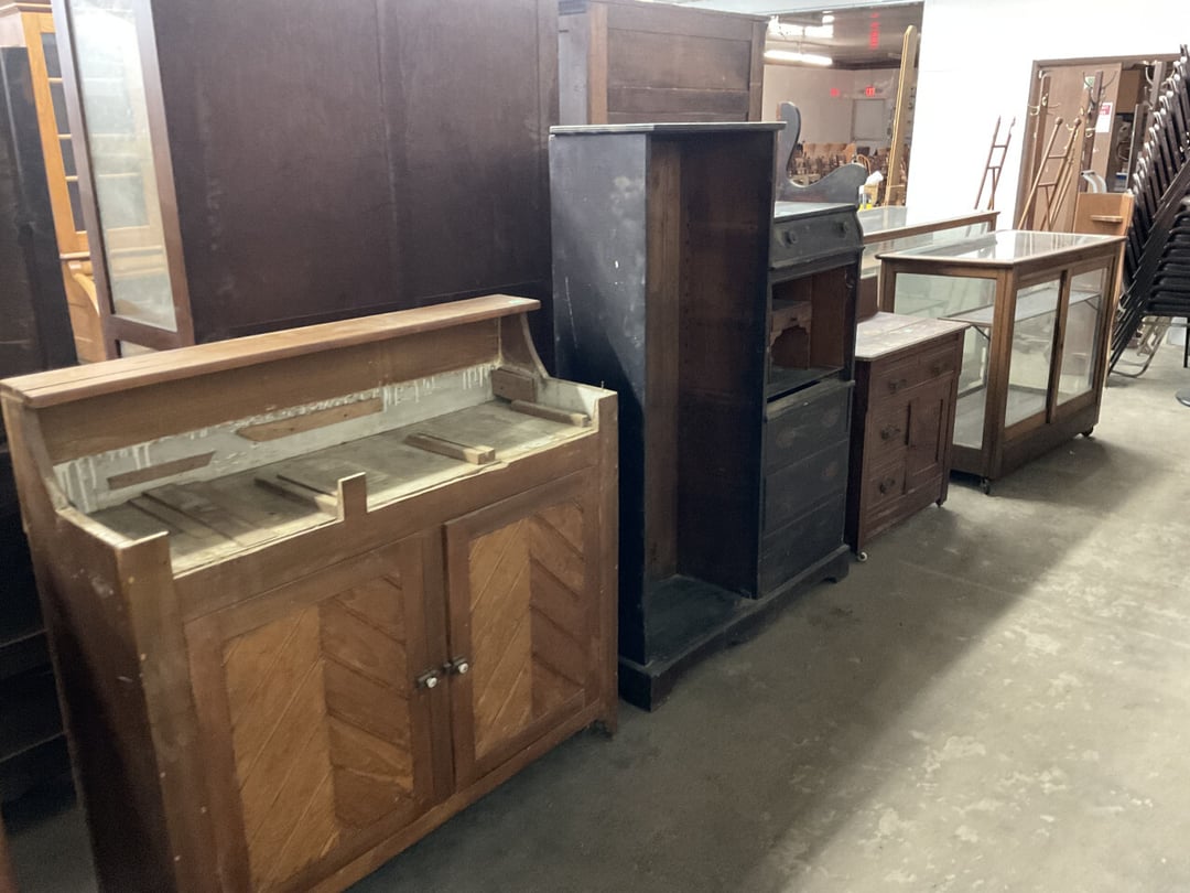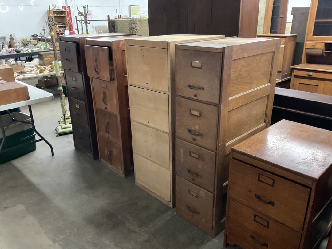 Stepback Kitchen Cabinet , 2 Door- 2 Drawer Oak Cabinet , Jelly Cupboard , Secretary Curio Cabinet- Original Finish, Buffet , Secretary Curio Cabinet- Original Finish, Oak Mantle with Mirror , Oak Mantle with Mirror , Oak Mantle, Oak Full Size Bed Frame , Walnut Queen Size Bed Frame- with Burl Inlay , Oak Full size Bed Frame , Floor Lamp with Marble , Floor Lamp with Marble , Floor Lamp with Marble , Table Lamp with Marble, "Brass" Coat Rack , 4 Drawer Oak Filing Cabinet , 4 Drawer Oak Filing Cabinet , 4 Drawer Oak Filing Cabinet , 4 Drawer Oak Filing Cabinet , 2 Drawer Oak Filing Cabinet , Oak Dresser with Mirror and glove boxes , Oak Secretary Cabinet, Oak Book Case with Glass Door , Oak Ice Box , Oak Ice Box-Painted , RCA Victor Console Radio , Oak Dresser with Mirror, Buffet (Missing Drawers and top), Secretary Curio Cabinet- Missing Parts/Mirror , Wash Stand , Oak Showcase with Glass Top , Oak Showcase with Glass Top , Kitchen Cupboard with spooning , Sliding Door Glass Display Case , 4 Drawer Dresser with Mirror, Buffet Top Piece , 4 Drawer Dresser with no mirror , Waterfall Make-up Vanity w/broken chair , 9 Drawer Oak Filing Cabinet on Pedestal, Secretary, 2 Door Oak Bookcase , Paneled Writing Desk , Kichen Cupboard , Room Divider with Vintage Rugs , Blanket Box , Vanity Dresser with Hat Box , Vintage Kitchen Cupboard with Dry Sink , Corner China Cabinet (3 pieces of glass broken), Oak Pie/Jelly Cubboard , China Cabinet w/Drawers , Wood Blanket Box , Lamp Table w/hidden storage , Wash Stand , Buffet with Mirror , Writing Desk/China Cupboard, Wash Stand , Marble Top Fern Table , Marble Top Fern Table , Marble Top Fern Table , Marble Top End Table , Sofa Table , End Table , Misc Piece (Hat Box), Misc Piece (Hat Box), Oak Easel , 2 Oak Easel , 2 Easels , 2 Hall Trees , 2 Hall Trees , 2 Hall Trees with no hooks , Cast Iron Fern Stand , 2 Pedestal Library Parlor Table , 2 Pedestal Library Parlor Table , 2 Drawer/1 Door Cabinet , Walnut Knee Hole Desk , Dropleaf Tabl e, Butter Churn with broken handle and no bottom , Bed Stool , Writing Desk -Broken , Cabinet , Dressing Screen , Oak Corner Dresser (missing mirror) , Globe-Wernicke Sectional Bookcase , Glass Door Bookcase , 4 Section Stacking Bookcase , Bookcase , Mission Oak Curio/Bookcase Cabinet , Walnut Vanity with Hat Box and Burled Inserts, Wash Stand with mirror and towel bar- Burl drawer fronts , Fern Table , Fern Table , Desk, Dropleaf Cabinet , Small Fern Stand , Small End Table with Drawer , Small Fern Stand, Small Stool and Hi-chair base , Child Desk , Fern Table , Sewing Machine Cabinet w/NO sewing machine , Nail Keg, Lamp Table with drawer , Lamp Table with drawer , Lamp Table , Fern Table , 2 Drawer End Table , Fern Table , Dropleaf End table with 2 drawers, Fern Table , Child Desk with Stool , Fern Table , Writing Desk with Chair , 2- Pedestal Fern Stands, Pedestal Fern Stand and "Duncan Phyfe" Table , 2 Pedestal Fern Stands , Serving Table-wheels do not match , Jenny Lynn Style Fern Table , Piano Bench , x2 Piano Benches, Mission Style Desk , Insert for desk, vintage sitting bench,, Church pew hymnal holders, Church pew hymnal holders, Church pew hymnal holders, 3 Various size shelving, 2 Chairs, 2 Cane Bottom Chairs, 2 Chairs, Buffet top, Antique Upholstered Chair, 4 Wood Dining Chairs, 4 Wood Dining Chairs, Pair of Antique Upholstered Chairs, 6 Childrens Chairs, Antique Chair w/ Glass Ball & Claw Feet, 3 Antique Chairs, 2 Chairs, Cane Bottom Bench, Antique Chair, Rocking Chair, Rocking Chair, Rocking Chair, Rocking Chair, Rocking Chair, High Chair, Antique Oval Table, Antique Side Table, Buffett Top Cabinet , 2 Cast Iron Treadle Sewing Machine Bases, Plate shelf, Hanging corner shelf, Hanging corner shelf, Antique Oak Hat/Coat Rack 23"x23", Antique Media display rack, Antique Spooned Mantle Clock Shelf w/Mirror, Antique rope bed w/ Cannon Balls, Ornate wall mirror, Antique child's / hired hand bed, Vintage Stained glass window, Antique "Brass" Full size bed, Antique Iron Toddler Bed w/sides, Antique "Oak" full size bed frame, Antique "Brass " Twin Bed, Antique Lawyers Book Case - needs restored, Antique 58" Roll Top Desk, Antique hardware store parts bins, Antique revolving bookcase, Antique oak office chair with casters, Danner Revolving bookcase 1876 Walnut, Antique Leather bottom Rocker & Yellow Parlor, Antique doll chair, child's rocking chair, Antique wood Highchair - needs repair , 7 Vintage dining room chairs, Vintage dressing bench and stool, 2 Vintage chairs, 5 antique Plank bottom chairs, 3 Press back chairs , 1 child's booster chair , 2 Vintage chairs and stool, 3 Antique kitchen chairs, 2 Antique chairs, Unique antique chair, Antique entryway bench with storage, 2 Unique chairs, 2 Vintage plank bottom chairs, Antique shadow box & Wood file cabinet base, 5 vintage child's chairs, 2 Vintage rockers – needs repair, Vintage plank bottom rocker & Cane rocker, 4 Vintage press back chairs, Vintage machinist chest, Antique Coffee table " Marble" top, Vintage side table - broken leg, Table leaves( 2) 8" x 48", Vintage wash stand 35 x 19 , Dining room table 46" x 52" (veneer loose), Vintage wood ironing board, 5 Dining room table legs 23 inches long, Two vintage table bases, Vintage full size spool bed w/rails, Vintage medicine cabinet with towel bar 19" x 24", Vintage medicine cabinet with towel bar, Vintage medicine cabinet with Tower bar, Vintage medicine cabinet, Vintage medicine cabinet, Vintage medicine cabinet, Vintage hanging hat box With shelf, Vintage child's wooden seat with drawer, Vintage wall mirror, Bookcase or China cabinet doors, , , , , Chair - needs reupholstered, Ice Cream Parlor Chairs & Small Table , Vintage 7' Misson Style Sofa, Ice Cream Parlor Chairs & Small Table , Vintage Oval Dropleaf Table , Vintage 5 Leg Table , Vintage Round Pedestal Table , Vintage Expandable Drop Leaf Table , Vintage 42" Round Pedestal Table, Vintage LibraryTable, Vintage Table , Vintage 48" Round Table , Vintage Sq