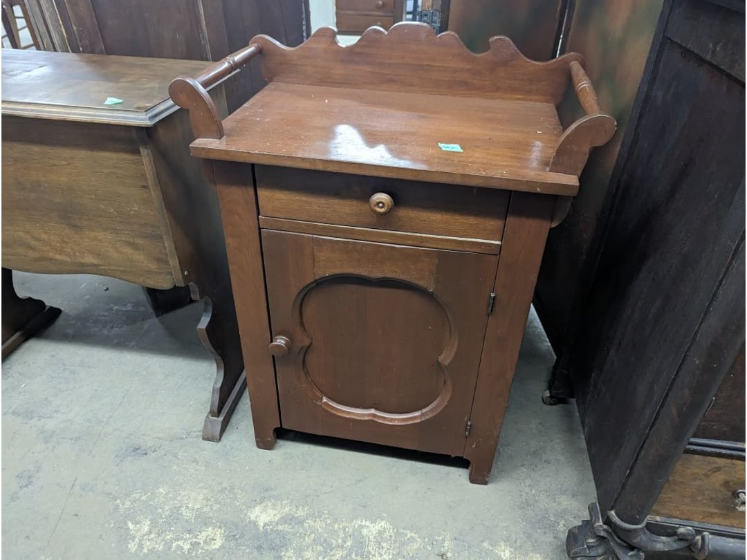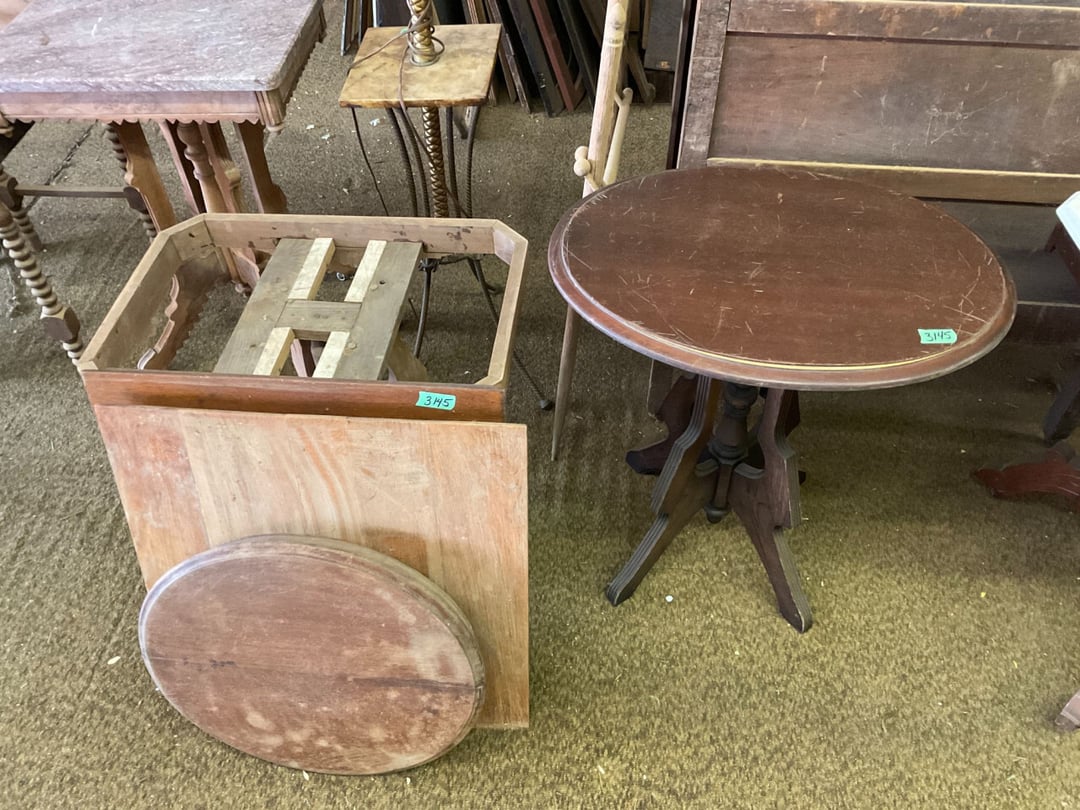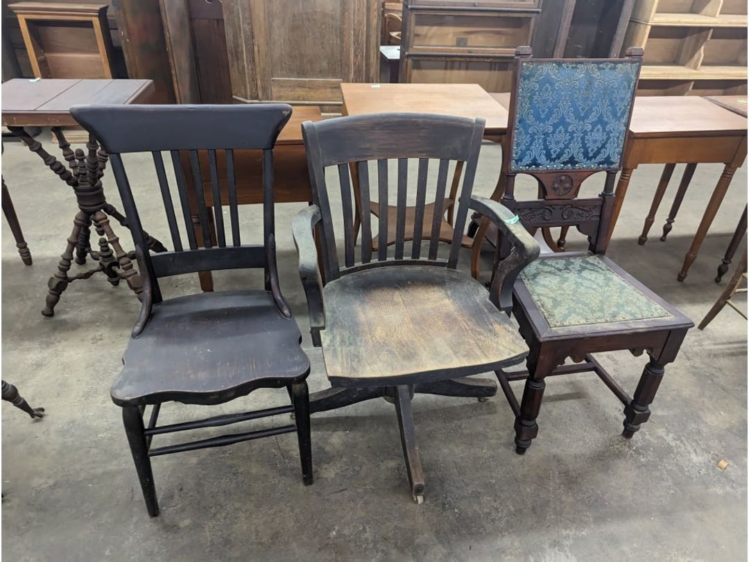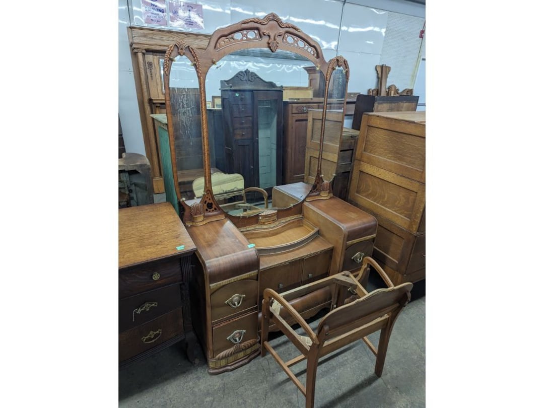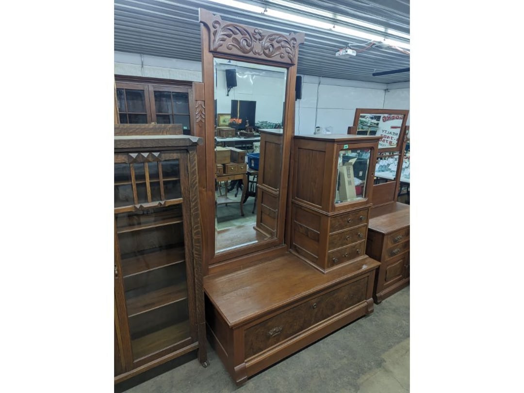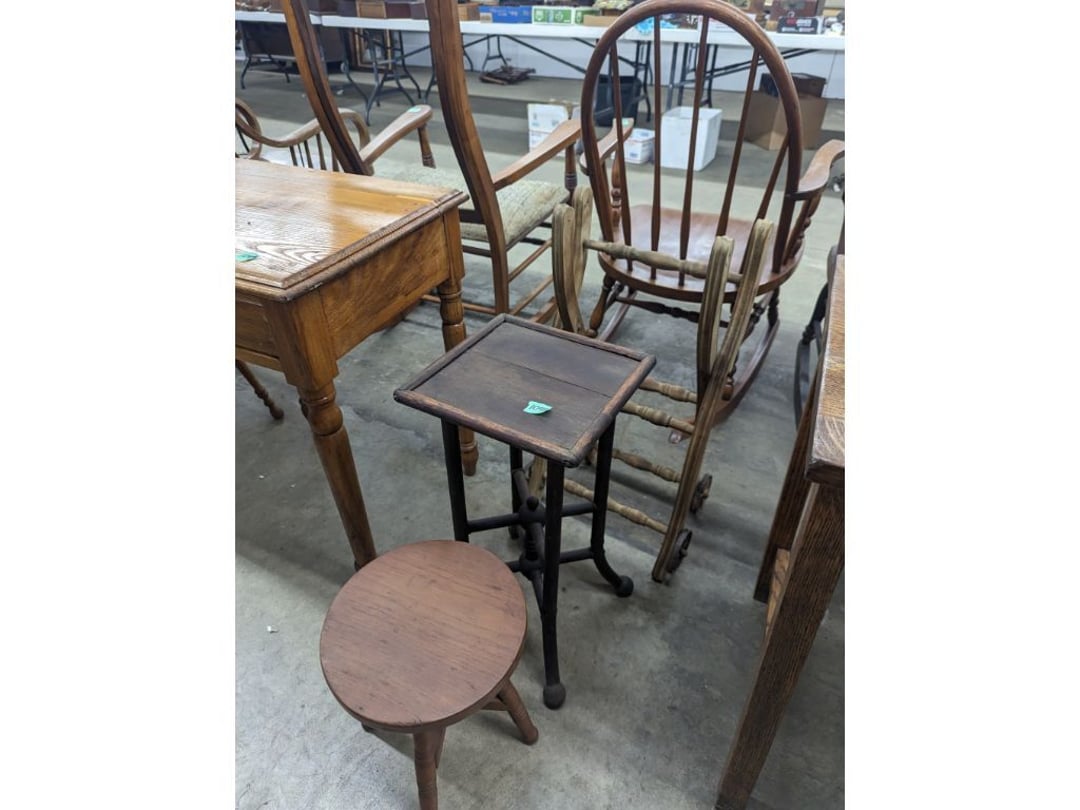 Stepback Kitchen Cabinet , 2 Door- 2 Drawer Oak Cabinet , Jelly Cupboard , Secretary Curio Cabinet- Original Finish, Buffet , Secretary Curio Cabinet- Original Finish, Oak Mantle with Mirror , Oak Mantle with Mirror , Oak Mantle, Oak Full Size Bed Frame , Walnut Queen Size Bed Frame- with Burl Inlay , Oak Full size Bed Frame , Floor Lamp with Marble , Floor Lamp with Marble , Floor Lamp with Marble , Table Lamp with Marble, "Brass" Coat Rack , 4 Drawer Oak Filing Cabinet , 4 Drawer Oak Filing Cabinet , 4 Drawer Oak Filing Cabinet , 4 Drawer Oak Filing Cabinet , 2 Drawer Oak Filing Cabinet , Oak Dresser with Mirror and glove boxes , Oak Secretary Cabinet, Oak Book Case with Glass Door , Oak Ice Box , Oak Ice Box-Painted , RCA Victor Console Radio , Oak Dresser with Mirror, Buffet (Missing Drawers and top), Secretary Curio Cabinet- Missing Parts/Mirror , Wash Stand , Oak Showcase with Glass Top , Oak Showcase with Glass Top , Kitchen Cupboard with spooning , Sliding Door Glass Display Case , 4 Drawer Dresser with Mirror, Buffet Top Piece , 4 Drawer Dresser with no mirror , Waterfall Make-up Vanity w/broken chair , 9 Drawer Oak Filing Cabinet on Pedestal, Secretary, 2 Door Oak Bookcase , Paneled Writing Desk , Kichen Cupboard , Room Divider with Vintage Rugs , Blanket Box , Vanity Dresser with Hat Box , Vintage Kitchen Cupboard with Dry Sink , Corner China Cabinet (3 pieces of glass broken), Oak Pie/Jelly Cubboard , China Cabinet w/Drawers , Wood Blanket Box , Lamp Table w/hidden storage , Wash Stand , Buffet with Mirror , Writing Desk/China Cupboard, Wash Stand , Marble Top Fern Table , Marble Top Fern Table , Marble Top Fern Table , Marble Top End Table , Sofa Table , End Table , Misc Piece (Hat Box), Misc Piece (Hat Box), Oak Easel , 2 Oak Easel , 2 Easels , 2 Hall Trees , 2 Hall Trees , 2 Hall Trees with no hooks , Cast Iron Fern Stand , 2 Pedestal Library Parlor Table , 2 Pedestal Library Parlor Table , 2 Drawer/1 Door Cabinet , Walnut Knee Hole Desk , Dropleaf Tabl e, Butter Churn with broken handle and no bottom , Bed Stool , Writing Desk -Broken , Cabinet , Dressing Screen , Oak Corner Dresser (missing mirror) , Globe-Wernicke Sectional Bookcase , Glass Door Bookcase , 4 Section Stacking Bookcase , Bookcase , Mission Oak Curio/Bookcase Cabinet , Walnut Vanity with Hat Box and Burled Inserts, Wash Stand with mirror and towel bar- Burl drawer fronts , Fern Table , Fern Table , Desk, Dropleaf Cabinet , Small Fern Stand , Small End Table with Drawer , Small Fern Stand, Small Stool and Hi-chair base , Child Desk , Fern Table , Sewing Machine Cabinet w/NO sewing machine , Nail Keg, Lamp Table with drawer , Lamp Table with drawer , Lamp Table , Fern Table , 2 Drawer End Table , Fern Table , Dropleaf End table with 2 drawers, Fern Table , Child Desk with Stool , Fern Table , Writing Desk with Chair , 2- Pedestal Fern Stands, Pedestal Fern Stand and "Duncan Phyfe" Table , 2 Pedestal Fern Stands , Serving Table-wheels do not match , Jenny Lynn Style Fern Table , Piano Bench , x2 Piano Benches, Mission Style Desk , Insert for desk, vintage sitting bench,, Church pew hymnal holders, Church pew hymnal holders, Church pew hymnal holders, 3 Various size shelving, 2 Chairs, 2 Cane Bottom Chairs, 2 Chairs, Buffet top, Antique Upholstered Chair, 4 Wood Dining Chairs, 4 Wood Dining Chairs, Pair of Antique Upholstered Chairs, 6 Childrens Chairs, Antique Chair w/ Glass Ball & Claw Feet, 3 Antique Chairs, 2 Chairs, Cane Bottom Bench, Antique Chair, Rocking Chair, Rocking Chair, Rocking Chair, Rocking Chair, Rocking Chair, High Chair, Antique Oval Table, Antique Side Table, Buffett Top Cabinet , 2 Cast Iron Treadle Sewing Machine Bases, Plate shelf, Hanging corner shelf, Hanging corner shelf, Antique Oak Hat/Coat Rack 23"x23", Antique Media display rack, Antique Spooned Mantle Clock Shelf w/Mirror, Antique rope bed w/ Cannon Balls, Ornate wall mirror, Antique child's / hired hand bed, Vintage Stained glass window, Antique "Brass" Full size bed, Antique Iron Toddler Bed w/sides, Antique "Oak" full size bed frame, Antique "Brass " Twin Bed, Antique Lawyers Book Case - needs restored, Antique 58" Roll Top Desk, Antique hardware store parts bins, Antique revolving bookcase, Antique oak office chair with casters, Danner Revolving bookcase 1876 Walnut, Antique Leather bottom Rocker & Yellow Parlor, Antique doll chair, child's rocking chair, Antique wood Highchair - needs repair , 7 Vintage dining room chairs, Vintage dressing bench and stool, 2 Vintage chairs, 5 antique Plank bottom chairs, 3 Press back chairs , 1 child's booster chair , 2 Vintage chairs and stool, 3 Antique kitchen chairs, 2 Antique chairs, Unique antique chair, Antique entryway bench with storage, 2 Unique chairs, 2 Vintage plank bottom chairs, Antique shadow box & Wood file cabinet base, 5 vintage child's chairs, 2 Vintage rockers – needs repair, Vintage plank bottom rocker & Cane rocker, 4 Vintage press back chairs, Vintage machinist chest, Antique Coffee table " Marble" top, Vintage side table - broken leg, Table leaves( 2) 8" x 48", Vintage wash stand 35 x 19 , Dining room table 46" x 52" (veneer loose), Vintage wood ironing board, 5 Dining room table legs 23 inches long, Two vintage table bases, Vintage full size spool bed w/rails, Vintage medicine cabinet with towel bar 19" x 24", Vintage medicine cabinet with towel bar, Vintage medicine cabinet with Tower bar, Vintage medicine cabinet, Vintage medicine cabinet, Vintage medicine cabinet, Vintage hanging hat box With shelf, Vintage child's wooden seat with drawer, Vintage wall mirror, Bookcase or China cabinet doors, , , , , Chair - needs reupholstered, Ice Cream Parlor Chairs & Small Table , Vintage 7' Misson Style Sofa, Ice Cream Parlor Chairs & Small Table , Vintage Oval Dropleaf Table , Vintage 5 Leg Table , Vintage Round Pedestal Table , Vintage Expandable Drop Leaf Table , Vintage 42" Round Pedestal Table, Vintage LibraryTable, Vintage Table , Vintage 48" Round Table , Vintage Sq
