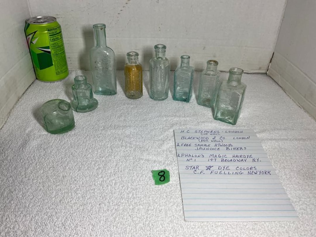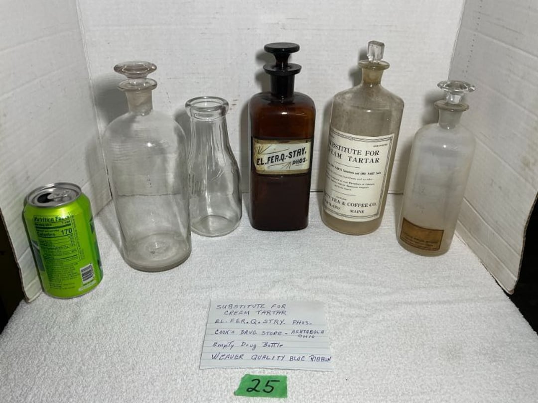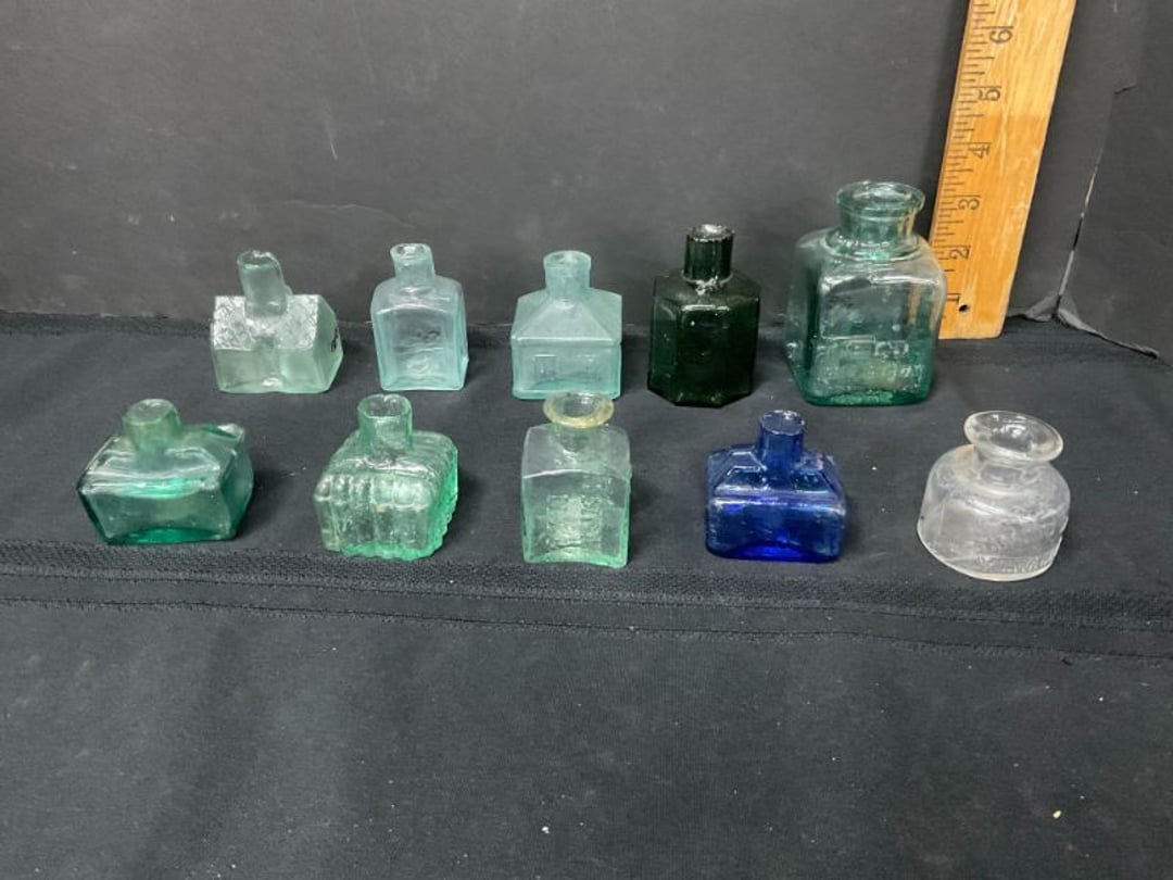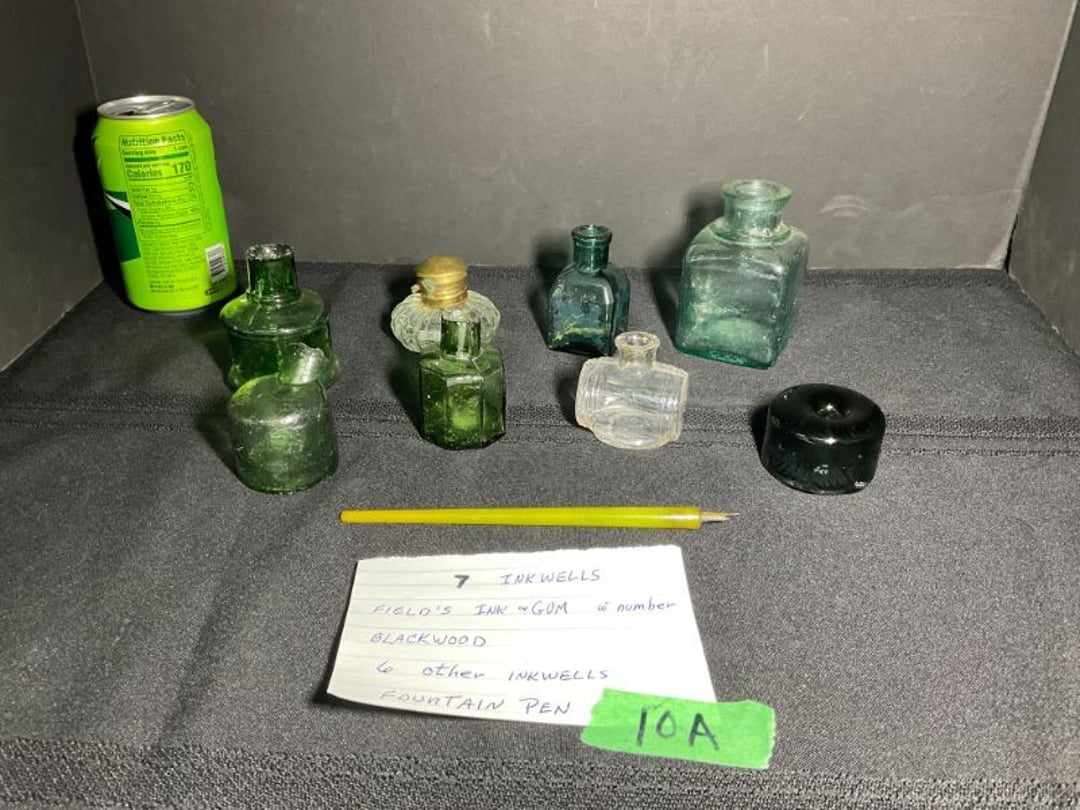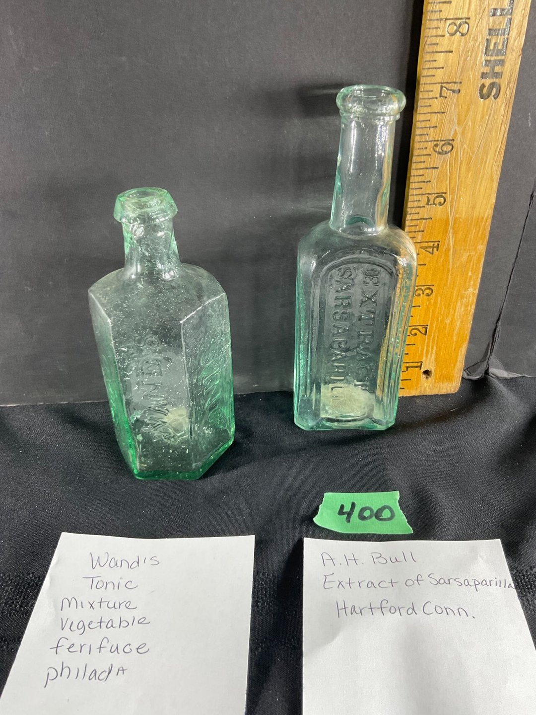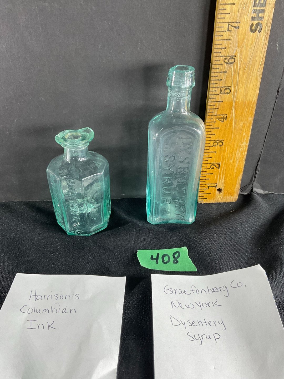 Vintage Coca-Cola Bottles, 6 Vintage Bottles, 6 Vintage Bottles, 8 Vintage Bottles, 8 Vintage Inkwells, 8 Vintage Inkwells , 8 Vintage Inkwells, 8 Vintage bottles & inkwells, 2 Vintage Seltzer bottles, 8 Vintage Inkwells, 7 Inkwells, holder, & fountain pen, 6 Sm. Vintage Bottles, 3 Shoe shaped Inkwells, 1 tiny inkwell, 6 Vintage Inkwells, 5 Vintage Bitter Bottles, 6 Vintage Bottles for hair, 4 Vintage Bottles, 6 Sm. Vintage Bottles, 5 Vintage Bottles for the Hair, 5 Vintage Bottles, 4 Vintage S.O. Richardson's Bitters Bottles, 4 Lg. Vintage Bottles , 2 Vintage Bottles - Warner's Safe Kidney Cure, 2 Vintage Bitters Bottles, 2 Vintage Bitter Bottles, 4 Lg. Vintage Medicine Bottles , 4 Vintage Bottles, 5 Vintage Bottles - 1 Wood, 1 crock, , 5 Vintage Glass jars & containers, 4 Vintage Medicine Bottles, Vintage Bottles, Jars, & salt cellars, 4 sm. Vintage Genuine Essence Bottles, 4 sm. Vintage Bottles, 2 Vintage Gun Bottles - 1 Kolt, 1 unmarked brown, 3 Wood (cracked) & Plastic Inkwells, 10" Cast Iron Boston Terrier Doorstop, 7 Vintage Metal bells, 6 Vintage Brass & Metal bells, 7 1/2" Vintage school bell, 6" decorative bell, 8" Vintage School Bell, 7 1/2" Vintage School Bell, 5" School bell, Metal & Brass Candle sticks & wall sconces , Vintage Candlestick holder & sniffer , Vintage Brass Inkwell w/ crystal well & horn, Vintage decor - 2 school slates, , 5 Vintage Porth Pies pans, 5 Vintage Porth Pies pans, 5 Vintage Porth Pies pans, 1930's Cast Iron Telegraph Inkwell , 6 Vintage Bottles - J.C. Wadleich, , 6 Vintage Bottles - Toothwash, , 6 Vintage Bottles - Dr. Tobias, , 5 Vintage Bottles - Coffeen's Linament,, 5 Vintage Bottles - Henery's, Moyer's bros., , 6 Vintage Bottles - G.W. Davis, , 6 Vintage Bottles - Medicated Worm Syrup, , 6 Vintage Bottles - Spalding 's Glue,, 6 Vintage Bottles - Anderson's Dermador, , 6 Vintage Bottles - C. Ellis & Co., Ether, , 6 Vintage Bottles - Buchan's Balsm of Life, , 6 Vintage Bottles - Spalding Glue, , 5 Vintage Bottles - S.O. Dunbar, , Pharmaceutical Beaker, Blue Pharma. Bottle, 7 Vintage Bottles - Lyon's Hair Product, , 7 Vintage Bottles - Jacob's Cholera, , Vintage Lighthouse bottle, Green bottle, , 4 Vintage Bottles - Collosol Ferromalt, , Vintage Handblown beaker, 2 Fitch bottles, 3 Vintage brown bottles - Paskola, Thyme,, 2 Vintage Green Bottles - J.J.W. Peters, , 2 Vintage Green Bottles , 3 Vintage Bottles - 2 Amber, 1 Green, 3 Vintage Bottles - Hartwig Kanto (white),, 3 Vintage Bottles - Carter's (green), , 3 Vintage Bottles - Carters (blue), , 3 Vintage Ink Bottles - Keller (clear) , 3 Vintage Bottles - Carter's (blue) w/ wooden spout, 3 Vintage Ink Bottles - Carter's (aqua), , 3 Vintage Ink Bottles - Underwood's Ink (cobalt), 3 Vintage Ink Bottles - Stafford's (green) , 3 Lg. Vintage Ink Bottles - Haley (pink), , 3 Vintage Bottles - Mouse trap exterminator, , 3 Vintage Ink Bottles - 2 S.S. Stafford's (cobalt), , 3 Sm. Vintage Ink Bottles - unmarked, 6 Vintage Ink Bottles - Harrison, Carter's, , 11 Vintage Inkwells - 1 blue china, , 11 Vintage Glass inkwells, 11 Vintage Glass inkwells, 11 Vintage Glass inkwells, 10 Vintage Glass inkwells, 10 Vintage Glass inkwells - 4 shoe wells, 10 Vintage Glass inkwells , 10 Vintage Glass inkwells, 10 Vintage Glass inkwells - 3 shoe shaped, 8 Vintage Glass inkwells , 9 Vintage Inkwells - 1 wood & glass , 10 Vintage Glass inkwells, 10 Vintage Glass inkwells , 8 Vintage Glass inkwells, 10 Vintage Glass inkwells, 10 Vintage Glass inkwells - pink, amber, , 10 Vintage Glass inkwells, 10 Vintage Glass inkwells - pink, purple, , 10 Vintage Glass inkwells - purple, green, , 10 Vintage Glass inkwells - pink, green, , 10 Vintage Glass inkwells - blue, green, , Vintage Bottles - various greens, Vintage Bottle - Dr. Stephen Jewett's, Vintage Bottle - Holtzermann's, Vintage Bottle - St. Drakes 1860 , Pepsin Bitters RW Davis Drug Co. bottle, Dr. Russell Med. Co. - Bitters Bottle, 2 - Dr. J. Hostetter's Stomach Bitters Bottle, Dr. H.C. Stewarts Tonic Bitters Bottle, S.T. Drakes 1860 Plantation Bitters Bottle, Nation Bitters Bottle (corn), 1872 Doyles Hop Bitters bottle, 1872 Doyles Hop Bitters bottle, 1872 Doyles Hop Bitters bottle, 1872 Doyles Hop Bitters bottle, 1872 Doyles Hop Bitters bottle, S.T. Drakes Bitters Bottle , Indian Restorative Bitters bottle, Dr. J. Sweet's Bitters Strengthening bottle, Chips Land Hop Bitters Co. bottle, Dr. Langley's Root & Herb Bitters Bottle, Aromatic Bitters Dr. Blakes, NY bottle, Celebrated Health Restoring Bitters, , Vintage Amber Tippecanoe bottle, Vintage Amber Tippecanoe bottle, Browns Iron Bitters Bottle , Chamberlains & Co. Curacoa Bitters , Old Hickory Celebrated Stomach Bitters, Yerba Buena Bitters bottle, Dr. CD Warners Bitters bottle, 1860 Plantation X Bitters bottle, S.T. Drakes 1860 Plantation Bitters bottle , Lash's Bitters Sample bottle , Congress & Empire Spring Co. , Congress & Empire Spring Co. , Davids Black Bottle - NY, Vintage Green Johann Hoff bottle, Vintage Amber Hathorn Spring bottle, Green W. Morton Bottle, Property of Rochester Brew Co. bottle, Dr. Harters Wild Cherry Bitters bottle, Vintage Green Patent Bottle, Vintage Amber I. W. Harper bottle , Lg. Dr. Harters Wild Cherry Bitters bottle, Lg. Dr. Harters Wild Cherry Bitters bottle, Hollander Drug Co. bottle, Vintage XXX Dandelion Bitters, West India Stomach Bitters , Ponds Kidney & Liver Bitters bottle, Dr. J. Hostetter's Stomach Bitters Bottle, Dr. J. Hostetter's Stomach Bitters Bottle, Dr. J. Hostetter's Stomach Bitters Bottle, Dr. J. Hostetter's Stomach Bitters Bottle, Dr. J. Hostetter's Stomach Bitters Bottle, Dr. J. Hostetter's Stomach Bitters Bottle, Dr. J. Hostetter's Stomach Bitters Bottle, Dr. J. Hostetter's Stomach Bitters Bottle, Dr. J. Hostetter's Stomach Bitters Bottle, Dr. J. Hostetter's Stomach Bitters Bottle, Dr. J. Hostetter's Stomach Bitters Bottle, Dr. J. Hostetter's Stomach Bitters Bottle, Dr. J. Hostetter's Stomach Bitters Bottle, Dr. J. Hostetter's Stomach Bitters Bottle, Dr. J. Hostette