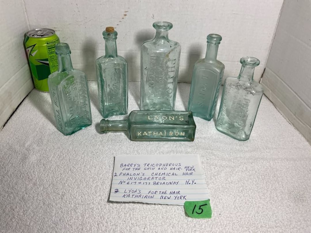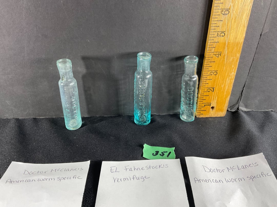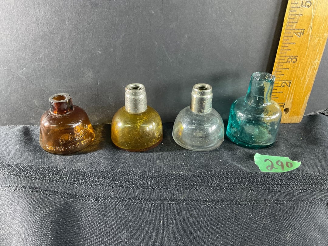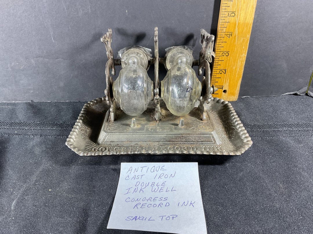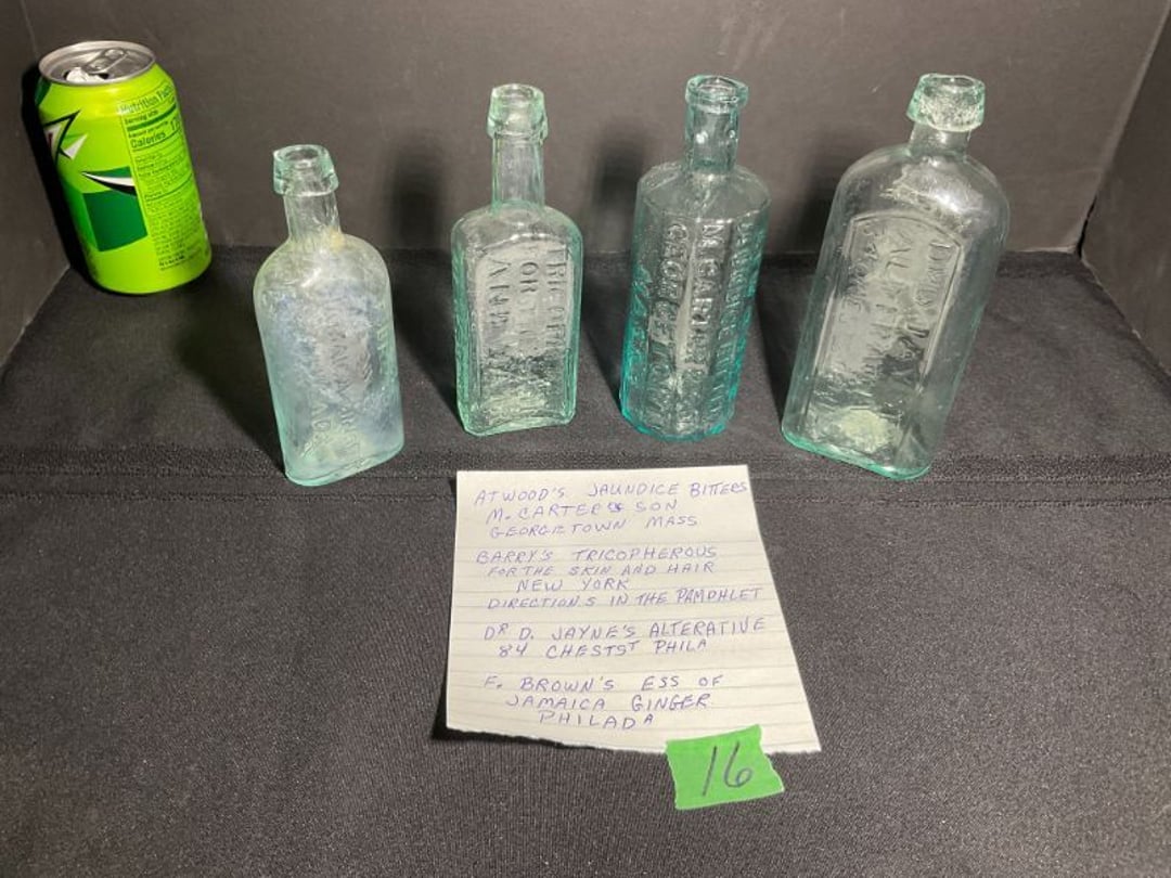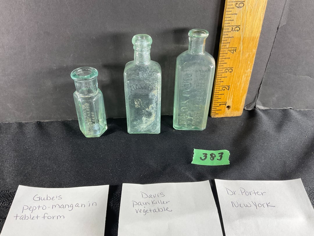 Vintage Coca-Cola Bottles, 6 Vintage Bottles, 6 Vintage Bottles, 8 Vintage Bottles, 8 Vintage Inkwells, 8 Vintage Inkwells , 8 Vintage Inkwells, 8 Vintage bottles & inkwells, 2 Vintage Seltzer bottles, 8 Vintage Inkwells, 7 Inkwells, holder, & fountain pen, 6 Sm. Vintage Bottles, 3 Shoe shaped Inkwells, 1 tiny inkwell, 6 Vintage Inkwells, 5 Vintage Bitter Bottles, 6 Vintage Bottles for hair, 4 Vintage Bottles, 6 Sm. Vintage Bottles, 5 Vintage Bottles for the Hair, 5 Vintage Bottles, 4 Vintage S.O. Richardson's Bitters Bottles, 4 Lg. Vintage Bottles , 2 Vintage Bottles - Warner's Safe Kidney Cure, 2 Vintage Bitters Bottles, 2 Vintage Bitter Bottles, 4 Lg. Vintage Medicine Bottles , 4 Vintage Bottles, 5 Vintage Bottles - 1 Wood, 1 crock, , 5 Vintage Glass jars & containers, 4 Vintage Medicine Bottles, Vintage Bottles, Jars, & salt cellars, 4 sm. Vintage Genuine Essence Bottles, 4 sm. Vintage Bottles, 2 Vintage Gun Bottles - 1 Kolt, 1 unmarked brown, 3 Wood (cracked) & Plastic Inkwells, 10" Cast Iron Boston Terrier Doorstop, 7 Vintage Metal bells, 6 Vintage Brass & Metal bells, 7 1/2" Vintage school bell, 6" decorative bell, 8" Vintage School Bell, 7 1/2" Vintage School Bell, 5" School bell, Metal & Brass Candle sticks & wall sconces , Vintage Candlestick holder & sniffer , Vintage Brass Inkwell w/ crystal well & horn, Vintage decor - 2 school slates, , 5 Vintage Porth Pies pans, 5 Vintage Porth Pies pans, 5 Vintage Porth Pies pans, 1930's Cast Iron Telegraph Inkwell , 6 Vintage Bottles - J.C. Wadleich, , 6 Vintage Bottles - Toothwash, , 6 Vintage Bottles - Dr. Tobias, , 5 Vintage Bottles - Coffeen's Linament,, 5 Vintage Bottles - Henery's, Moyer's bros., , 6 Vintage Bottles - G.W. Davis, , 6 Vintage Bottles - Medicated Worm Syrup, , 6 Vintage Bottles - Spalding 's Glue,, 6 Vintage Bottles - Anderson's Dermador, , 6 Vintage Bottles - C. Ellis & Co., Ether, , 6 Vintage Bottles - Buchan's Balsm of Life, , 6 Vintage Bottles - Spalding Glue, , 5 Vintage Bottles - S.O. Dunbar, , Pharmaceutical Beaker, Blue Pharma. Bottle, 7 Vintage Bottles - Lyon's Hair Product, , 7 Vintage Bottles - Jacob's Cholera, , Vintage Lighthouse bottle, Green bottle, , 4 Vintage Bottles - Collosol Ferromalt, , Vintage Handblown beaker, 2 Fitch bottles, 3 Vintage brown bottles - Paskola, Thyme,, 2 Vintage Green Bottles - J.J.W. Peters, , 2 Vintage Green Bottles , 3 Vintage Bottles - 2 Amber, 1 Green, 3 Vintage Bottles - Hartwig Kanto (white),, 3 Vintage Bottles - Carter's (green), , 3 Vintage Bottles - Carters (blue), , 3 Vintage Ink Bottles - Keller (clear) , 3 Vintage Bottles - Carter's (blue) w/ wooden spout, 3 Vintage Ink Bottles - Carter's (aqua), , 3 Vintage Ink Bottles - Underwood's Ink (cobalt), 3 Vintage Ink Bottles - Stafford's (green) , 3 Lg. Vintage Ink Bottles - Haley (pink), , 3 Vintage Bottles - Mouse trap exterminator, , 3 Vintage Ink Bottles - 2 S.S. Stafford's (cobalt), , 3 Sm. Vintage Ink Bottles - unmarked, 6 Vintage Ink Bottles - Harrison, Carter's, , 11 Vintage Inkwells - 1 blue china, , 11 Vintage Glass inkwells, 11 Vintage Glass inkwells, 11 Vintage Glass inkwells, 10 Vintage Glass inkwells, 10 Vintage Glass inkwells - 4 shoe wells, 10 Vintage Glass inkwells , 10 Vintage Glass inkwells, 10 Vintage Glass inkwells - 3 shoe shaped, 8 Vintage Glass inkwells , 9 Vintage Inkwells - 1 wood & glass , 10 Vintage Glass inkwells, 10 Vintage Glass inkwells , 8 Vintage Glass inkwells, 10 Vintage Glass inkwells, 10 Vintage Glass inkwells - pink, amber, , 10 Vintage Glass inkwells, 10 Vintage Glass inkwells - pink, purple, , 10 Vintage Glass inkwells - purple, green, , 10 Vintage Glass inkwells - pink, green, , 10 Vintage Glass inkwells - blue, green, , Vintage Bottles - various greens, Vintage Bottle - Dr. Stephen Jewett's, Vintage Bottle - Holtzermann's, Vintage Bottle - St. Drakes 1860 , Pepsin Bitters RW Davis Drug Co. bottle, Dr. Russell Med. Co. - Bitters Bottle, 2 - Dr. J. Hostetter's Stomach Bitters Bottle, Dr. H.C. Stewarts Tonic Bitters Bottle, S.T. Drakes 1860 Plantation Bitters Bottle, Nation Bitters Bottle (corn), 1872 Doyles Hop Bitters bottle, 1872 Doyles Hop Bitters bottle, 1872 Doyles Hop Bitters bottle, 1872 Doyles Hop Bitters bottle, 1872 Doyles Hop Bitters bottle, S.T. Drakes Bitters Bottle , Indian Restorative Bitters bottle, Dr. J. Sweet's Bitters Strengthening bottle, Chips Land Hop Bitters Co. bottle, Dr. Langley's Root & Herb Bitters Bottle, Aromatic Bitters Dr. Blakes, NY bottle, Celebrated Health Restoring Bitters, , Vintage Amber Tippecanoe bottle, Vintage Amber Tippecanoe bottle, Browns Iron Bitters Bottle , Chamberlains & Co. Curacoa Bitters , Old Hickory Celebrated Stomach Bitters, Yerba Buena Bitters bottle, Dr. CD Warners Bitters bottle, 1860 Plantation X Bitters bottle, S.T. Drakes 1860 Plantation Bitters bottle , Lash's Bitters Sample bottle , Congress & Empire Spring Co. , Congress & Empire Spring Co. , Davids Black Bottle - NY, Vintage Green Johann Hoff bottle, Vintage Amber Hathorn Spring bottle, Green W. Morton Bottle, Property of Rochester Brew Co. bottle, Dr. Harters Wild Cherry Bitters bottle, Vintage Green Patent Bottle, Vintage Amber I. W. Harper bottle , Lg. Dr. Harters Wild Cherry Bitters bottle, Lg. Dr. Harters Wild Cherry Bitters bottle, Hollander Drug Co. bottle, Vintage XXX Dandelion Bitters, West India Stomach Bitters , Ponds Kidney & Liver Bitters bottle, Dr. J. Hostetter's Stomach Bitters Bottle, Dr. J. Hostetter's Stomach Bitters Bottle, Dr. J. Hostetter's Stomach Bitters Bottle, Dr. J. Hostetter's Stomach Bitters Bottle, Dr. J. Hostetter's Stomach Bitters Bottle, Dr. J. Hostetter's Stomach Bitters Bottle, Dr. J. Hostetter's Stomach Bitters Bottle, Dr. J. Hostetter's Stomach Bitters Bottle, Dr. J. Hostetter's Stomach Bitters Bottle, Dr. J. Hostetter's Stomach Bitters Bottle, Dr. J. Hostetter's Stomach Bitters Bottle, Dr. J. Hostetter's Stomach Bitters Bottle, Dr. J. Hostetter's Stomach Bitters Bottle, Dr. J. Hostetter's Stomach Bitters Bottle, Dr. J. Hostette