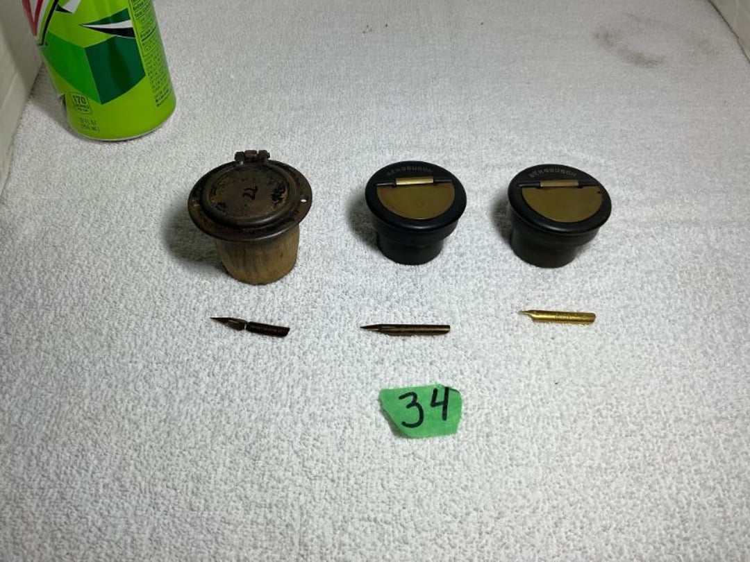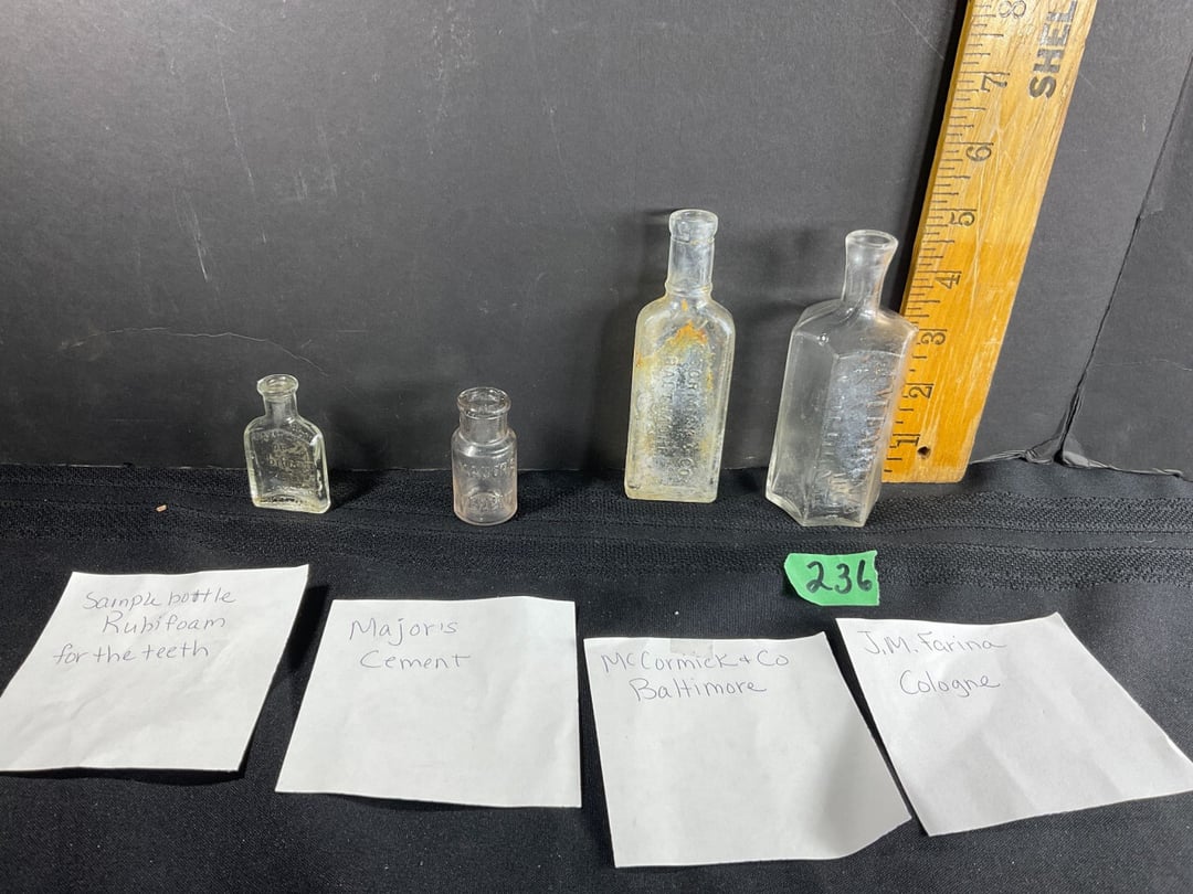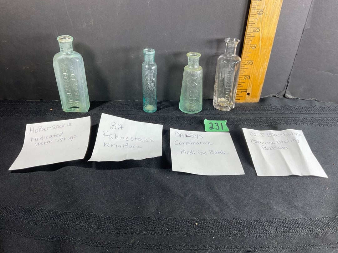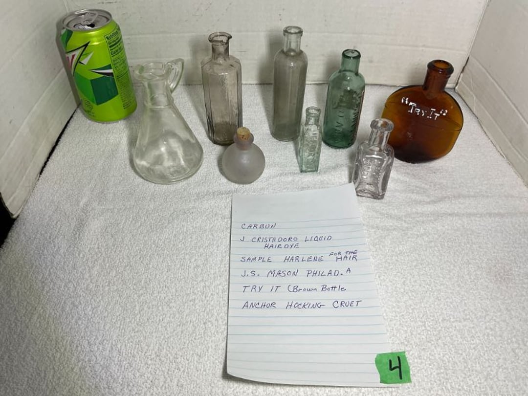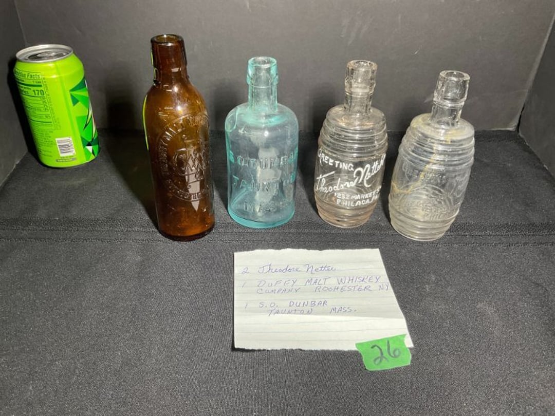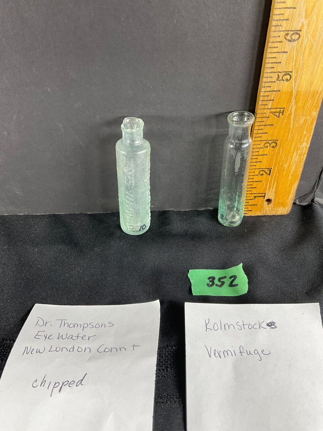 Vintage Coca-Cola Bottles, 6 Vintage Bottles, 6 Vintage Bottles, 8 Vintage Bottles, 8 Vintage Inkwells, 8 Vintage Inkwells , 8 Vintage Inkwells, 8 Vintage bottles & inkwells, 2 Vintage Seltzer bottles, 8 Vintage Inkwells, 7 Inkwells, holder, & fountain pen, 6 Sm. Vintage Bottles, 3 Shoe shaped Inkwells, 1 tiny inkwell, 6 Vintage Inkwells, 5 Vintage Bitter Bottles, 6 Vintage Bottles for hair, 4 Vintage Bottles, 6 Sm. Vintage Bottles, 5 Vintage Bottles for the Hair, 5 Vintage Bottles, 4 Vintage S.O. Richardson's Bitters Bottles, 4 Lg. Vintage Bottles , 2 Vintage Bottles - Warner's Safe Kidney Cure, 2 Vintage Bitters Bottles, 2 Vintage Bitter Bottles, 4 Lg. Vintage Medicine Bottles , 4 Vintage Bottles, 5 Vintage Bottles - 1 Wood, 1 crock, , 5 Vintage Glass jars & containers, 4 Vintage Medicine Bottles, Vintage Bottles, Jars, & salt cellars, 4 sm. Vintage Genuine Essence Bottles, 4 sm. Vintage Bottles, 2 Vintage Gun Bottles - 1 Kolt, 1 unmarked brown, 3 Wood (cracked) & Plastic Inkwells, 10" Cast Iron Boston Terrier Doorstop, 7 Vintage Metal bells, 6 Vintage Brass & Metal bells, 7 1/2" Vintage school bell, 6" decorative bell, 8" Vintage School Bell, 7 1/2" Vintage School Bell, 5" School bell, Metal & Brass Candle sticks & wall sconces , Vintage Candlestick holder & sniffer , Vintage Brass Inkwell w/ crystal well & horn, Vintage decor - 2 school slates, , 5 Vintage Porth Pies pans, 5 Vintage Porth Pies pans, 5 Vintage Porth Pies pans, 1930's Cast Iron Telegraph Inkwell , 6 Vintage Bottles - J.C. Wadleich, , 6 Vintage Bottles - Toothwash, , 6 Vintage Bottles - Dr. Tobias, , 5 Vintage Bottles - Coffeen's Linament,, 5 Vintage Bottles - Henery's, Moyer's bros., , 6 Vintage Bottles - G.W. Davis, , 6 Vintage Bottles - Medicated Worm Syrup, , 6 Vintage Bottles - Spalding 's Glue,, 6 Vintage Bottles - Anderson's Dermador, , 6 Vintage Bottles - C. Ellis & Co., Ether, , 6 Vintage Bottles - Buchan's Balsm of Life, , 6 Vintage Bottles - Spalding Glue, , 5 Vintage Bottles - S.O. Dunbar, , Pharmaceutical Beaker, Blue Pharma. Bottle, 7 Vintage Bottles - Lyon's Hair Product, , 7 Vintage Bottles - Jacob's Cholera, , Vintage Lighthouse bottle, Green bottle, , 4 Vintage Bottles - Collosol Ferromalt, , Vintage Handblown beaker, 2 Fitch bottles, 3 Vintage brown bottles - Paskola, Thyme,, 2 Vintage Green Bottles - J.J.W. Peters, , 2 Vintage Green Bottles , 3 Vintage Bottles - 2 Amber, 1 Green, 3 Vintage Bottles - Hartwig Kanto (white),, 3 Vintage Bottles - Carter's (green), , 3 Vintage Bottles - Carters (blue), , 3 Vintage Ink Bottles - Keller (clear) , 3 Vintage Bottles - Carter's (blue) w/ wooden spout, 3 Vintage Ink Bottles - Carter's (aqua), , 3 Vintage Ink Bottles - Underwood's Ink (cobalt), 3 Vintage Ink Bottles - Stafford's (green) , 3 Lg. Vintage Ink Bottles - Haley (pink), , 3 Vintage Bottles - Mouse trap exterminator, , 3 Vintage Ink Bottles - 2 S.S. Stafford's (cobalt), , 3 Sm. Vintage Ink Bottles - unmarked, 6 Vintage Ink Bottles - Harrison, Carter's, , 11 Vintage Inkwells - 1 blue china, , 11 Vintage Glass inkwells, 11 Vintage Glass inkwells, 11 Vintage Glass inkwells, 10 Vintage Glass inkwells, 10 Vintage Glass inkwells - 4 shoe wells, 10 Vintage Glass inkwells , 10 Vintage Glass inkwells, 10 Vintage Glass inkwells - 3 shoe shaped, 8 Vintage Glass inkwells , 9 Vintage Inkwells - 1 wood & glass , 10 Vintage Glass inkwells, 10 Vintage Glass inkwells , 8 Vintage Glass inkwells, 10 Vintage Glass inkwells, 10 Vintage Glass inkwells - pink, amber, , 10 Vintage Glass inkwells, 10 Vintage Glass inkwells - pink, purple, , 10 Vintage Glass inkwells - purple, green, , 10 Vintage Glass inkwells - pink, green, , 10 Vintage Glass inkwells - blue, green, , Vintage Bottles - various greens, Vintage Bottle - Dr. Stephen Jewett's, Vintage Bottle - Holtzermann's, Vintage Bottle - St. Drakes 1860 , Pepsin Bitters RW Davis Drug Co. bottle, Dr. Russell Med. Co. - Bitters Bottle, 2 - Dr. J. Hostetter's Stomach Bitters Bottle, Dr. H.C. Stewarts Tonic Bitters Bottle, S.T. Drakes 1860 Plantation Bitters Bottle, Nation Bitters Bottle (corn), 1872 Doyles Hop Bitters bottle, 1872 Doyles Hop Bitters bottle, 1872 Doyles Hop Bitters bottle, 1872 Doyles Hop Bitters bottle, 1872 Doyles Hop Bitters bottle, S.T. Drakes Bitters Bottle , Indian Restorative Bitters bottle, Dr. J. Sweet's Bitters Strengthening bottle, Chips Land Hop Bitters Co. bottle, Dr. Langley's Root & Herb Bitters Bottle, Aromatic Bitters Dr. Blakes, NY bottle, Celebrated Health Restoring Bitters, , Vintage Amber Tippecanoe bottle, Vintage Amber Tippecanoe bottle, Browns Iron Bitters Bottle , Chamberlains & Co. Curacoa Bitters , Old Hickory Celebrated Stomach Bitters, Yerba Buena Bitters bottle, Dr. CD Warners Bitters bottle, 1860 Plantation X Bitters bottle, S.T. Drakes 1860 Plantation Bitters bottle , Lash's Bitters Sample bottle , Congress & Empire Spring Co. , Congress & Empire Spring Co. , Davids Black Bottle - NY, Vintage Green Johann Hoff bottle, Vintage Amber Hathorn Spring bottle, Green W. Morton Bottle, Property of Rochester Brew Co. bottle, Dr. Harters Wild Cherry Bitters bottle, Vintage Green Patent Bottle, Vintage Amber I. W. Harper bottle , Lg. Dr. Harters Wild Cherry Bitters bottle, Lg. Dr. Harters Wild Cherry Bitters bottle, Hollander Drug Co. bottle, Vintage XXX Dandelion Bitters, West India Stomach Bitters , Ponds Kidney & Liver Bitters bottle, Dr. J. Hostetter's Stomach Bitters Bottle, Dr. J. Hostetter's Stomach Bitters Bottle, Dr. J. Hostetter's Stomach Bitters Bottle, Dr. J. Hostetter's Stomach Bitters Bottle, Dr. J. Hostetter's Stomach Bitters Bottle, Dr. J. Hostetter's Stomach Bitters Bottle, Dr. J. Hostetter's Stomach Bitters Bottle, Dr. J. Hostetter's Stomach Bitters Bottle, Dr. J. Hostetter's Stomach Bitters Bottle, Dr. J. Hostetter's Stomach Bitters Bottle, Dr. J. Hostetter's Stomach Bitters Bottle, Dr. J. Hostetter's Stomach Bitters Bottle, Dr. J. Hostetter's Stomach Bitters Bottle, Dr. J. Hostetter's Stomach Bitters Bottle, Dr. J. Hostette