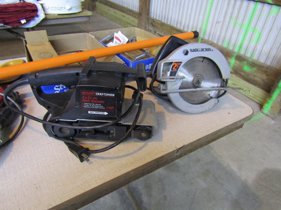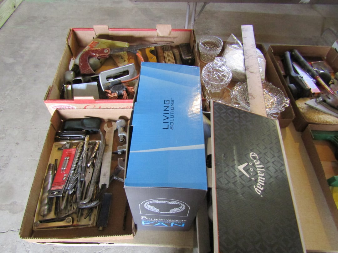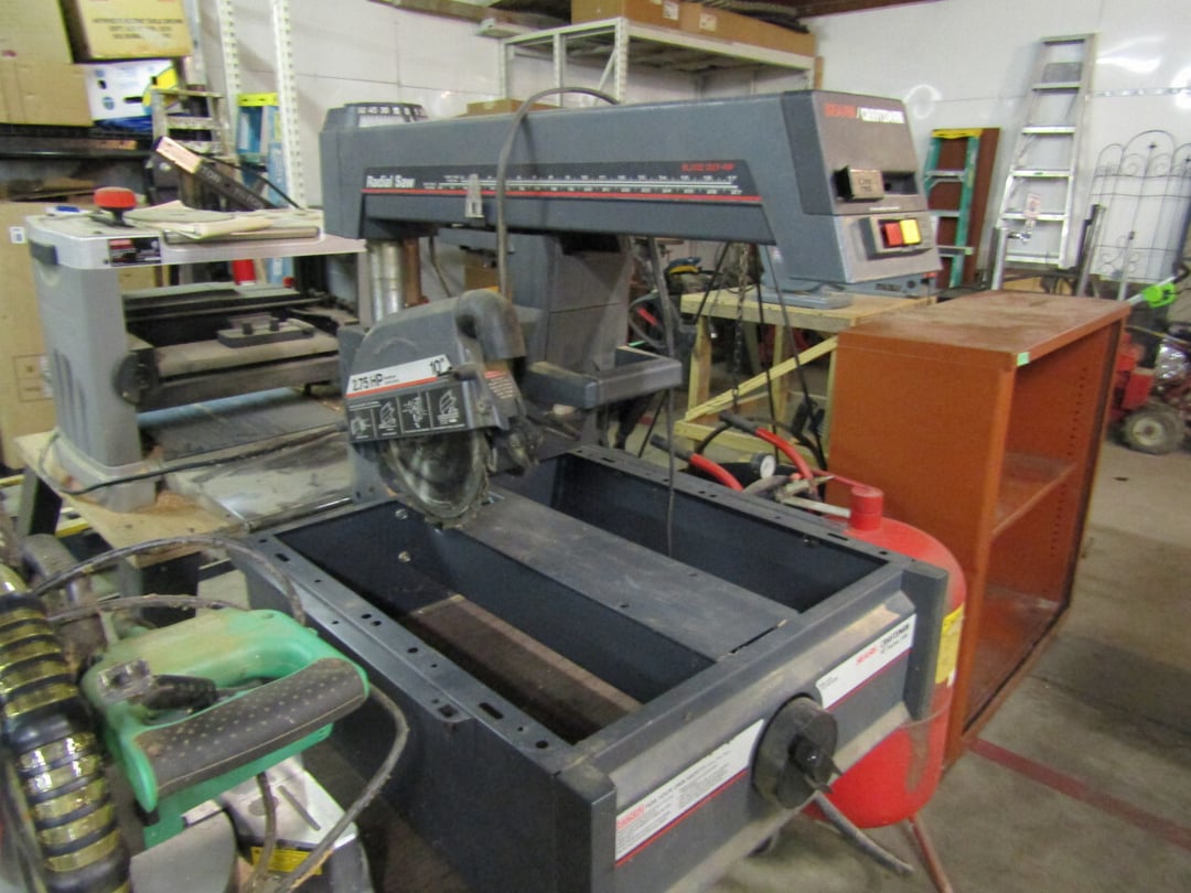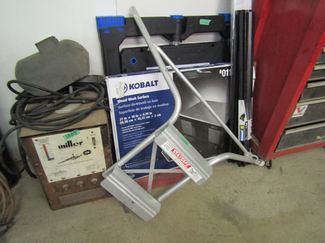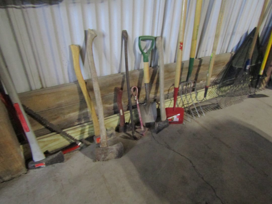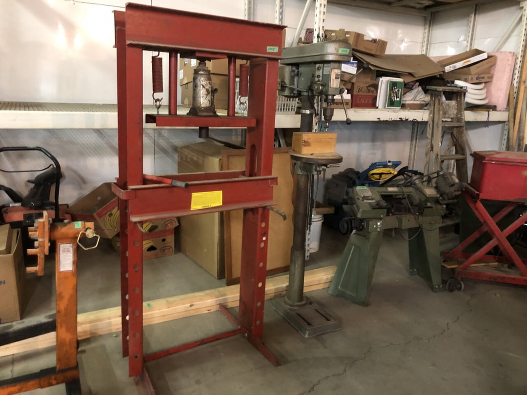 Craftsman Router - Adams Road Grader - Craftsman Watering Tractor, 4.5" Vise, Weed Eater/Trimmer - Troybilt weed eater - Craftsman Scroll Saw - (2) Craftsman top and bottom roll around tool boxes - Century Battery Charger - Engine Stand - 2 ton Folding Hydrolic engine hoist - wooden rolling cart - tap and die - misc. screw drivers - airsander - calipers - (2) Craftsman Tool Benches - small toolbox w/ misc bolts & drill bits - Porter Cable Bet Sander - Jig Saw - Cooling system pressure tester (powerbuilt) - digital welding helmet - generator - semi signal cylinder air lift - tap machine - die makers cupboard - sandblaster - mig welder (Miller) - arc welder - wire fed welder - weldmate - air hose - hydraulic press - bandsaw - parts washer - drill press & bits - lathe - metal lather w/ bits - Delta 6” Bench Jointer Performax Band Saw Performax jigsawDyna-Glo Salamander Heater Craftsman 13” Planer Hitachi C10FL Table Saw Hitachi C10FCH Compound SawPerformax Belt Disc Sander Craftsman 10” Radial Arm SawDelta 8” Bench Grinder Charge 12 Gal Air Compressor Vise Grips, Pliers, Pipe Wrench, Hammers,Crow Bars, chisels, Hex Key Set,Makita Rip SawDewalt Jig SawBostich Finish Nailer Milwaukee SawzallMakita Angle DrillTorch setHobart Handler 140 Wire Feed Welder Shop Cart Shop Vac CreeperCraftsman Router w/ TableShop LightsDrywall Square, Straight Edges, Yard Tools Shovels, Axe, Rakes, Hay Forks, Brooms, Pitch Forks, Sledge Hammers, Cutters, Tree Trimmers,Fence Post 28’ Werner Extension Ladder20’ Werner Extension LadderStepladderHuskee 27 Ton Log SplitterAgri-Fab Leaf Vac w ChipperJohn Deere 214 Tractor Gas Cans Weed Sprayers 25 Gallon Fuel Tank w/ Hand PumpSaw Horse Chains Miter Box & Saw2 Ton Floor Jack HitchesBattery ChargersParts OrganizerExtension CordsLevels, Hand Saws, Bolt Cutters, Measuring Taps, Clamps, Tin Snips,Router Bits40 PCS Top Man Tap Die SetNuts Bolts Nails26' van box - battery charger (diehard) - oxygen tank with hoses - acetylene tank with hoses - (2) co2 tanks - Misc. Tools - 3/4 drive ratchet and sockets - wrench sets - (14) Metal Shelves - Hose Reels - Misc. Hand & Electric Tools - Yard/Garden Tools - Shop Vac - 5,6,7 Foot Step Ladders - 8' Rolling Work Bench - 26' Van Body - Golf Clubs - 1986 Honda CH80 3,166 miles - 2005 Honda NSS250 1070 miles - ETC.