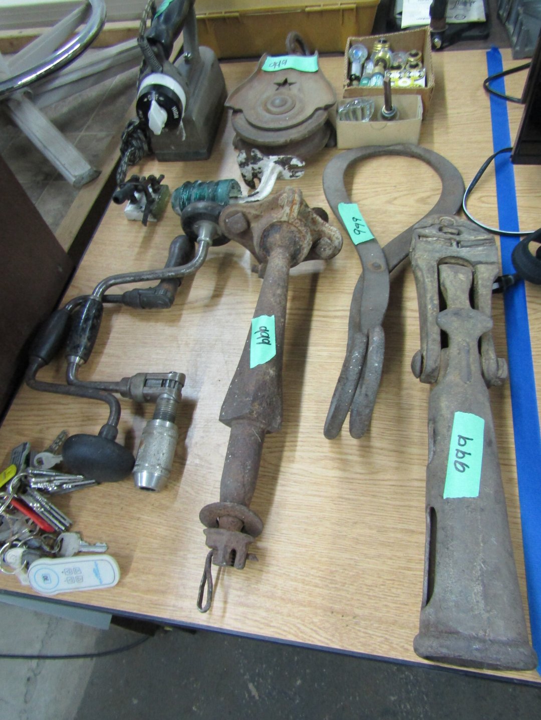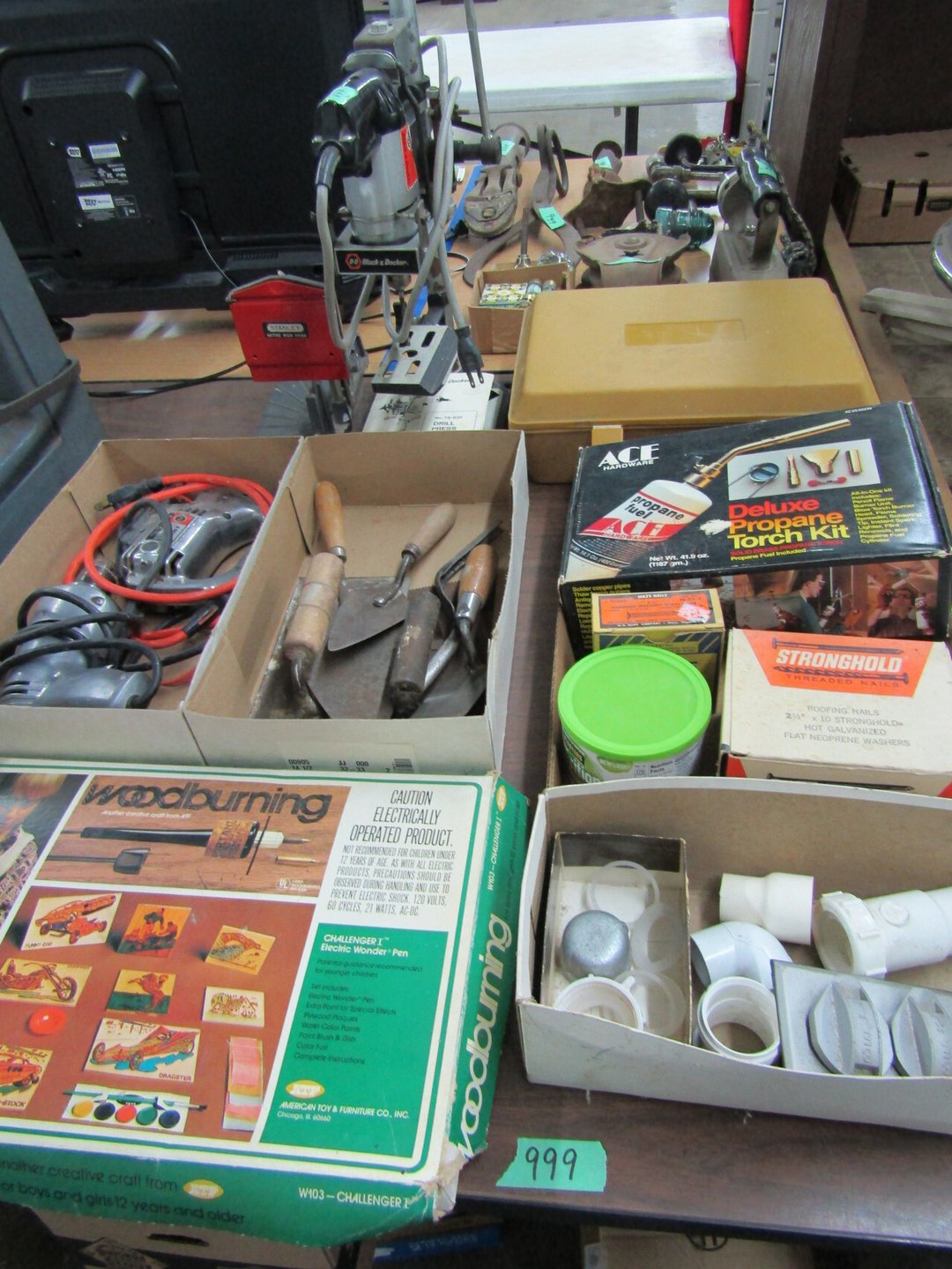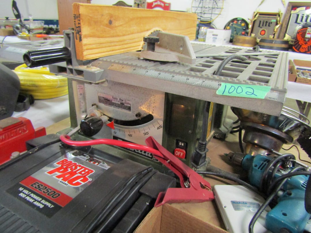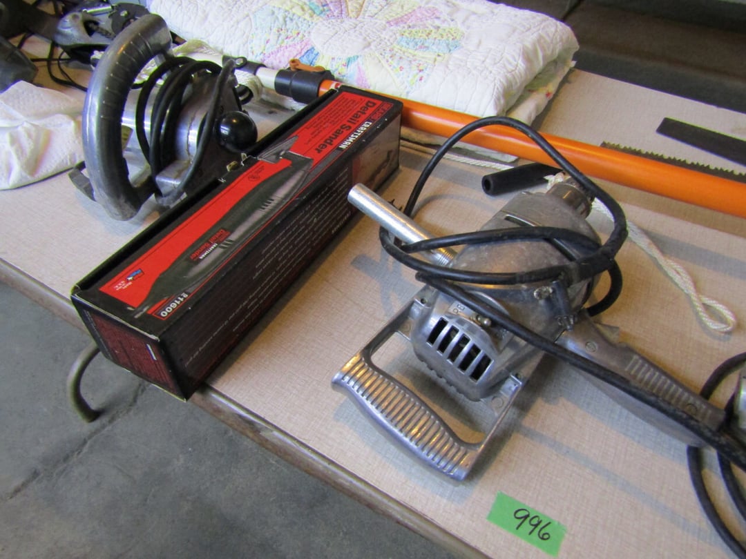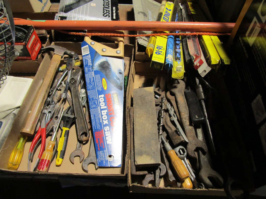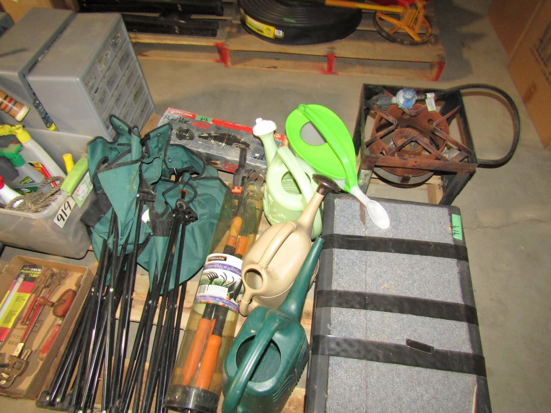 Craftsman Router - Adams Road Grader - Craftsman Watering Tractor, 4.5" Vise, Weed Eater/Trimmer - Troybilt weed eater - Craftsman Scroll Saw - (2) Craftsman top and bottom roll around tool boxes - Century Battery Charger - Engine Stand - 2 ton Folding Hydrolic engine hoist - wooden rolling cart - tap and die - misc. screw drivers - airsander - calipers - (2) Craftsman Tool Benches - small toolbox w/ misc bolts & drill bits - Porter Cable Bet Sander - Jig Saw - Cooling system pressure tester (powerbuilt) - digital welding helmet - generator - semi signal cylinder air lift - tap machine - die makers cupboard - sandblaster - mig welder (Miller) - arc welder - wire fed welder - weldmate - air hose - hydraulic press - bandsaw - parts washer - drill press & bits - lathe - metal lather w/ bits - Delta 6” Bench Jointer Performax Band Saw Performax jigsawDyna-Glo Salamander Heater Craftsman 13” Planer Hitachi C10FL Table Saw Hitachi C10FCH Compound SawPerformax Belt Disc Sander Craftsman 10” Radial Arm SawDelta 8” Bench Grinder Charge 12 Gal Air Compressor Vise Grips, Pliers, Pipe Wrench, Hammers,Crow Bars, chisels, Hex Key Set,Makita Rip SawDewalt Jig SawBostich Finish Nailer Milwaukee SawzallMakita Angle DrillTorch setHobart Handler 140 Wire Feed Welder Shop Cart Shop Vac CreeperCraftsman Router w/ TableShop LightsDrywall Square, Straight Edges, Yard Tools Shovels, Axe, Rakes, Hay Forks, Brooms, Pitch Forks, Sledge Hammers, Cutters, Tree Trimmers,Fence Post 28’ Werner Extension Ladder20’ Werner Extension LadderStepladderHuskee 27 Ton Log SplitterAgri-Fab Leaf Vac w ChipperJohn Deere 214 Tractor Gas Cans Weed Sprayers 25 Gallon Fuel Tank w/ Hand PumpSaw Horse Chains Miter Box & Saw2 Ton Floor Jack HitchesBattery ChargersParts OrganizerExtension CordsLevels, Hand Saws, Bolt Cutters, Measuring Taps, Clamps, Tin Snips,Router Bits40 PCS Top Man Tap Die SetNuts Bolts Nails26' van box - battery charger (diehard) - oxygen tank with hoses - acetylene tank with hoses - (2) co2 tanks - Misc. Tools - 3/4 drive ratchet and sockets - wrench sets - (14) Metal Shelves - Hose Reels - Misc. Hand & Electric Tools - Yard/Garden Tools - Shop Vac - 5,6,7 Foot Step Ladders - 8' Rolling Work Bench - 26' Van Body - Golf Clubs - 1986 Honda CH80 3,166 miles - 2005 Honda NSS250 1070 miles - ETC.