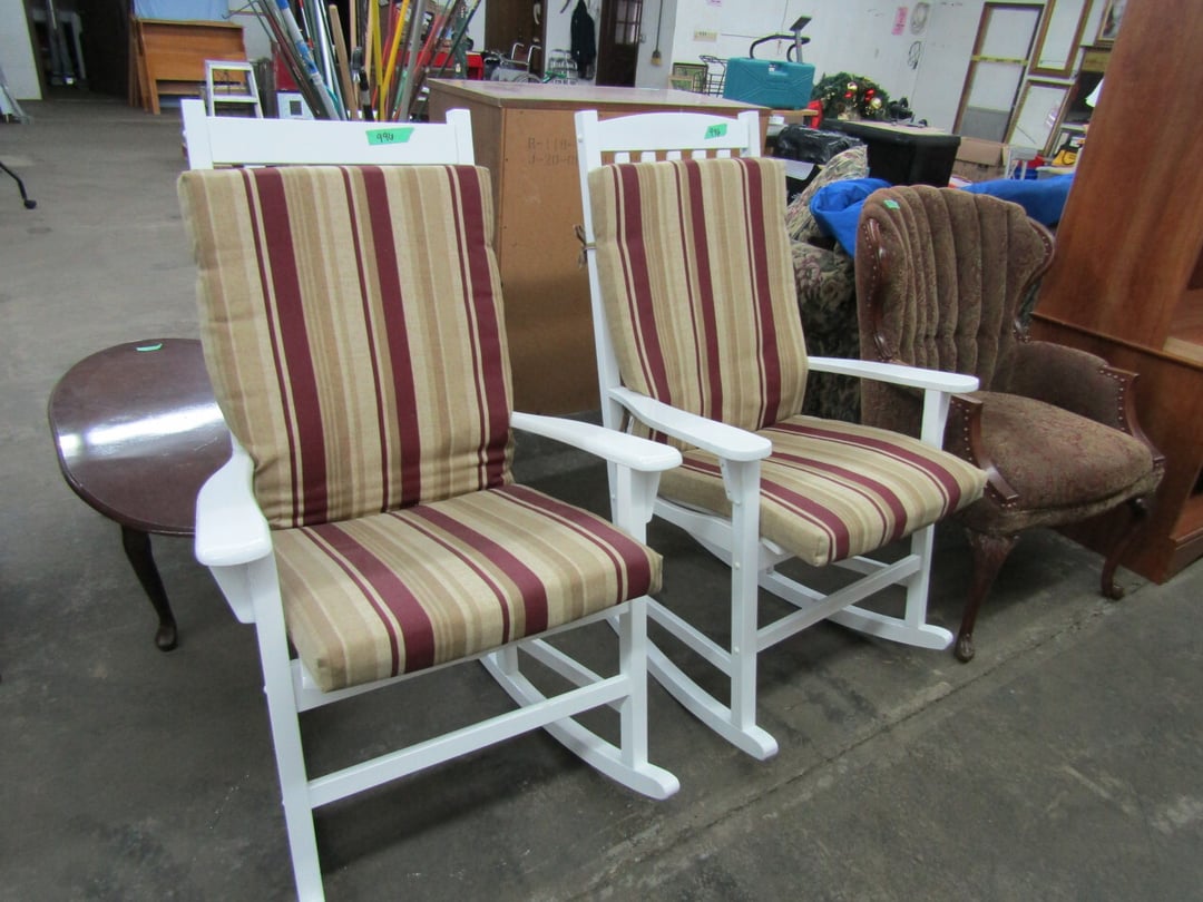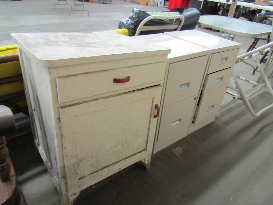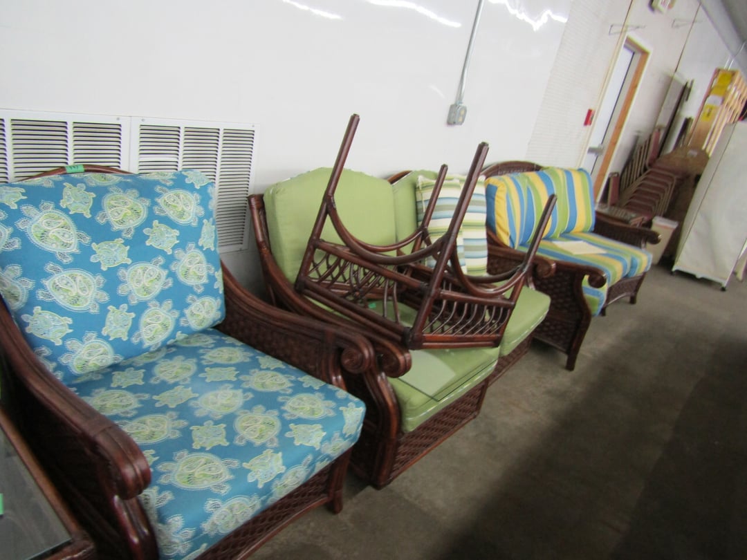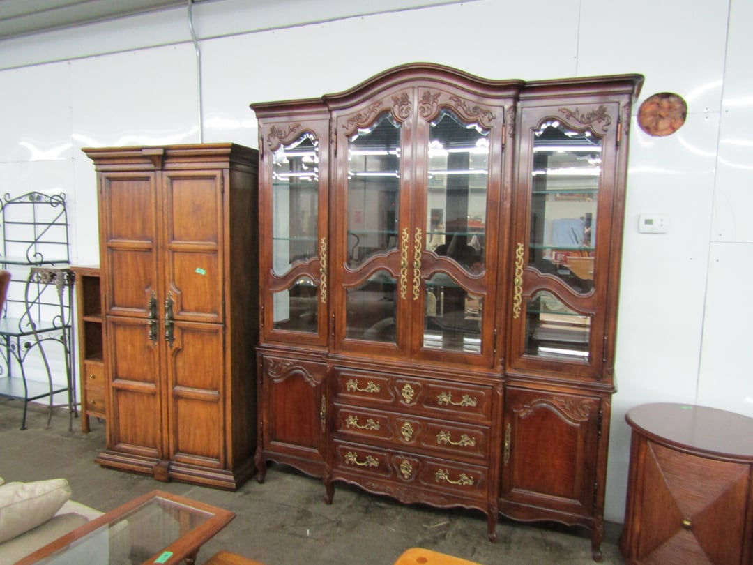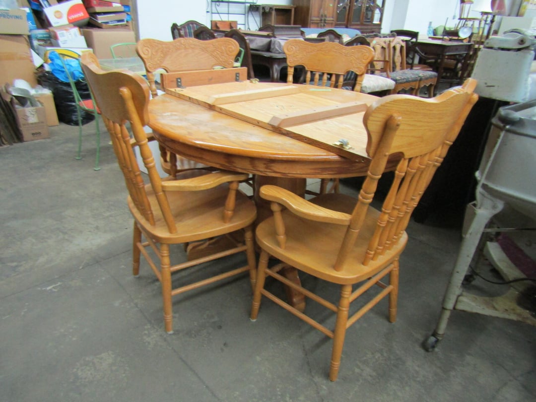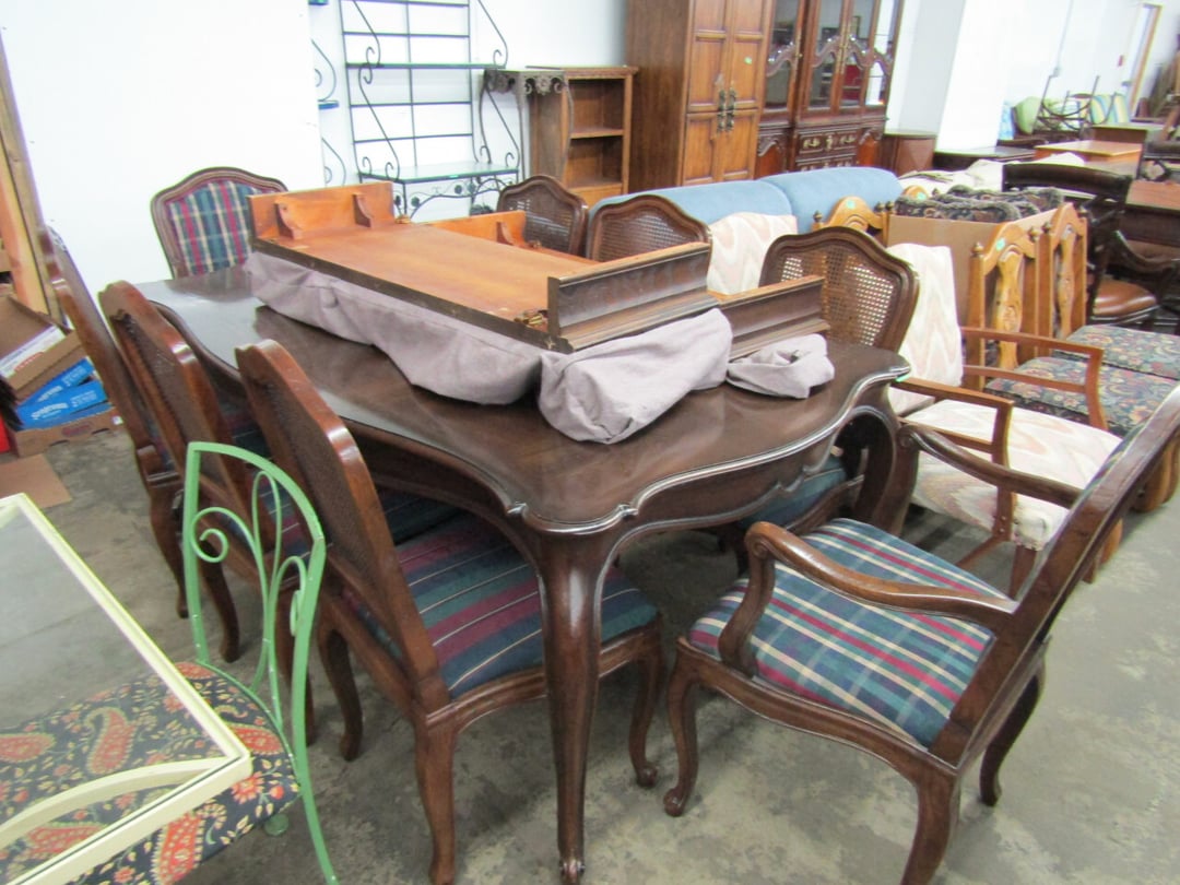 •King Bed - China Cabinet - Oak Bookshelf - (4) Dining Room Tables w/ 4 Chairs - Dining Room Tables w/ 8 Chairs - (2) Patio Tables w/ 4 Chairs - Sofa Curio Cabinet - Chairse Lounge - Swivel Rocker Patio Chair - Inside Patio Furniture - Porch Rockers - Wood Patio Set - Patio Umbrella - 2 & 4 Drawer File Cabinets - Heavy Wood Rocker - Barrel Back Chairs - Quilt Rack - Quilts - Bakers Rack - Drying Rack - Crocks - Granite Pans - Rotisserie - Snow Cone Maker - Ice Cream Maker - Candy Bin - End Tables - Coffee Tables - Roll Top Desk - Knee Hole Desk - Sofas - Love Seat - Armoire - (2) Fern Stands - Chest of Drawers - Dresser w/ Glove Boxes & Hart Mirror - Card Table w/ 4 Chairs - C.I. Bench - Drum Table - Lift Chair - 6' Handicap Ramp w/ Rails - Handicap Rolling Seat