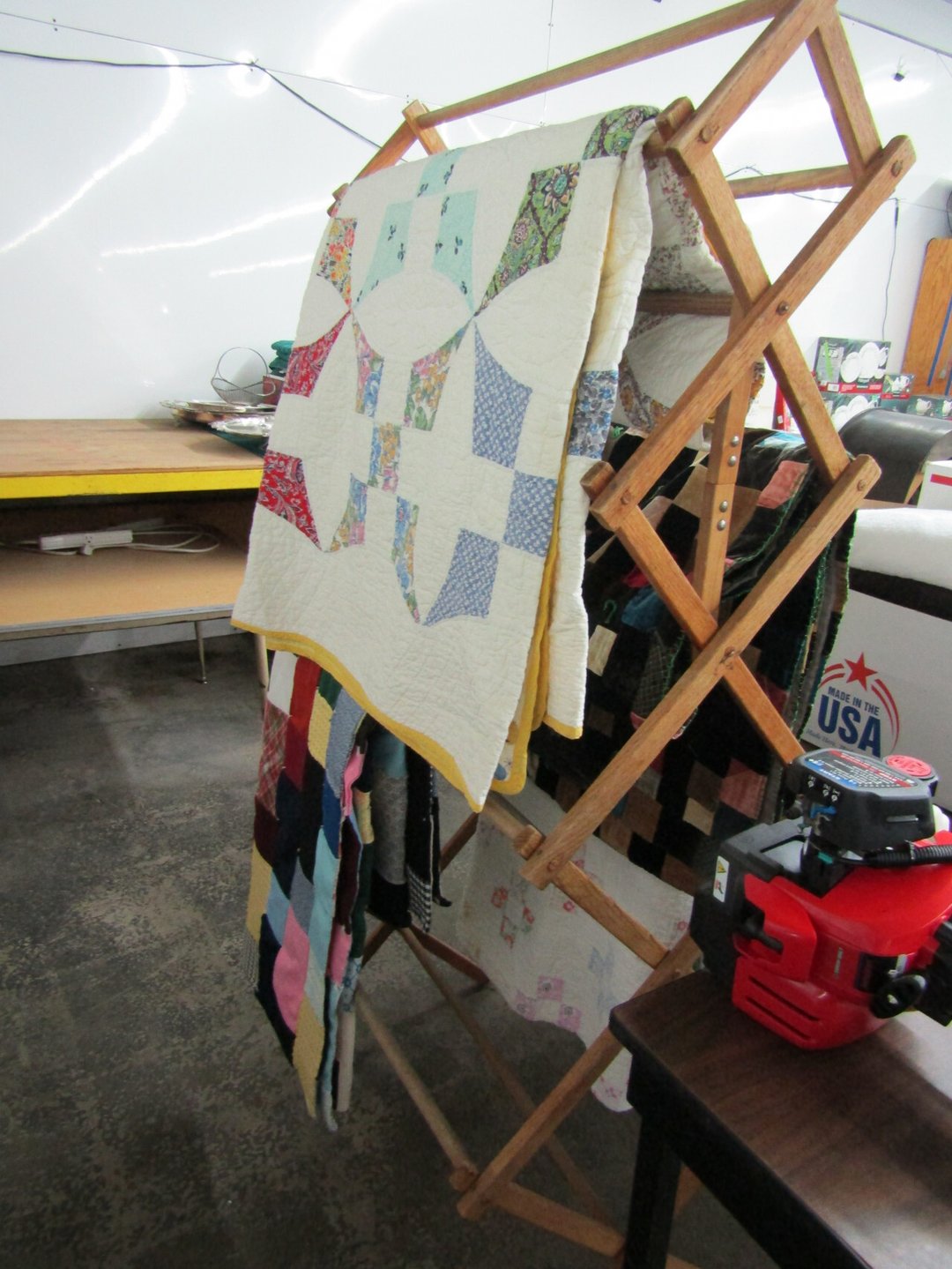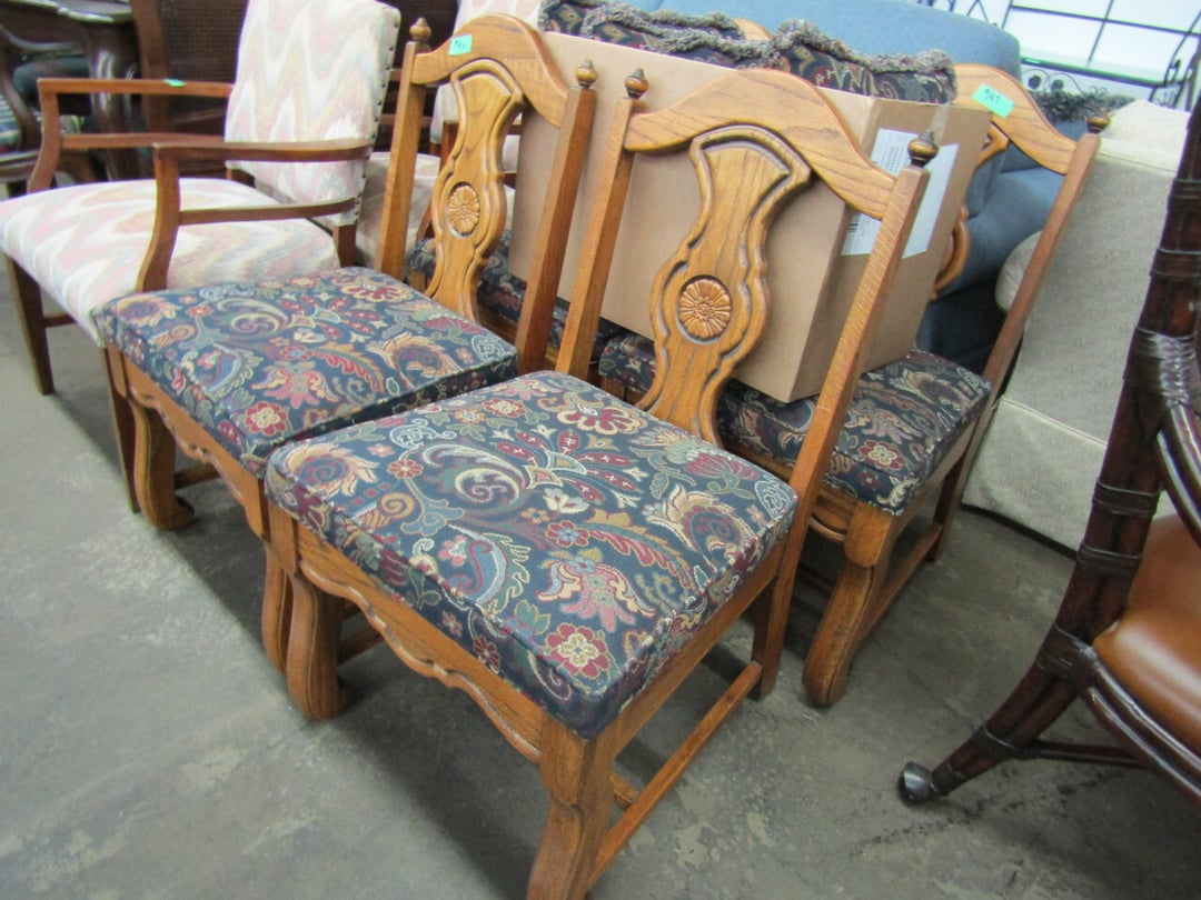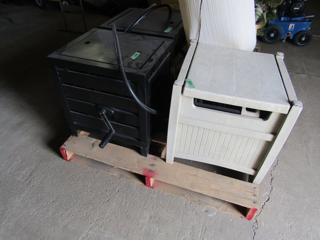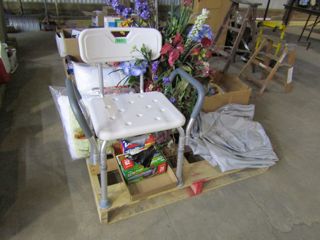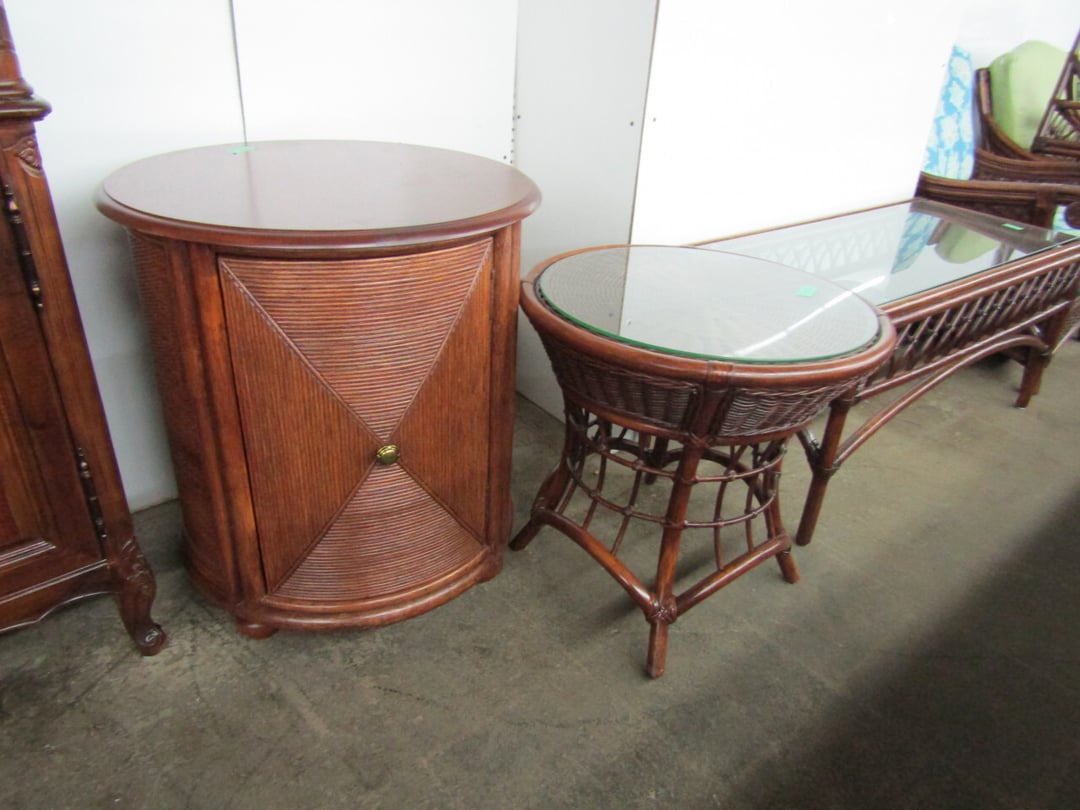 •King Bed - China Cabinet - Oak Bookshelf - (4) Dining Room Tables w/ 4 Chairs - Dining Room Tables w/ 8 Chairs - (2) Patio Tables w/ 4 Chairs - Sofa Curio Cabinet - Chairse Lounge - Swivel Rocker Patio Chair - Inside Patio Furniture - Porch Rockers - Wood Patio Set - Patio Umbrella - 2 & 4 Drawer File Cabinets - Heavy Wood Rocker - Barrel Back Chairs - Quilt Rack - Quilts - Bakers Rack - Drying Rack - Crocks - Granite Pans - Rotisserie - Snow Cone Maker - Ice Cream Maker - Candy Bin - End Tables - Coffee Tables - Roll Top Desk - Knee Hole Desk - Sofas - Love Seat - Armoire - (2) Fern Stands - Chest of Drawers - Dresser w/ Glove Boxes & Hart Mirror - Card Table w/ 4 Chairs - C.I. Bench - Drum Table - Lift Chair - 6' Handicap Ramp w/ Rails - Handicap Rolling Seat