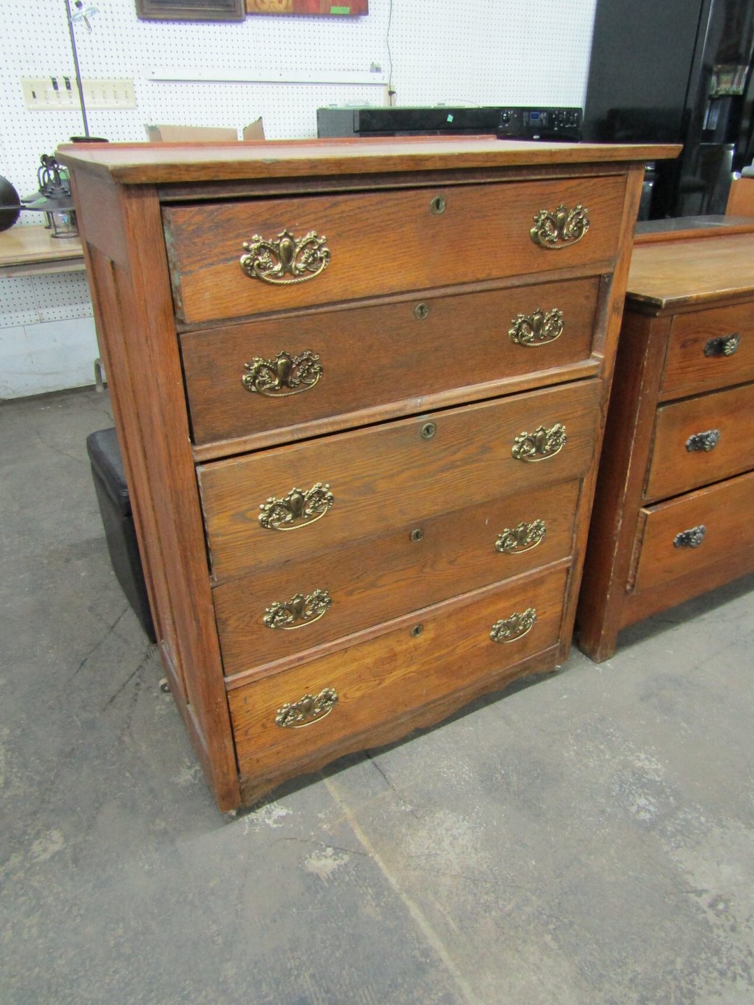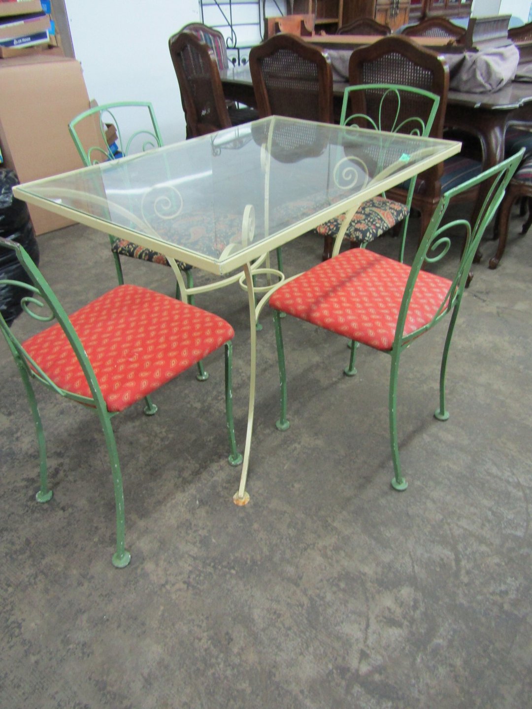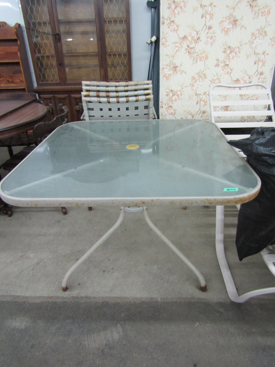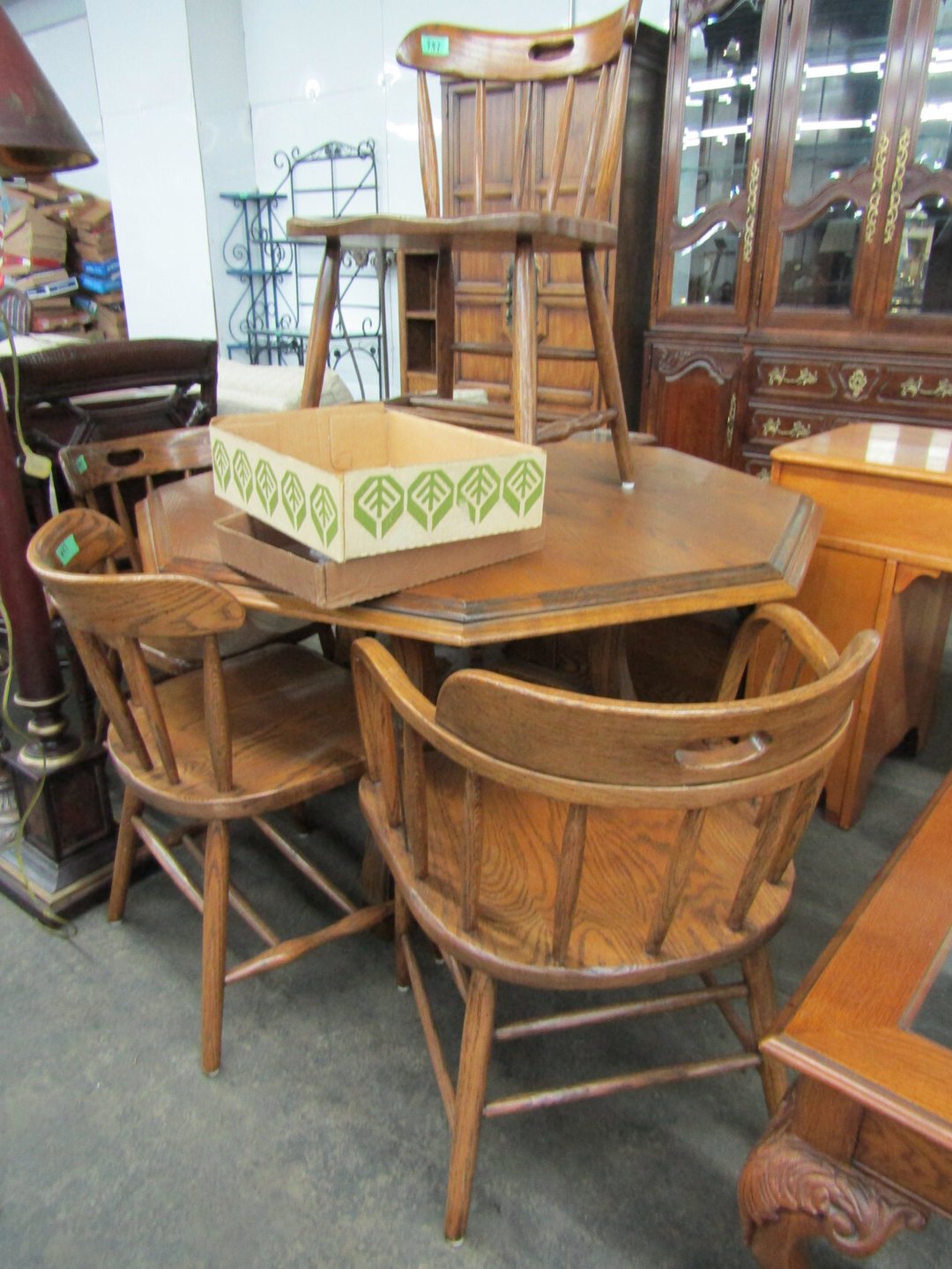 •King Bed - China Cabinet - Oak Bookshelf - (4) Dining Room Tables w/ 4 Chairs - Dining Room Tables w/ 8 Chairs - (2) Patio Tables w/ 4 Chairs - Sofa Curio Cabinet - Chairse Lounge - Swivel Rocker Patio Chair - Inside Patio Furniture - Porch Rockers - Wood Patio Set - Patio Umbrella - 2 & 4 Drawer File Cabinets - Heavy Wood Rocker - Barrel Back Chairs - Quilt Rack - Quilts - Bakers Rack - Drying Rack - Crocks - Granite Pans - Rotisserie - Snow Cone Maker - Ice Cream Maker - Candy Bin - End Tables - Coffee Tables - Roll Top Desk - Knee Hole Desk - Sofas - Love Seat - Armoire - (2) Fern Stands - Chest of Drawers - Dresser w/ Glove Boxes & Hart Mirror - Card Table w/ 4 Chairs - C.I. Bench - Drum Table - Lift Chair - 6' Handicap Ramp w/ Rails - Handicap Rolling Seat