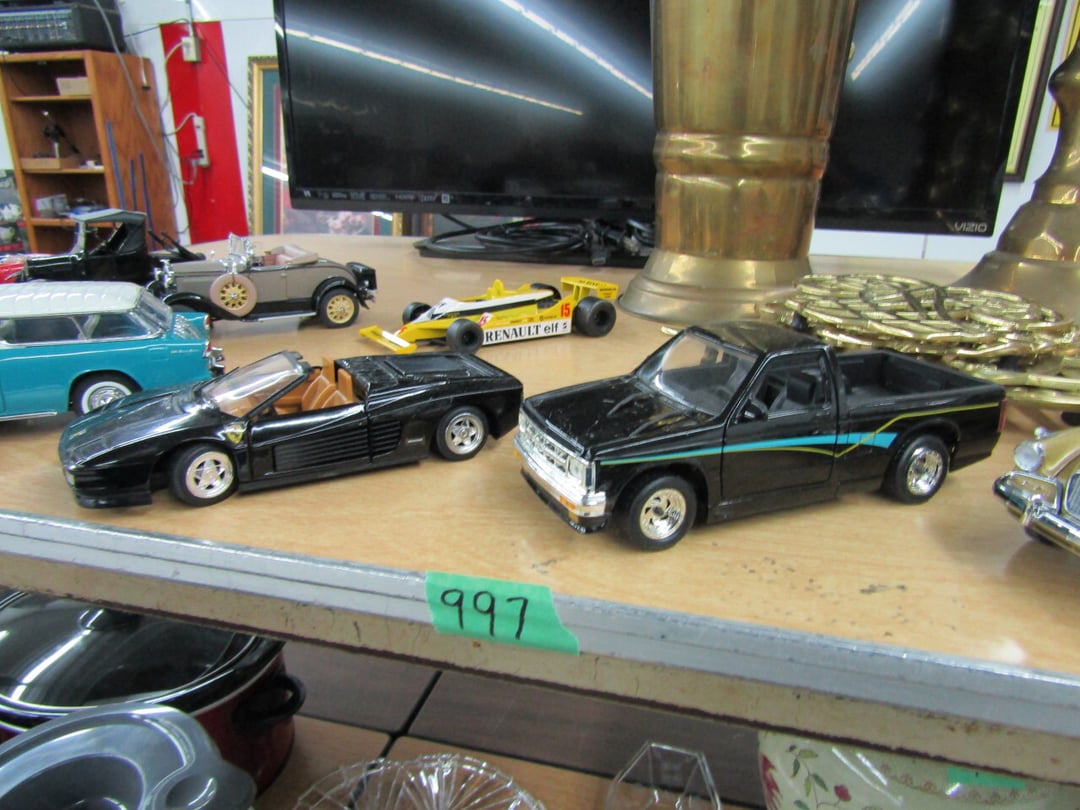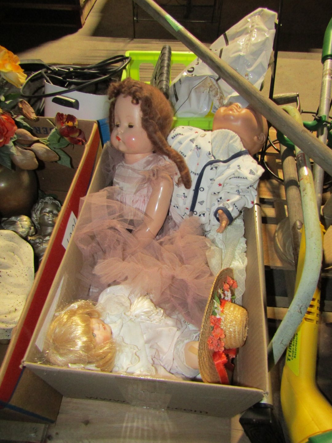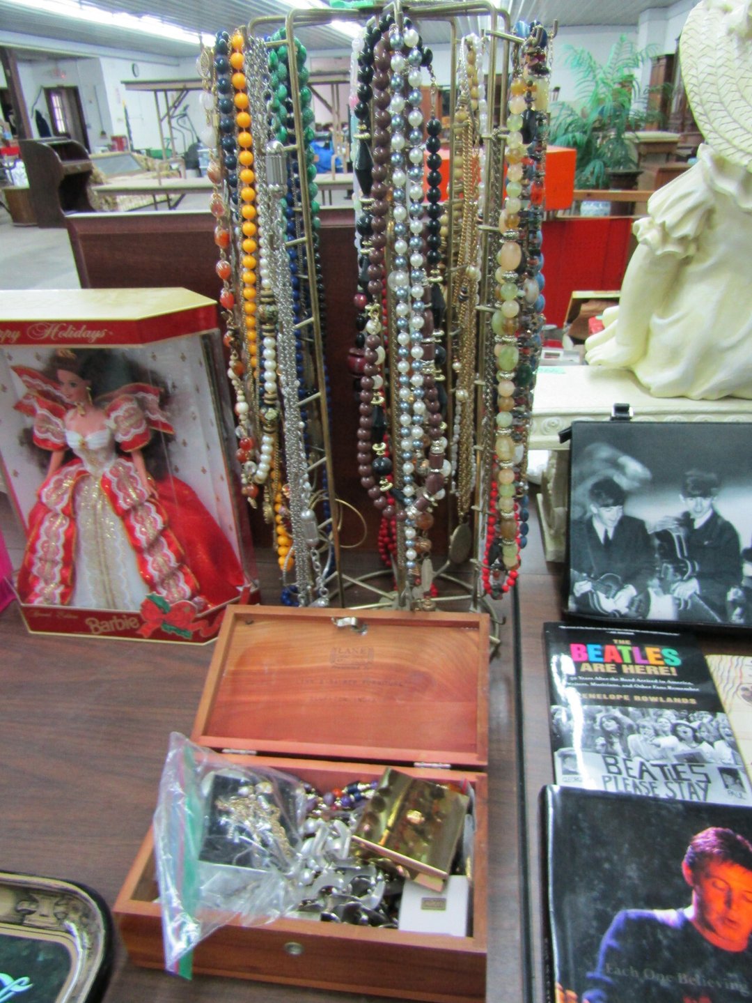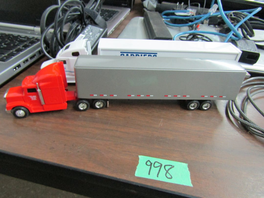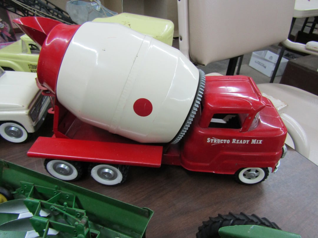 •Crane & Dump Truck - Tootsie Toys - Tom Brokaw Books - Wind Up Animals - Bagetelle & Baseball Game - (2) Barbie Dolls (Dream Wedding & Happy Holidays) - Coke Trays - baseball cards