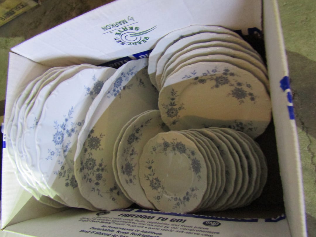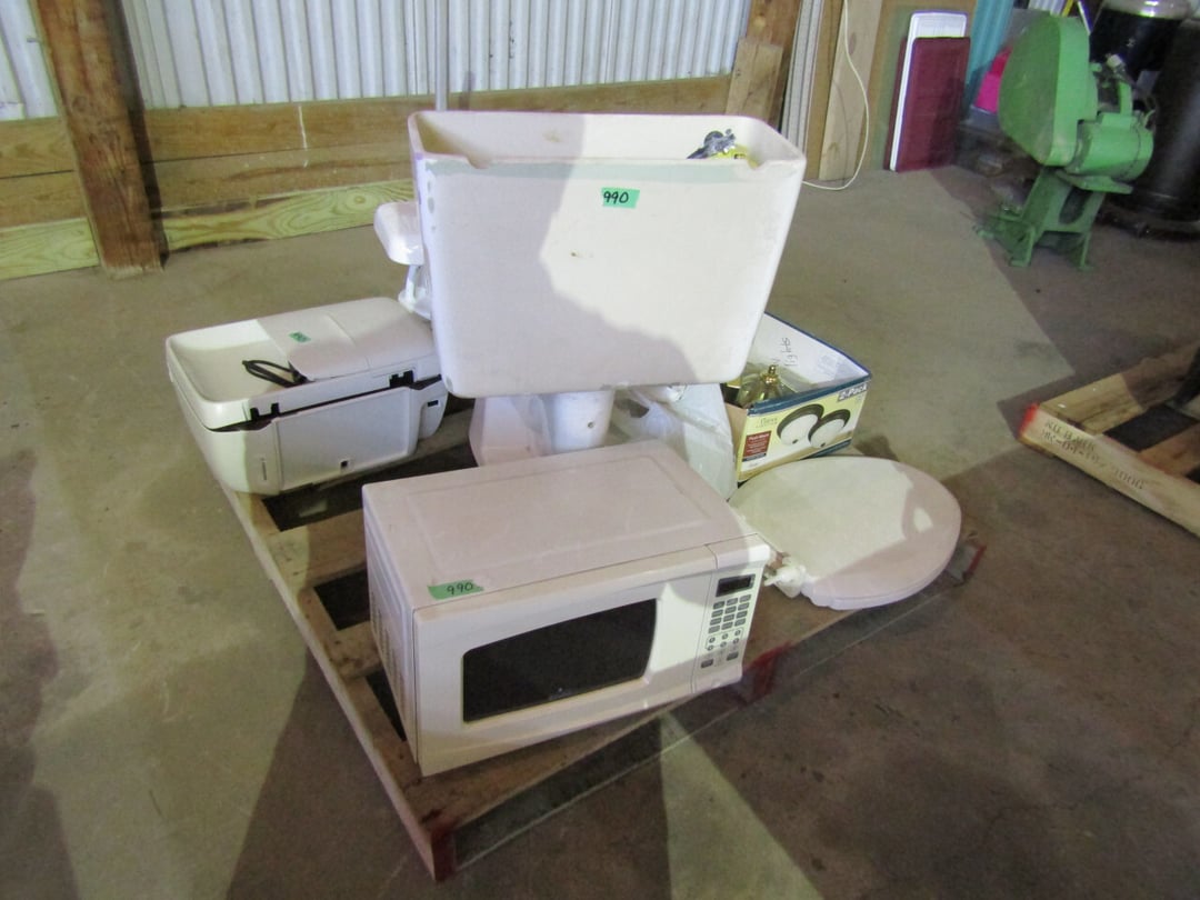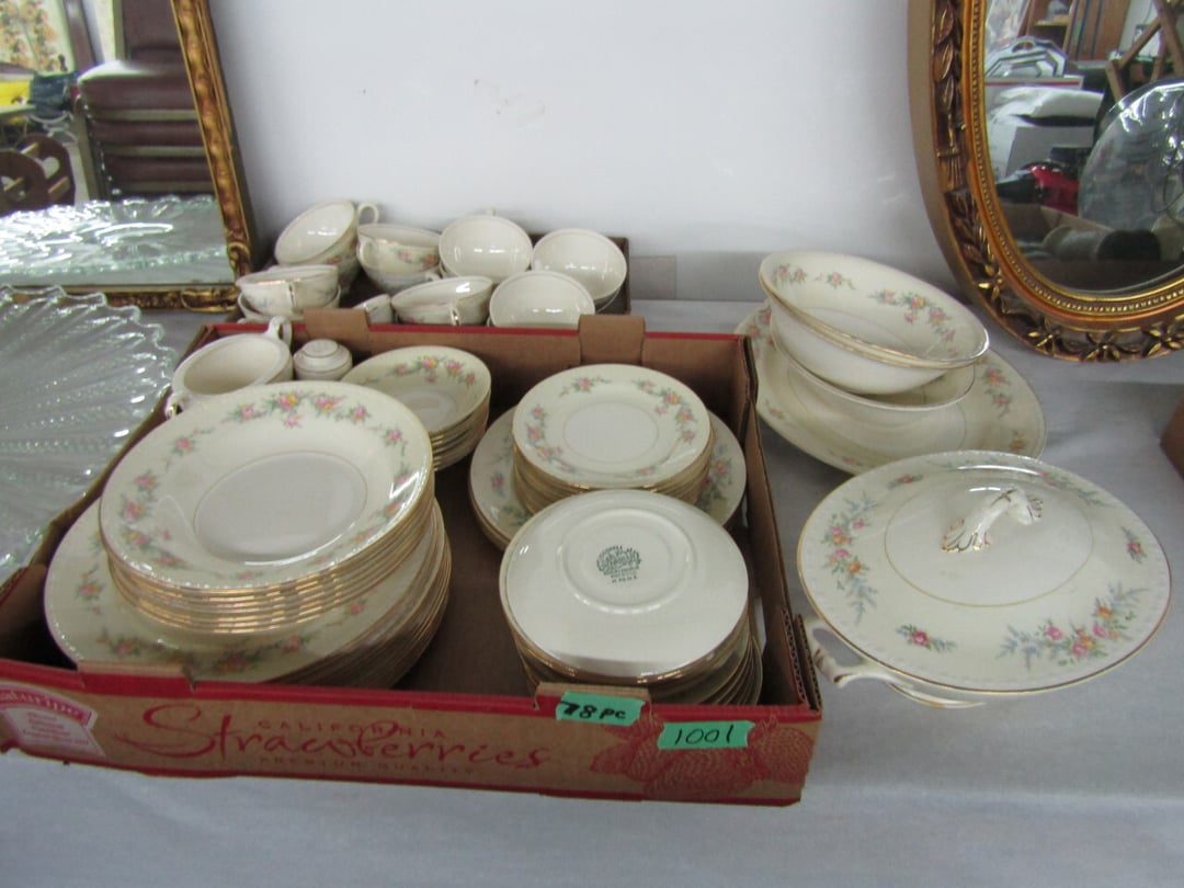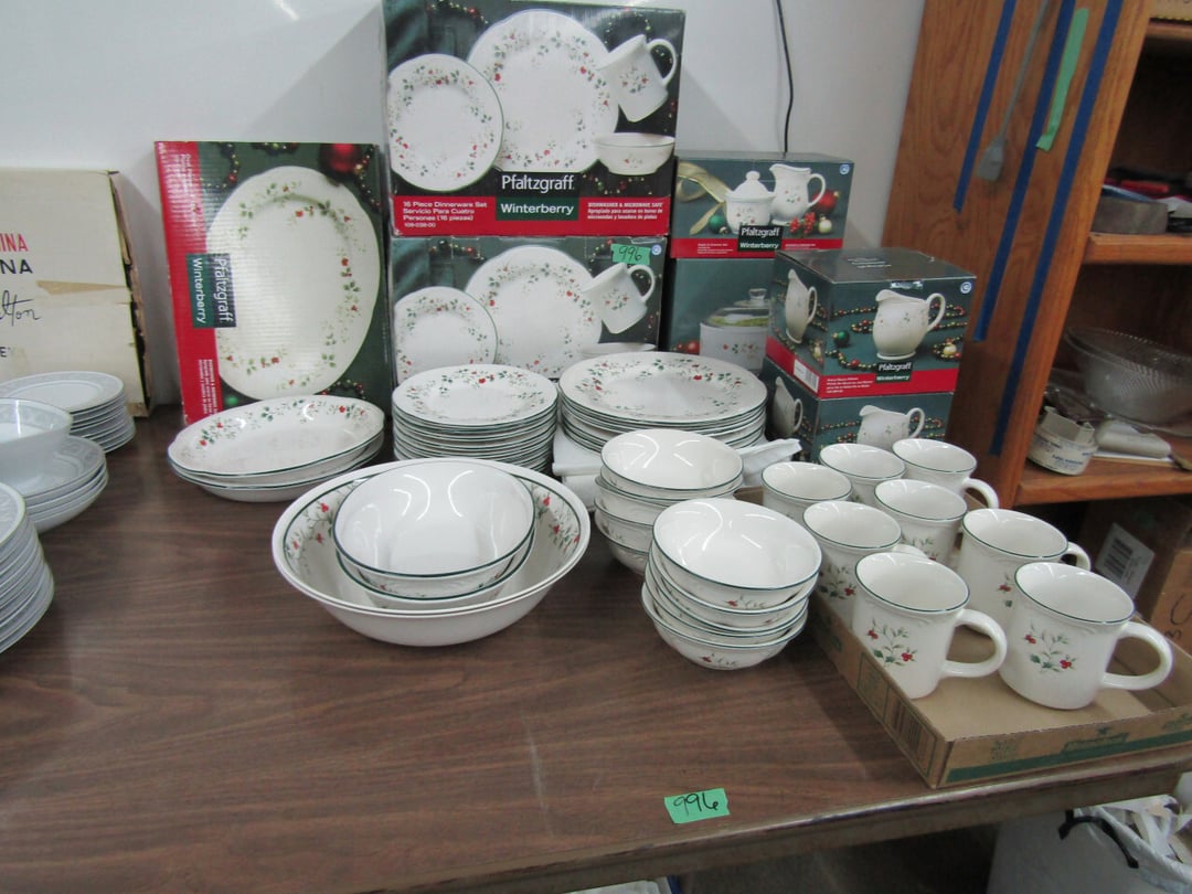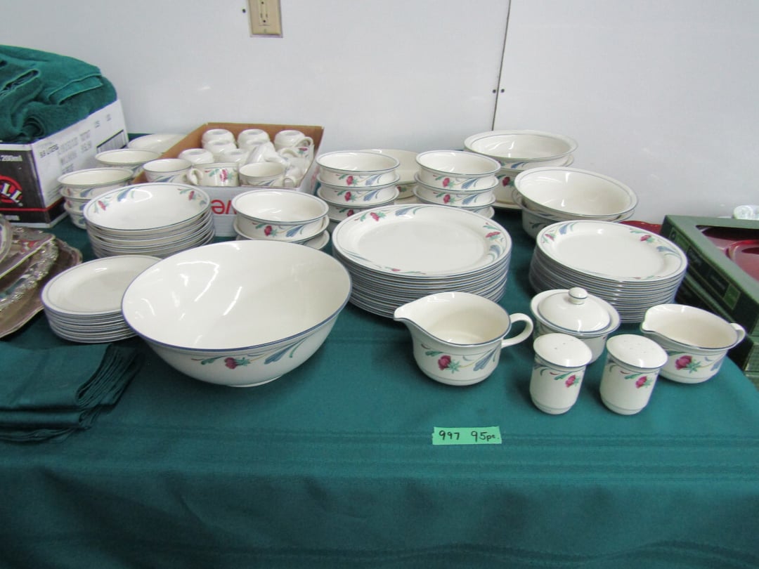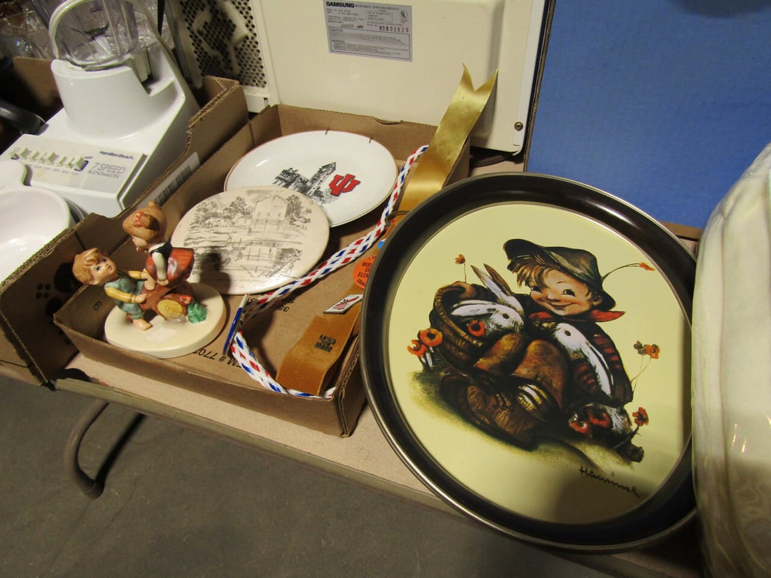 •and bench - Credenza - Fur Coat (Pappas - FW) - Ms America Divided Plate - Silver & Silver Plate - Flatware - Steins - 78 pc Homer Laughlin China (Georgian) - 95 pc Lenox China (Poppies on Blue) - Service for 6 Noritake China (Savannah) - Service for 10 Imperial China (Whitney) - Pfaltzgraff Winterberry Service for 8 - Crystal Pieces - Misc. dishes - (2) GE Fans - New 0.7 CF Microwave - Haier Fridge (9.8 Cu. Ft) - Maytag Sq Tub Ringer/Washer - Used Dishwasher - (2) Eureka Sweeper - Simplicity Sweeper - Laptops - Ceramic Christmas Tree - Indian Stones - Bluffton HS Yearbooks - Danbury Mint Classic Cars - Structo Cement Mixer